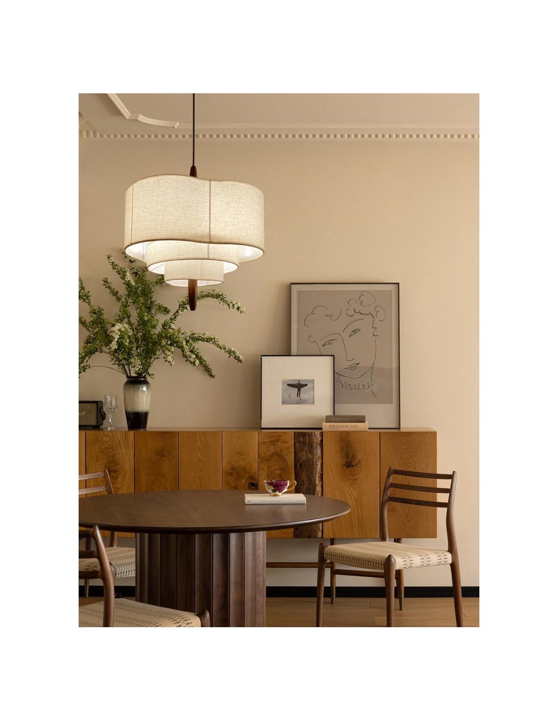 This pendant lamp injects a vintage feel into any room. The lustrous fabric material exudes a luxurious feel, while the design of the lamp ensures ample lighting without dominating the area. Both elegant and functional, this stunning chandelier will make a great addition to your home.