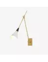 This vintage metal adjustable swing arm wall lamp has two articulated joints and a swivel mechanism. Its unique angled shade design allows for flexible customization. Elevate your home decor with this timeless and adjustable wall lamp.