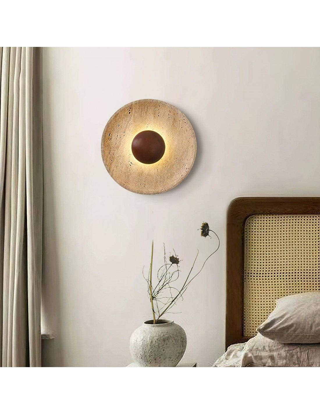 This lamp features precious yellow travertine and high-quality solid wood in a simple, modern design. The travertine’s unique light transmittance emits a warm, enhancing interior warmth and comfort. The natural wood texture and travertine luster complement each other, creating harmony. More than just a light, it’s a decorative piece that boosts the room’s artistic vibe, fitting both modern and traditional homes.