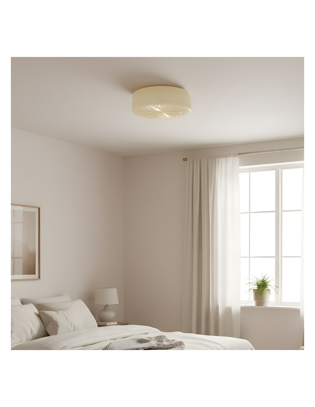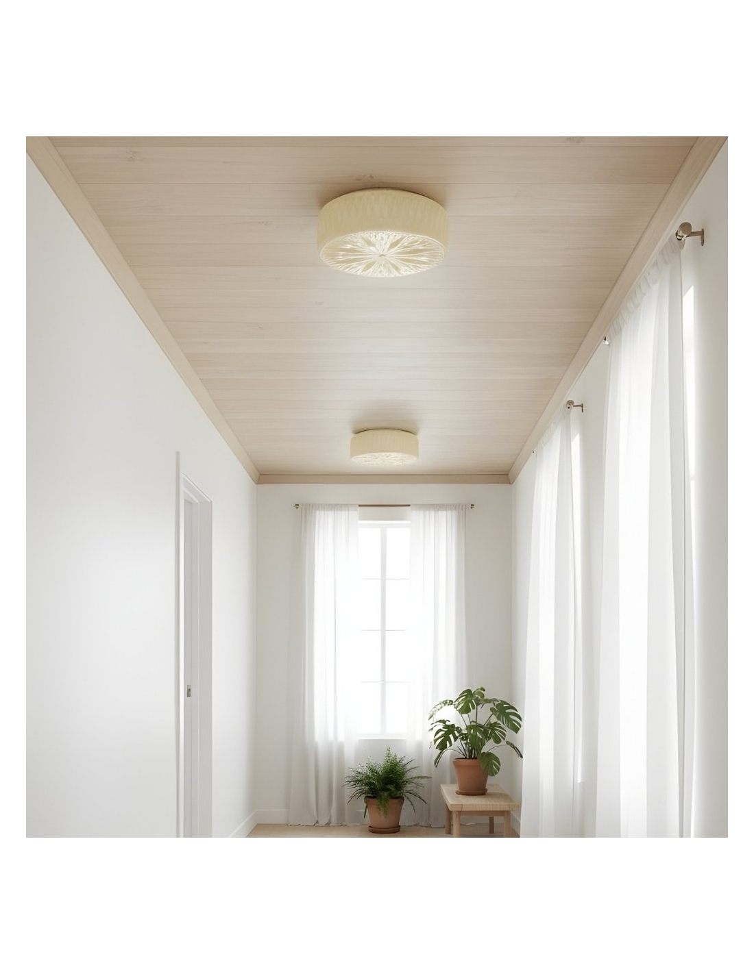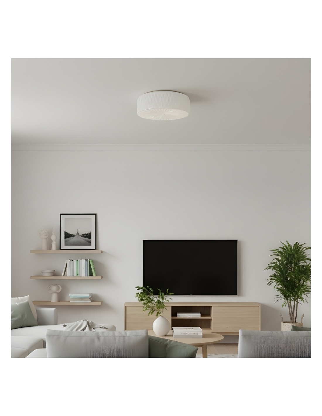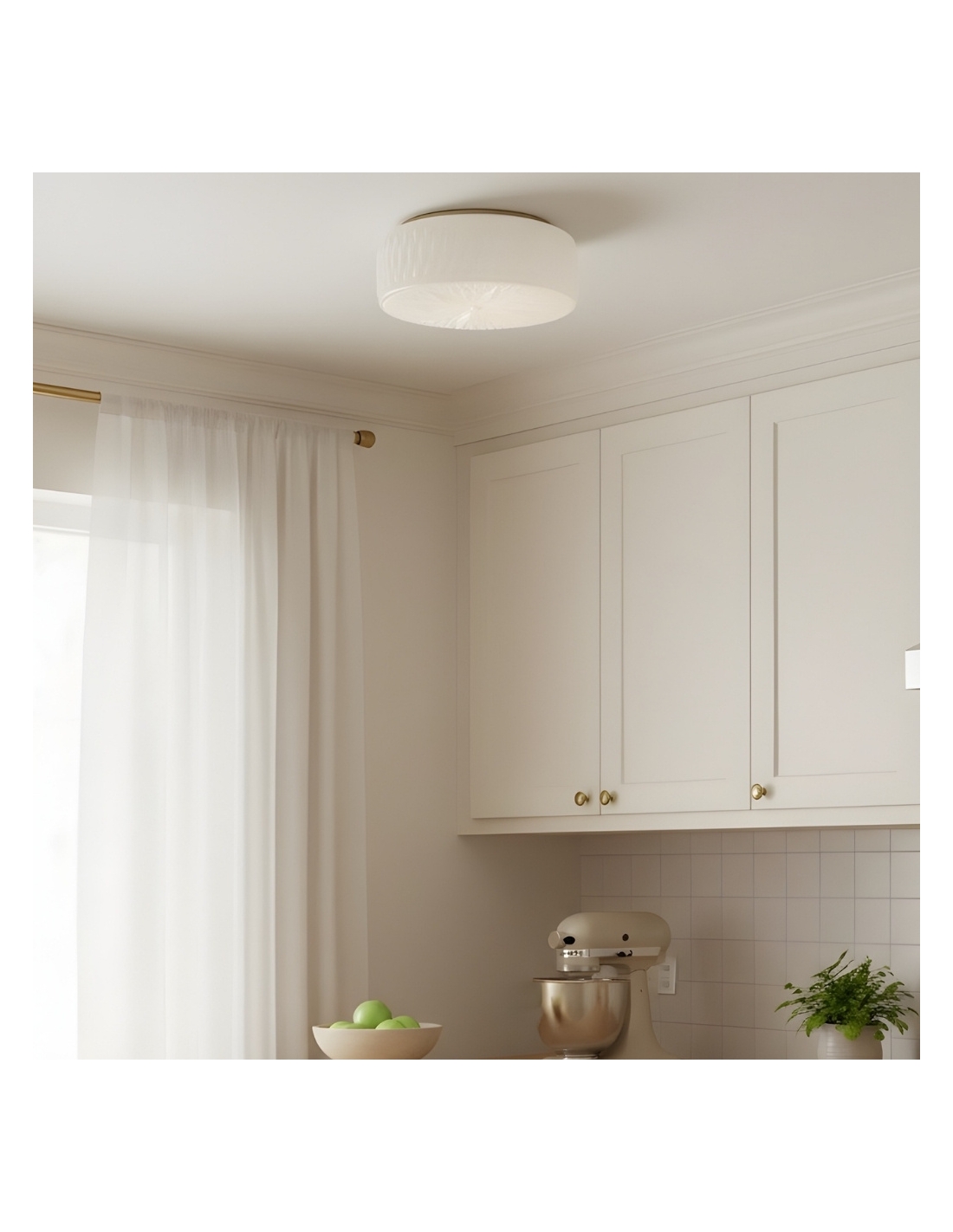 This ceiling light featuring a refined glass shade and clean metal detailing. Its layered construction creates soft, balanced illumination while enhancing living rooms, bedrooms, hallways and kitchens with a modern, architectural presence.