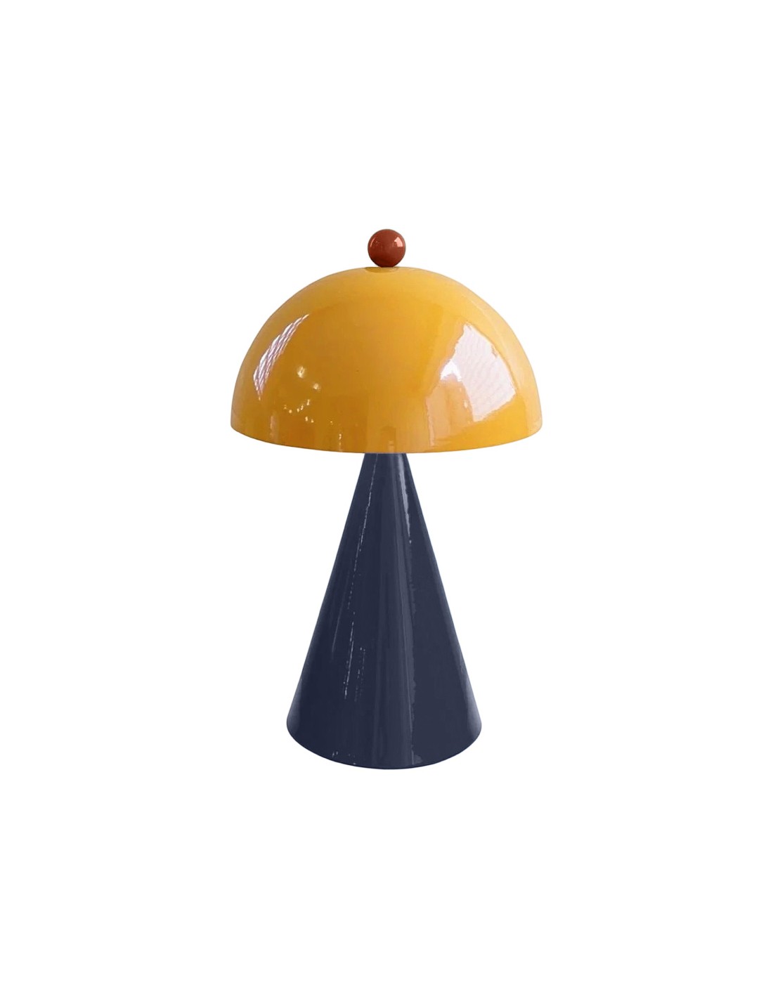 A contemporary desk lamp designed with a colorful glass body in vivid hues. This piece adds a pop of color to workspaces or bedrooms while providing focused, eye-friendly illumination. The glass craftsmanship ensures durability and a unique texture. Compact size with a stable base. Perfect for mid-century or Scandinavian interiors seeking a functional art piece.