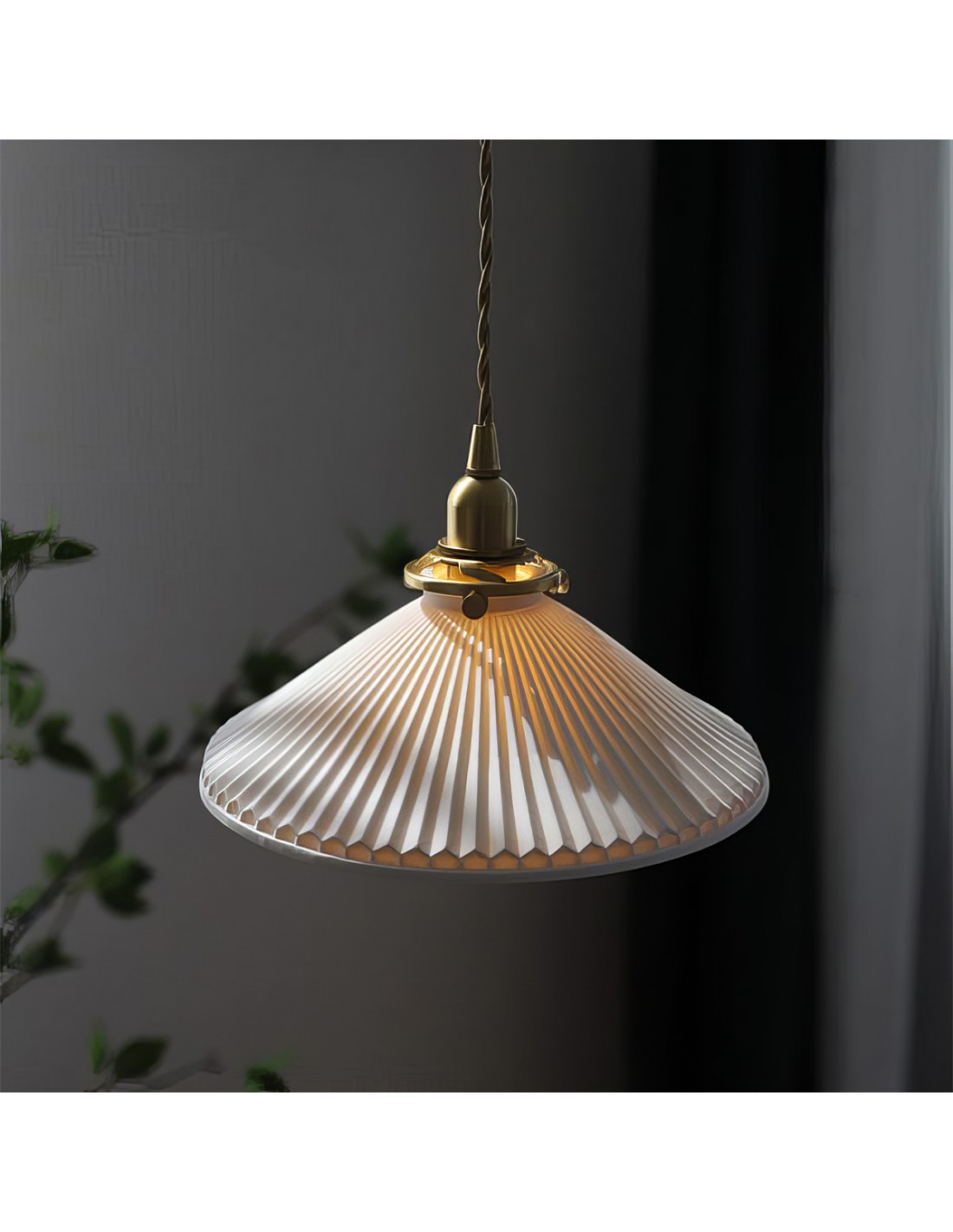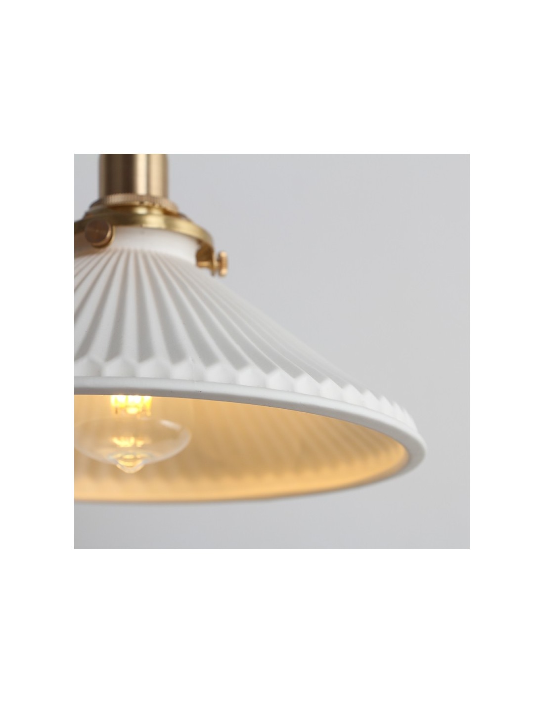 Full of fresh feeling and purity, Modern pleated light has a clean tonal palette. Made of white ceramics lampshade with corrugated texture and copper metal base. Available in two models, pendant lamp and wall lamp.