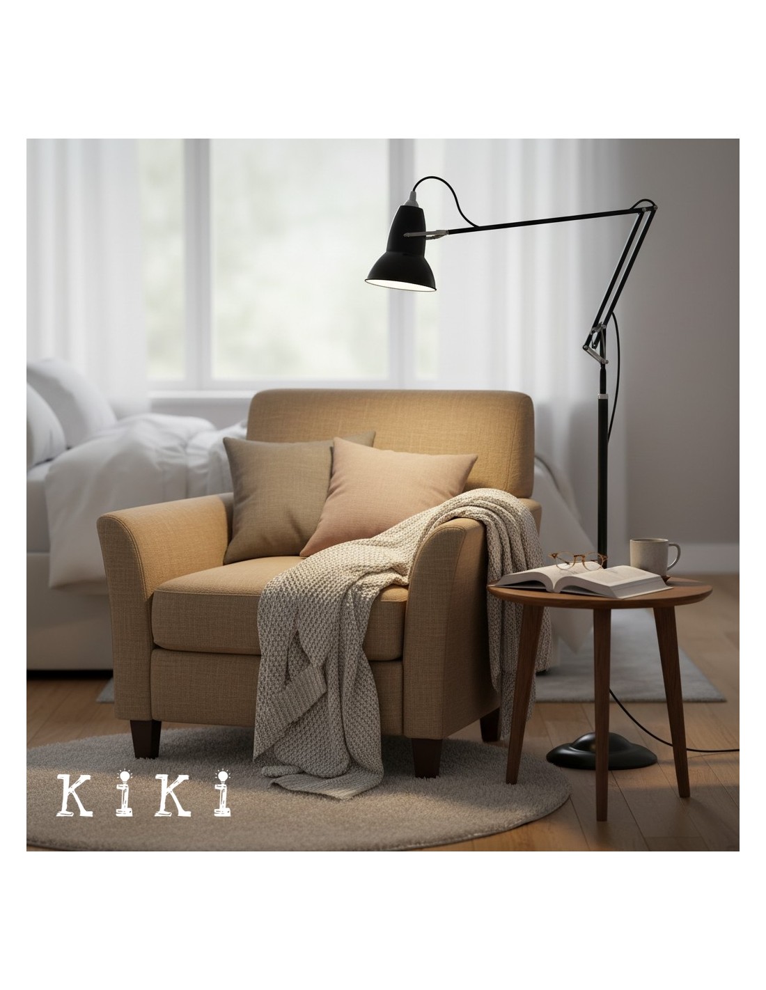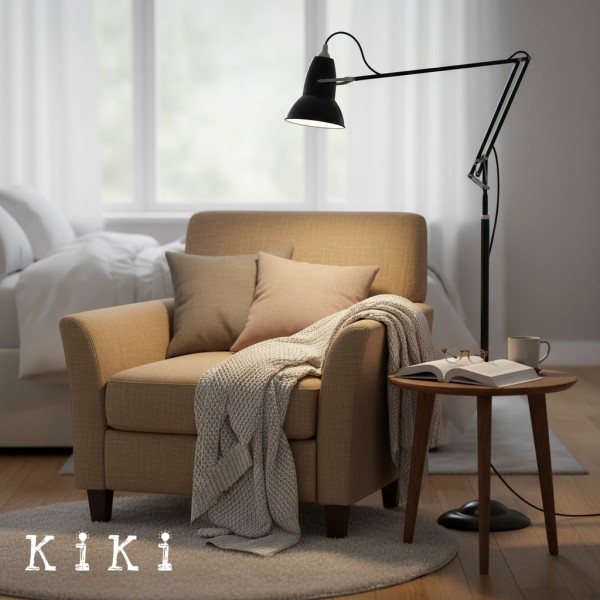 This classic adjustable floor lamp features refined lines and a balanced silhouette designed to enhance modern and timeless interiors. Its slim profile and structured form create a clean visual presence, making it a sophisticated lighting element without overwhelming the space.