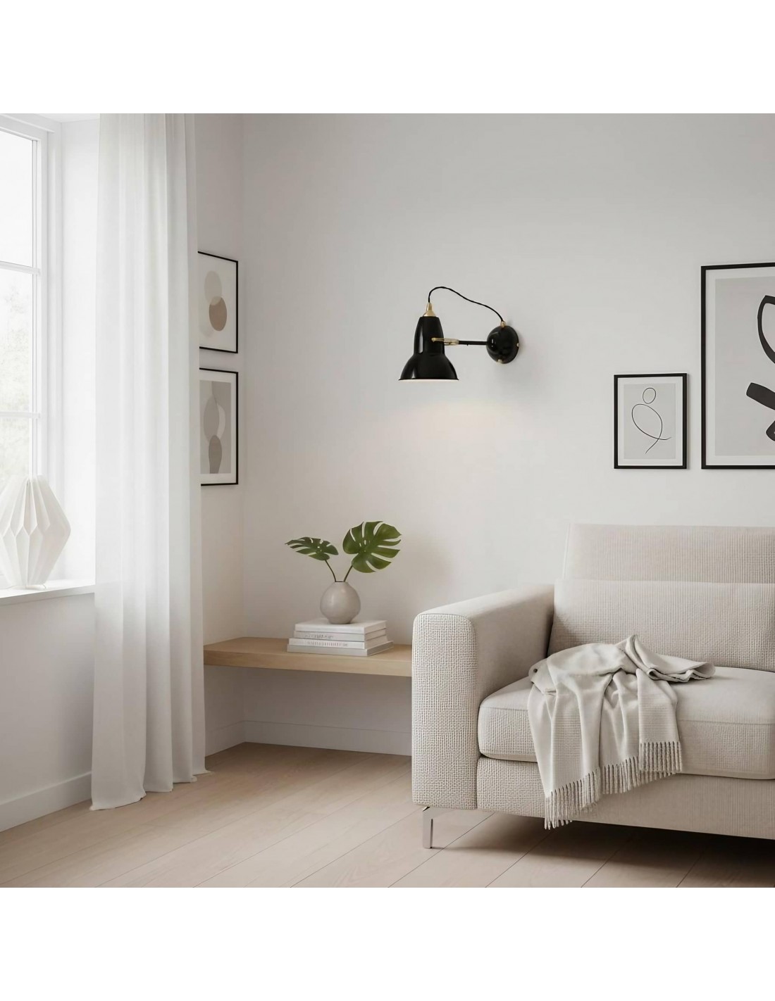 A retro-inspired adjustable wall light with a curved shade and exposed swivel arm that blends vintage character with modern simplicity. Metal construction and clean lines create focused, directional light—perfect for bedside reading, hallways, cafés, offices and hotel rooms. Available in multiple finishes.