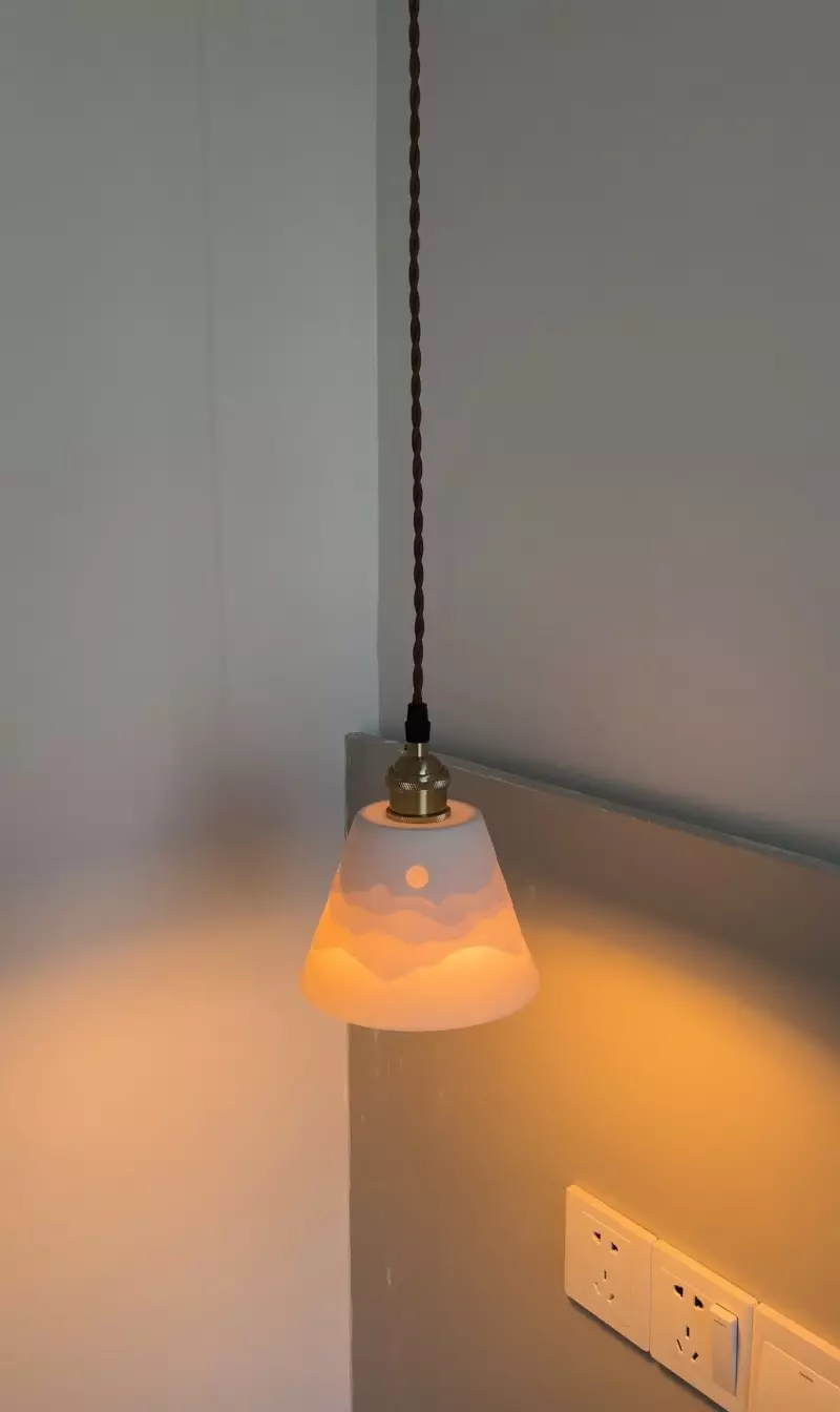 Mountain Shadow Pendant Lamp/Wall Lamp is hand-fired from ceramics. The delicate lines and lampshade patterns are very special, and the classic Japanese patterns can give you a warm living environment. This product has two versions of chandelier and wall lamp for you to choose from. The overall shape of the lampshade is like a mountain range and the sun just after sunrise.