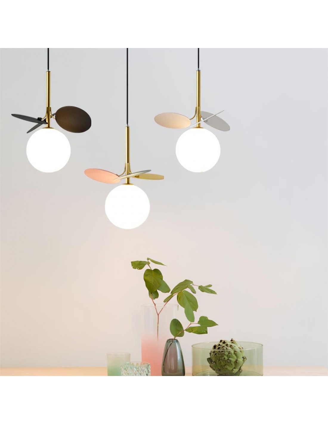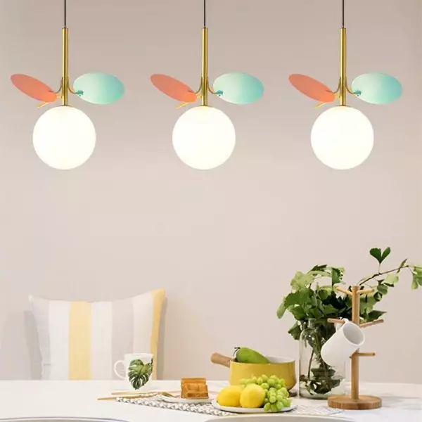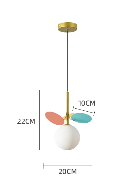 Multi Colored Leaf Glass Globe Pendant Light is a stunning piece, embrace the essence of Nordic modern style. Crafted with meticulous attention to detail, multi colored glass pendant light features a high-quality white glass globe resembling a magical bean. Glass globe pendant light adorned with colorful metal leaves that shimmer like cherries in the sun. Leaf magic bean pendant light perfect for a modern living space or a stylish dining area, its colorful design adds a playful touch while maintaining a sophisticated elegance.