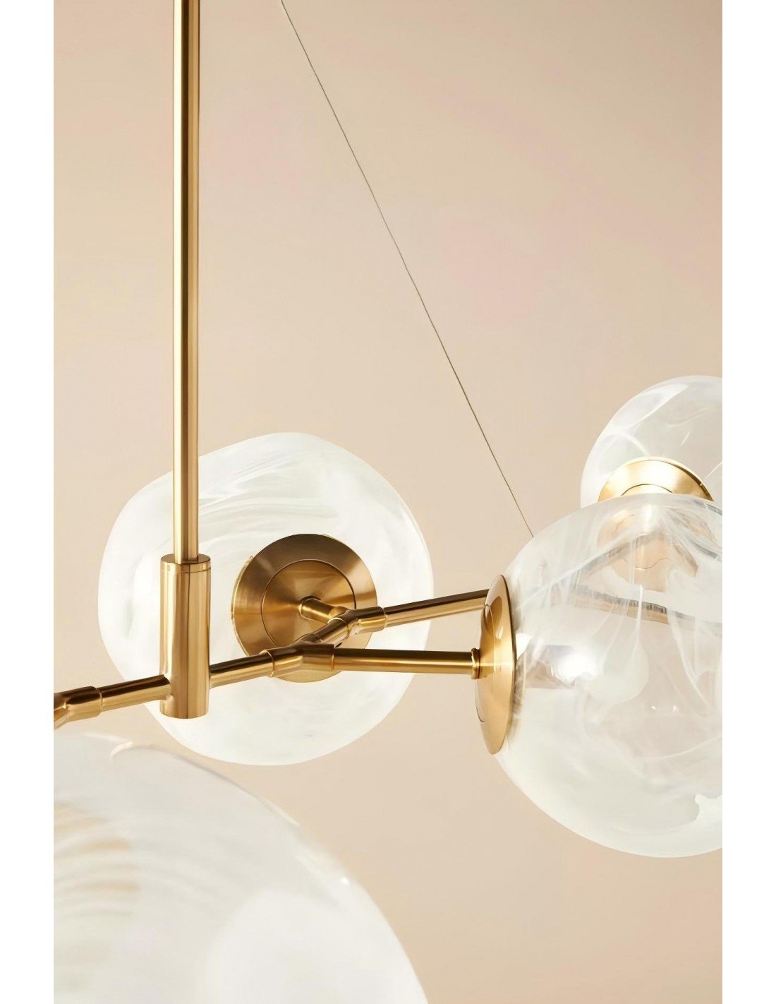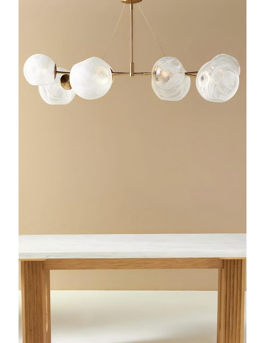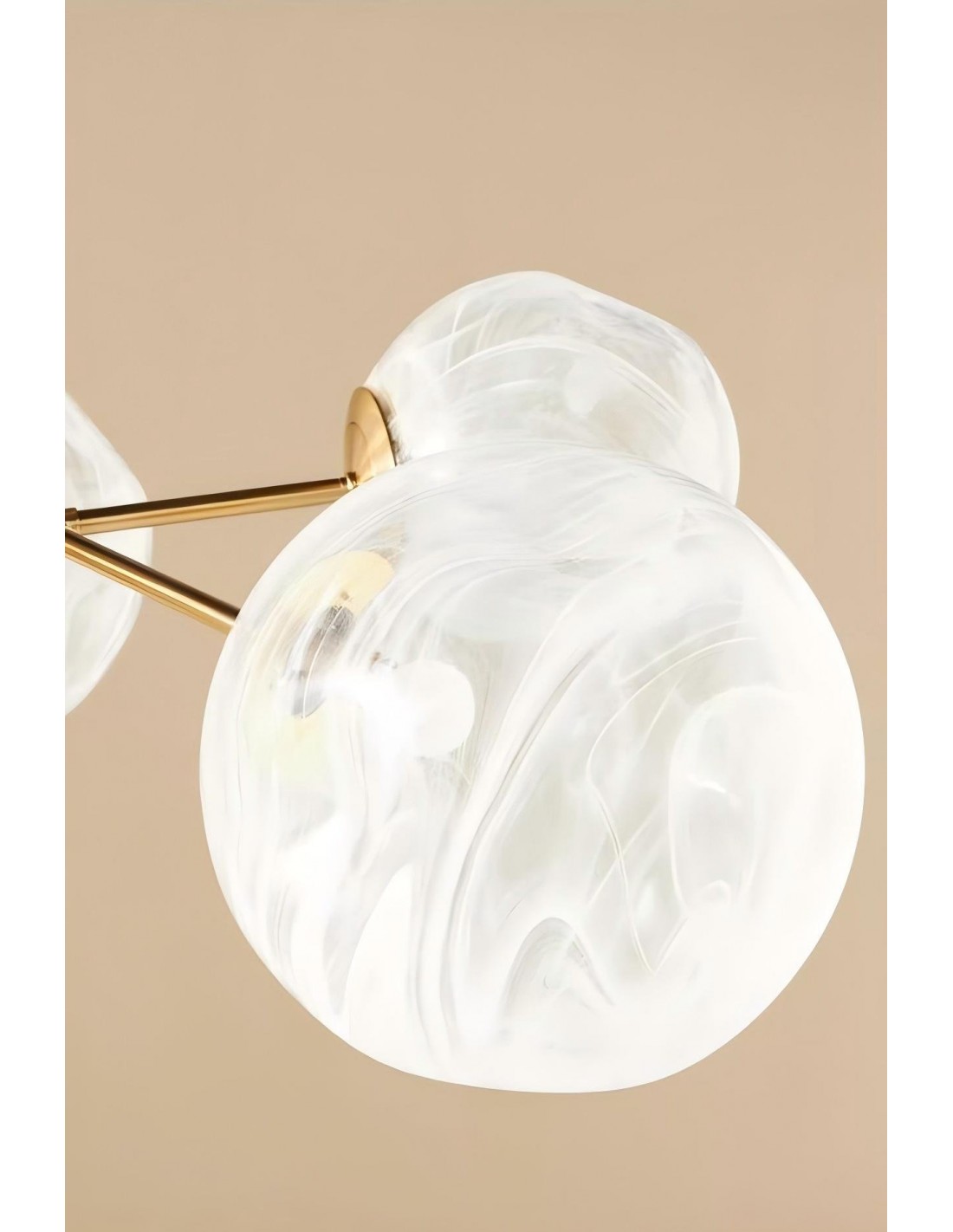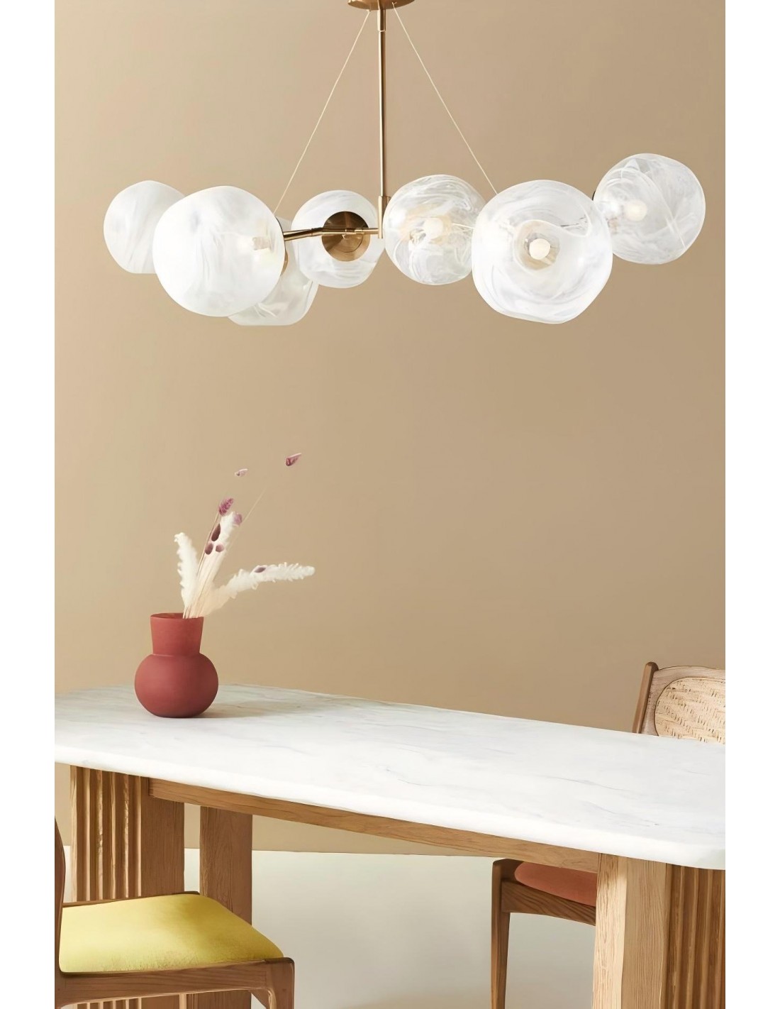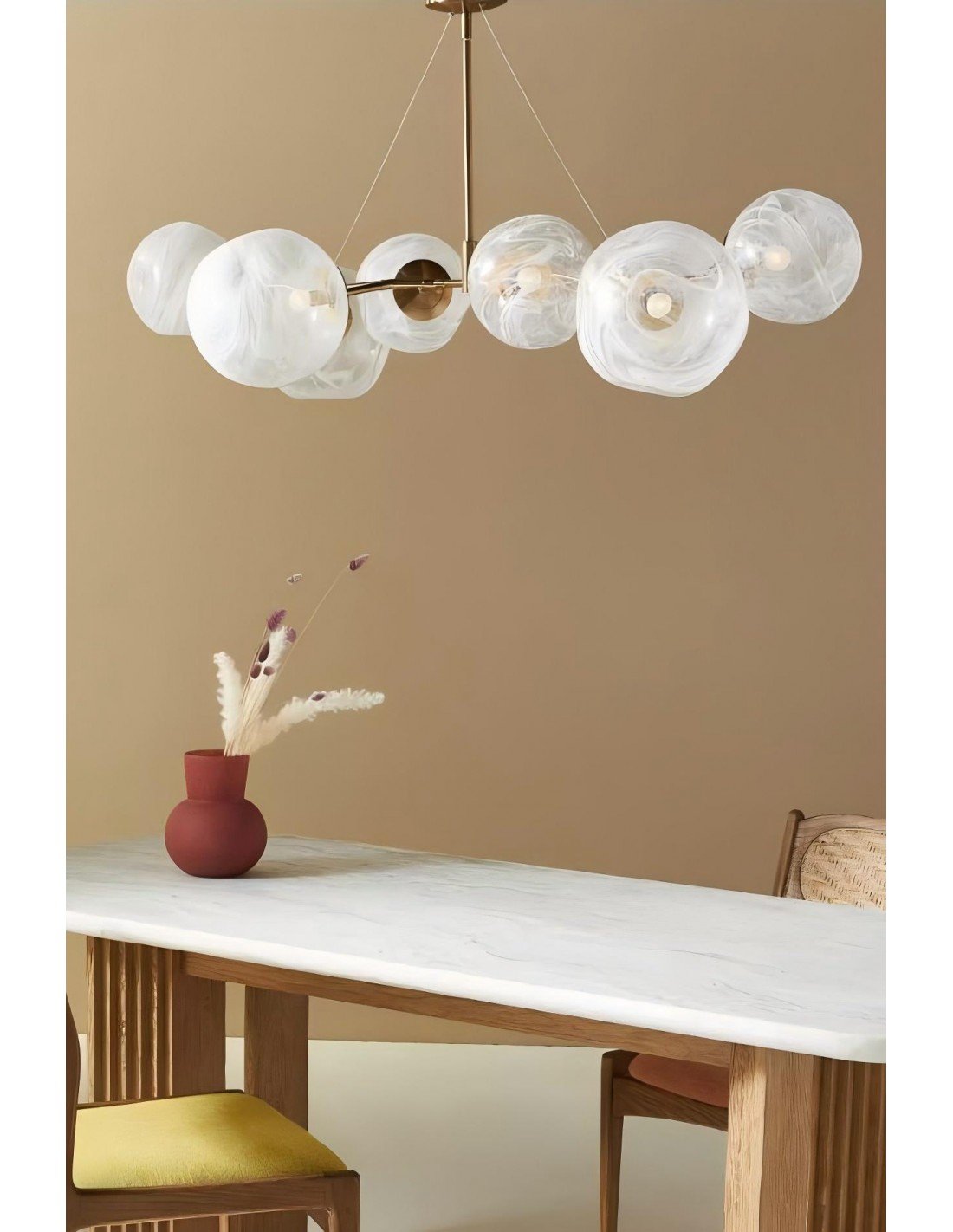 Inspired by the elegance of nature, the Cloud Organic Glass Globe Multi-Light Chandelier features marbled globes clustered like drifting clouds. Suspended on a champagne frame, it provides layered illumination. A stunning choice for dining rooms, living spaces, or stylish hallways seeking modern organic lighting.