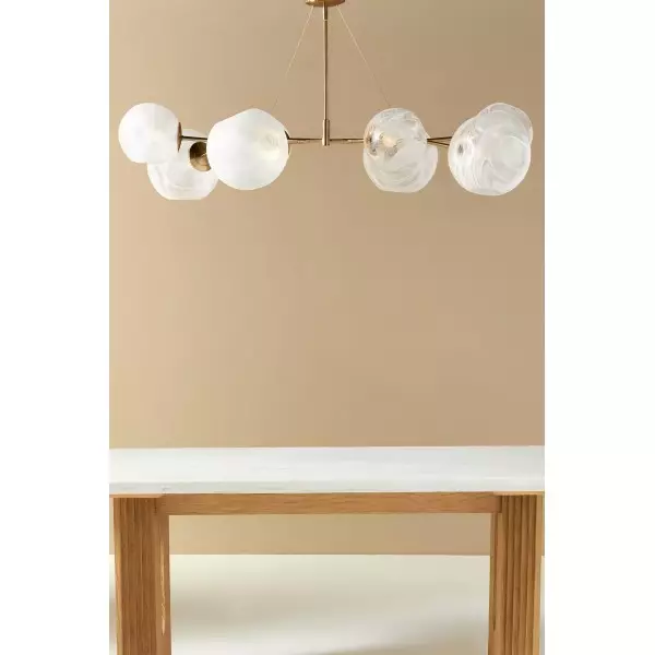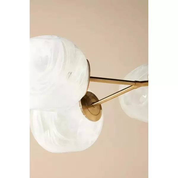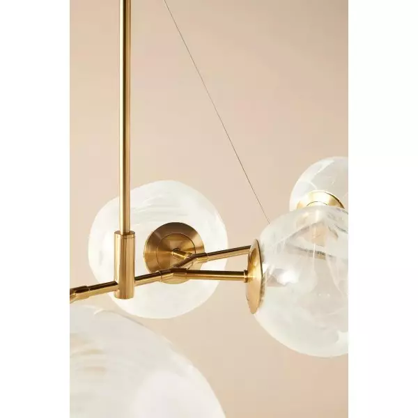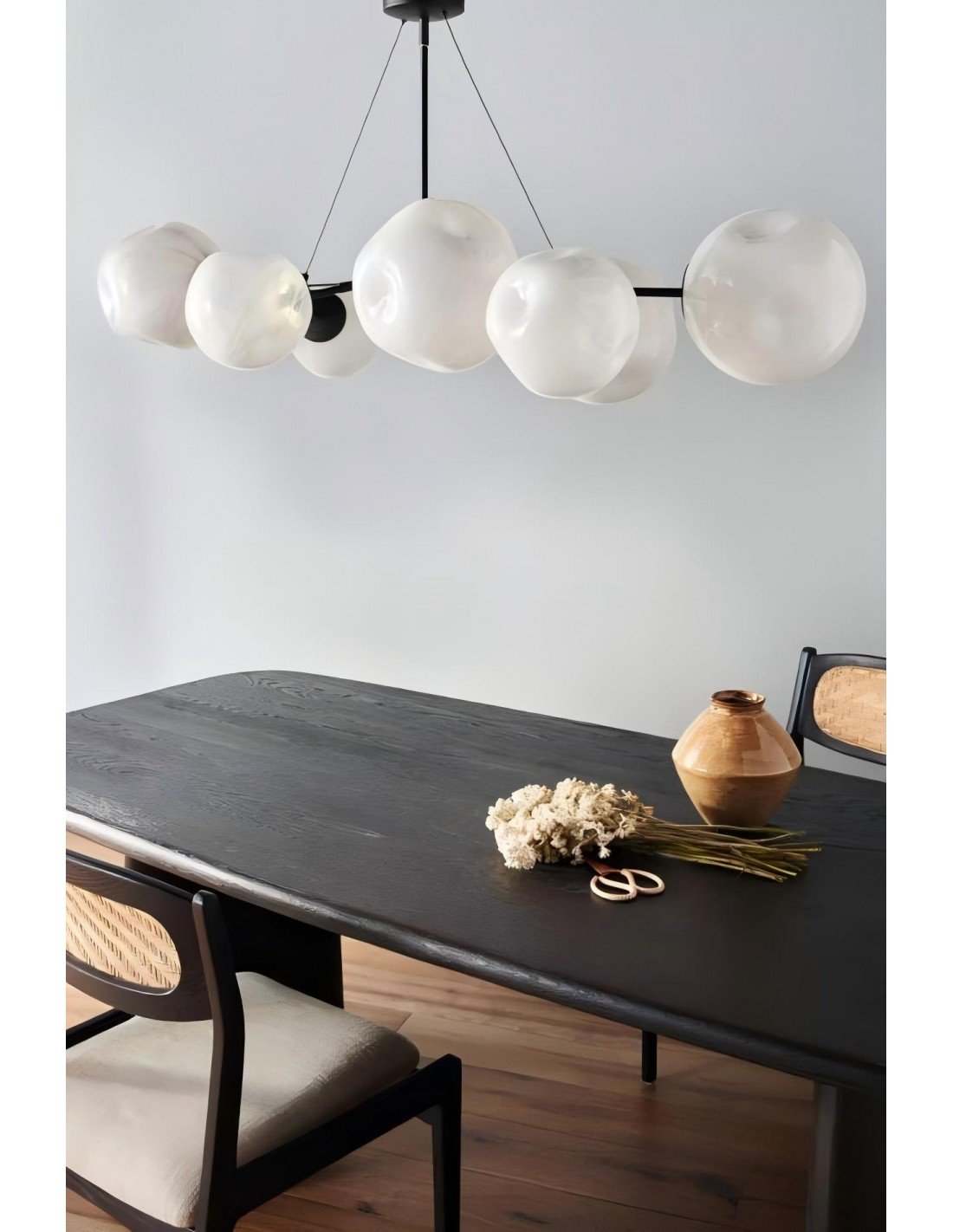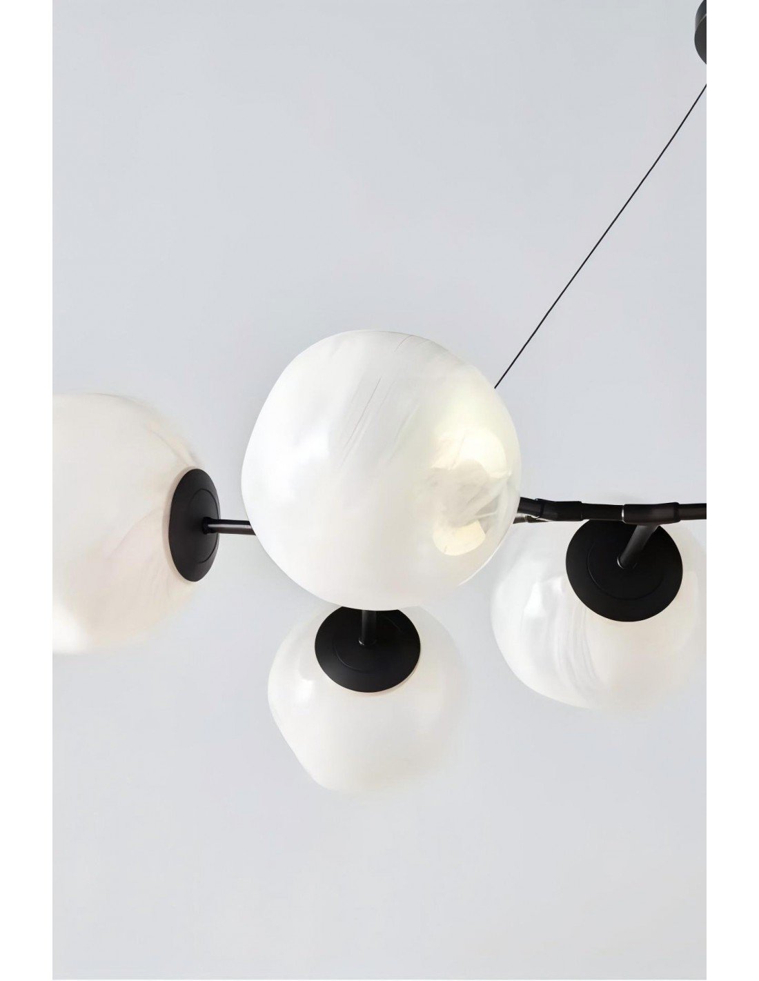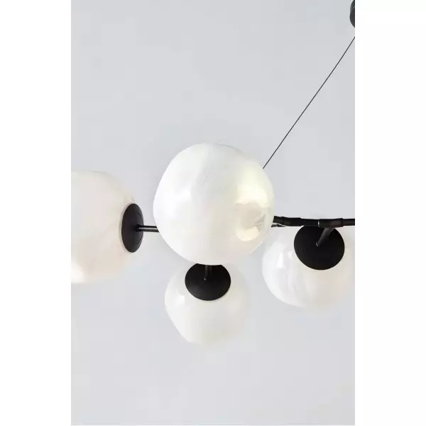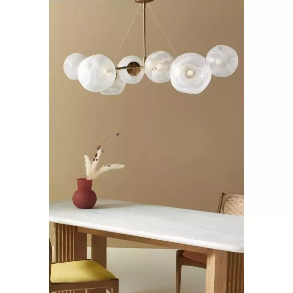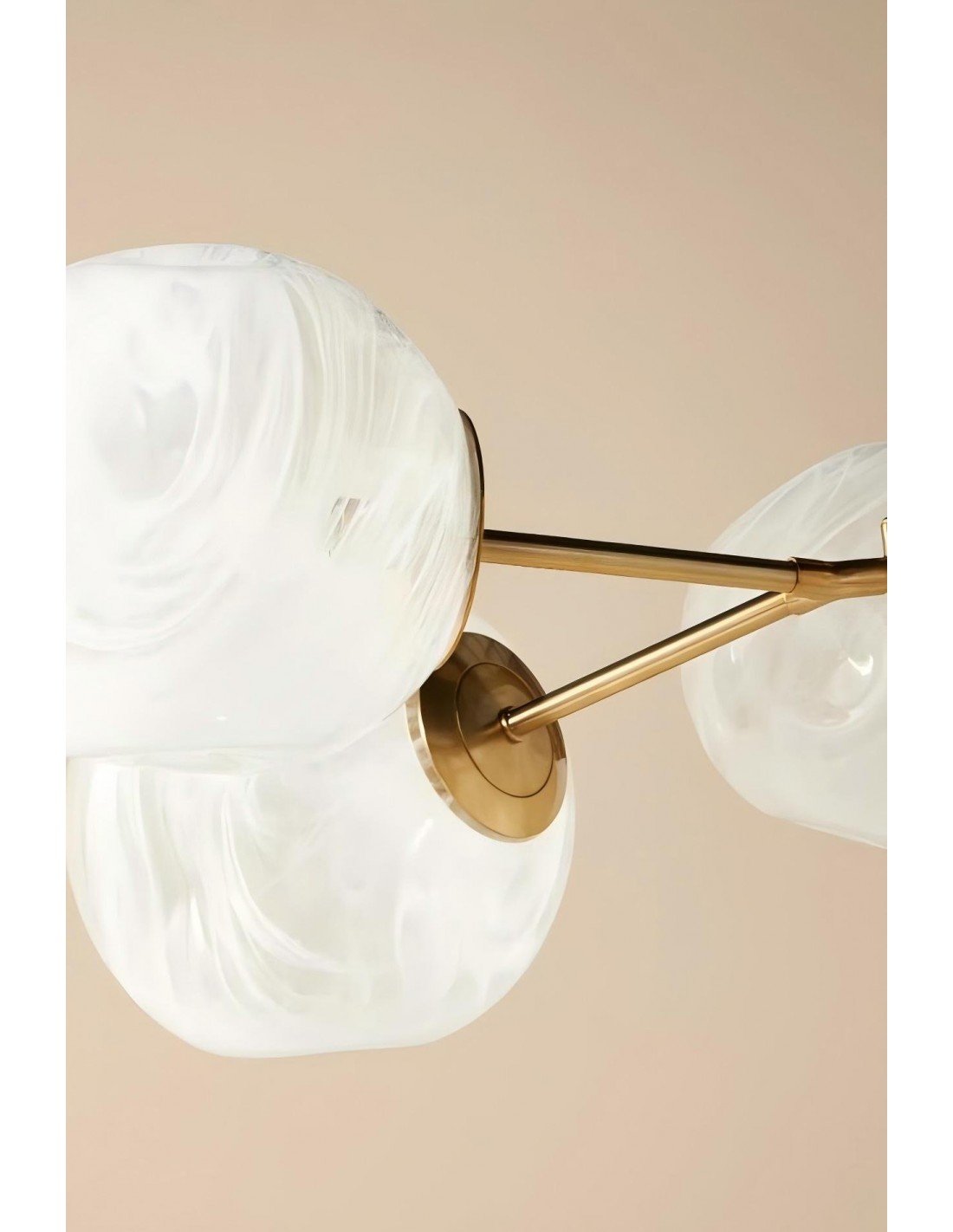 Inspired by the elegance of nature, the Cloud Organic Glass Globe Multi-Light Chandelier features marbled globes clustered like drifting clouds. Suspended on a champagne frame, it provides layered illumination. A stunning choice for dining rooms, living spaces, or stylish hallways seeking modern organic lighting.