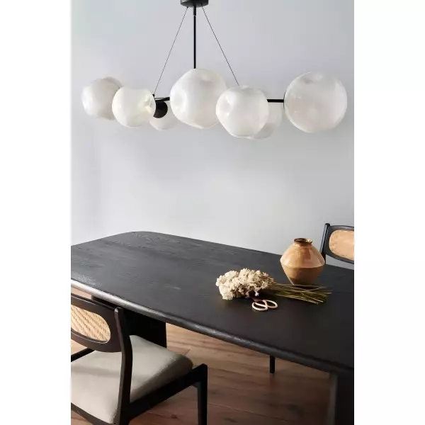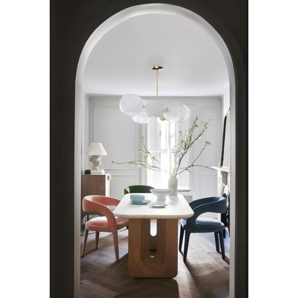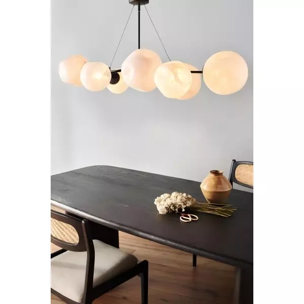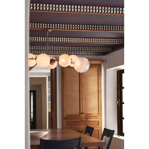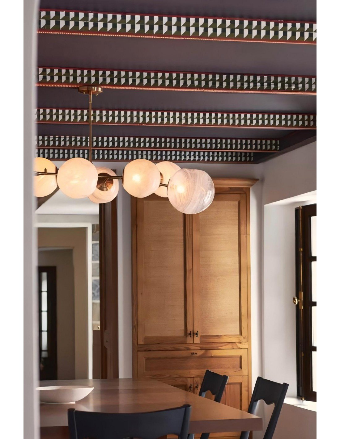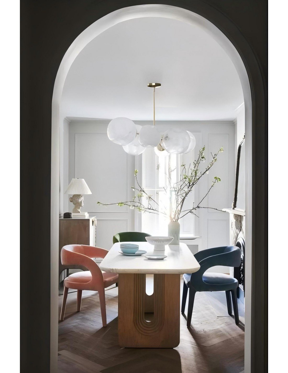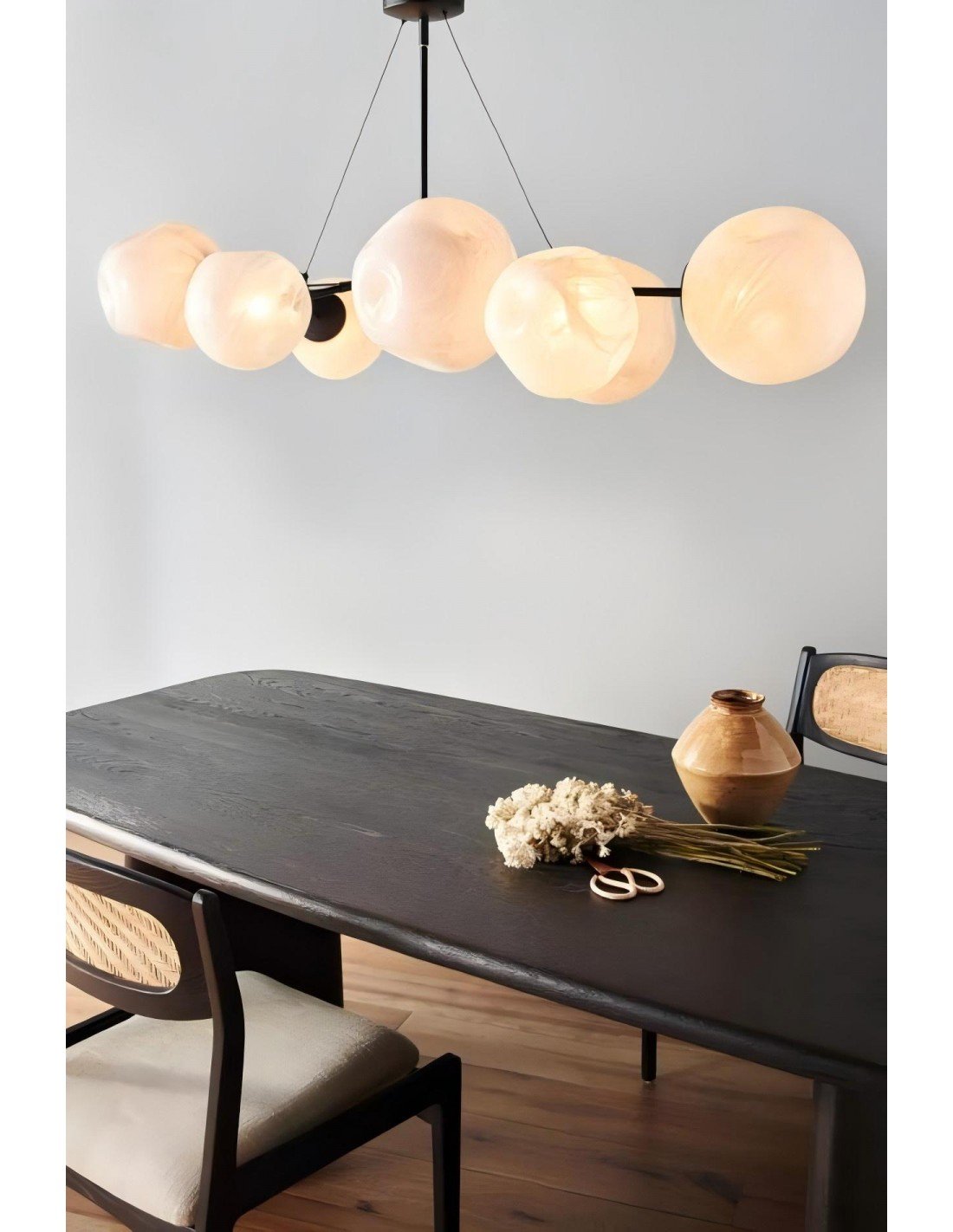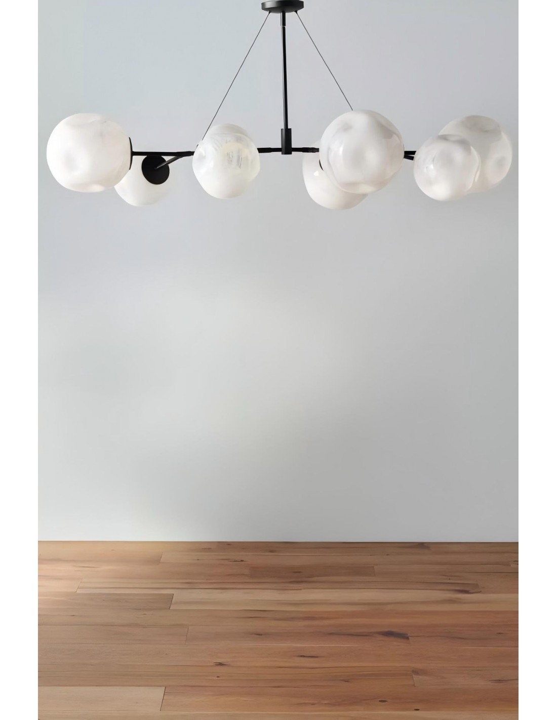 Inspired by the elegance of nature, the Cloud Organic Glass Globe Multi-Light Chandelier features marbled globes clustered like drifting clouds. Suspended on a champagne frame, it provides layered illumination. A stunning choice for dining rooms, living spaces, or stylish hallways seeking modern organic lighting.