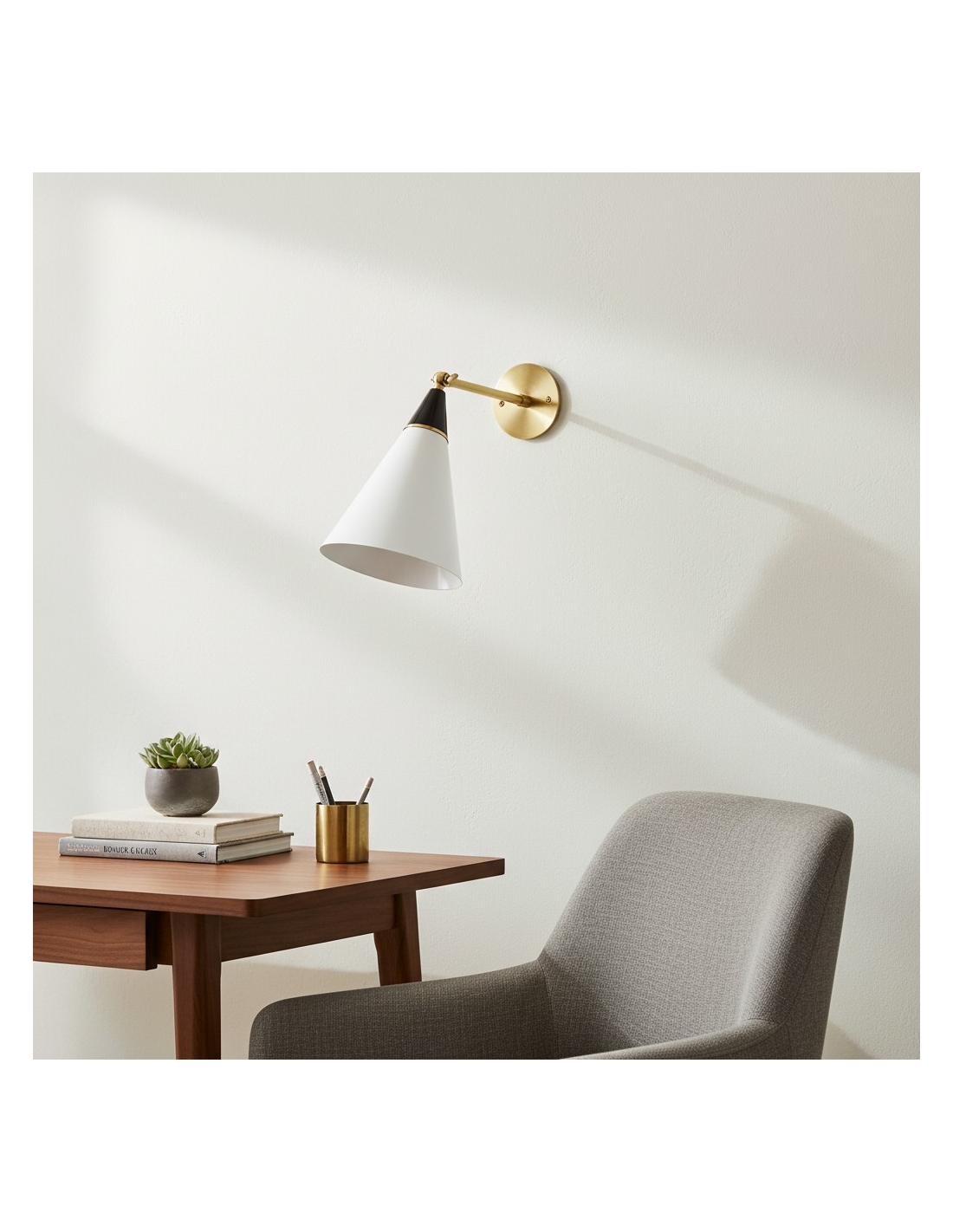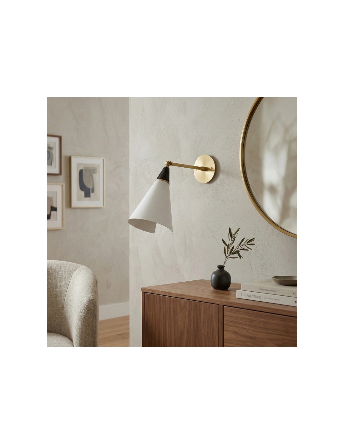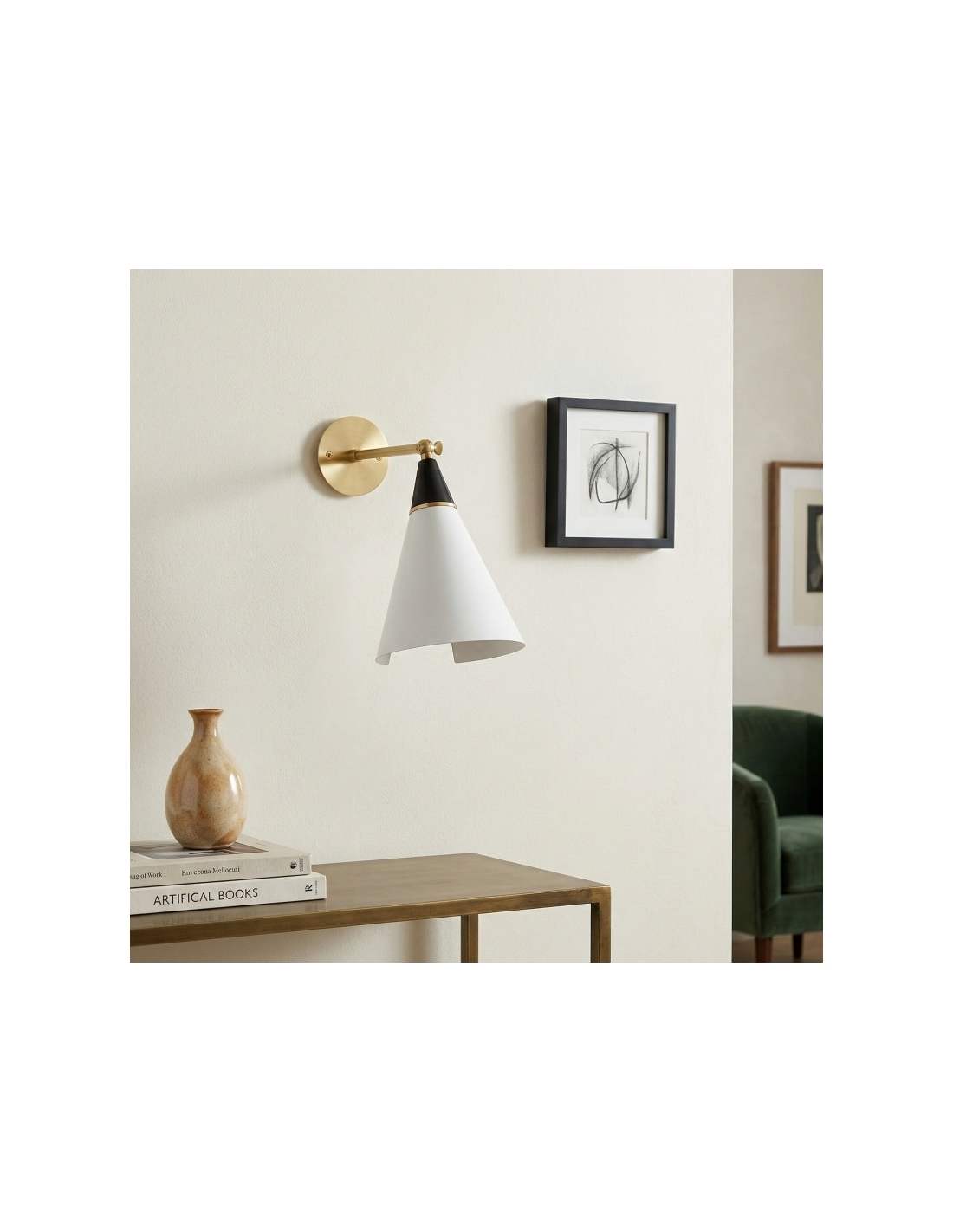 The Oribelle Wall Lamp features a graceful curved silhouette crafted from metal, brass, and aluminum. Its sculptural form diffuses light softly, creating a warm ambient glow. Designed for indoor use, this modern wall sconce enhances bedrooms, living rooms, and hallways with refined minimalist style.