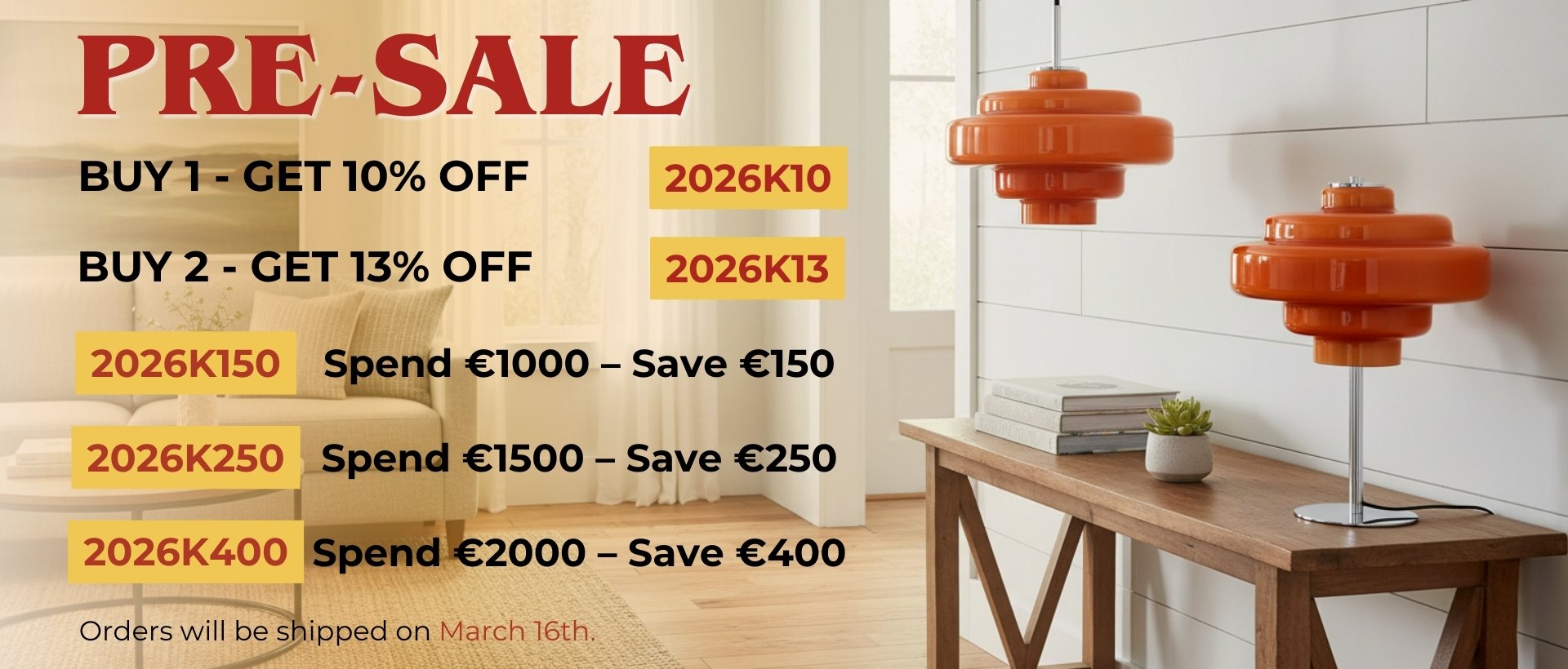 Due to the Chinese Lunar New Year holiday, we will adopt a pre-order method to sell our products and enjoy up to 20% off your order. However, your order will be processed after the pre-sale period ends and will ship from march 16th. Dear customers, please pay attention.