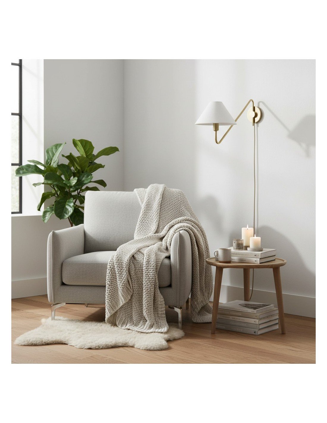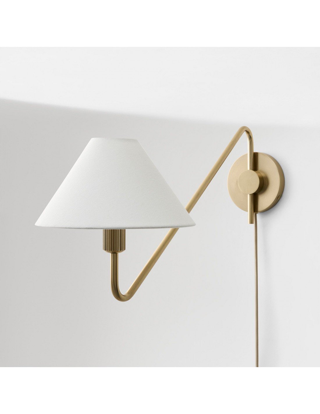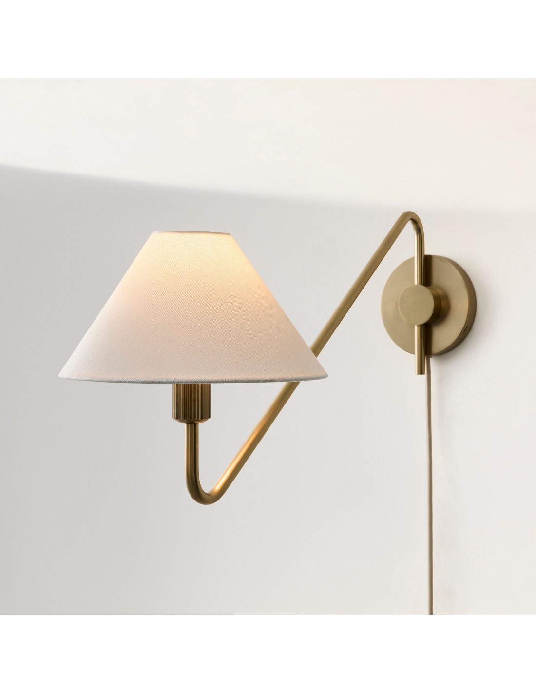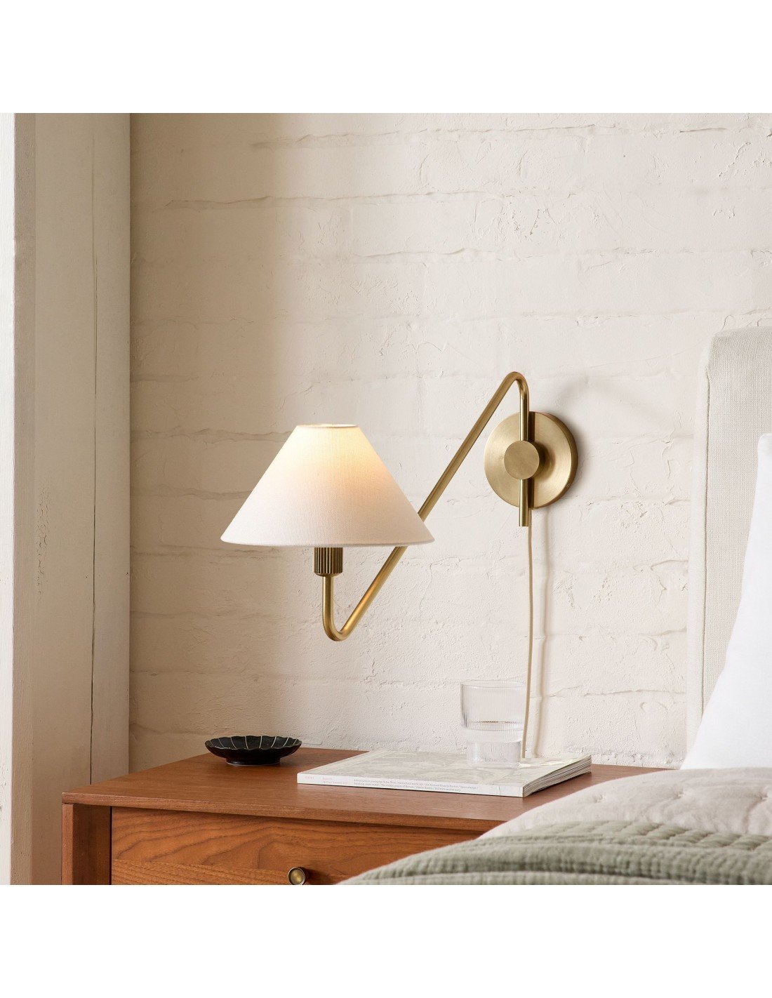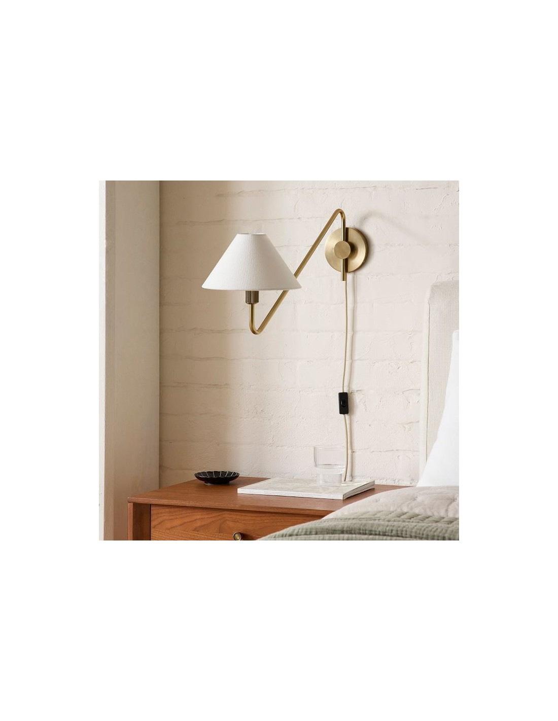 Refresh your décor with this plug-in wall sconce in a chic champagne bronze finish. The adjustable arm design provides directional lighting, while the white linen shade creates a warm and inviting glow. A stylish blend of modern proportions and timeless design, perfect for living rooms, reading nooks, or entryways.
