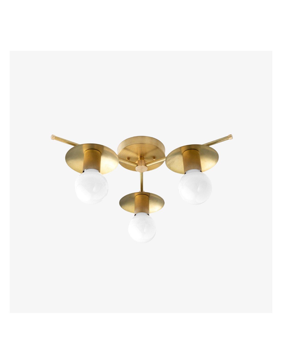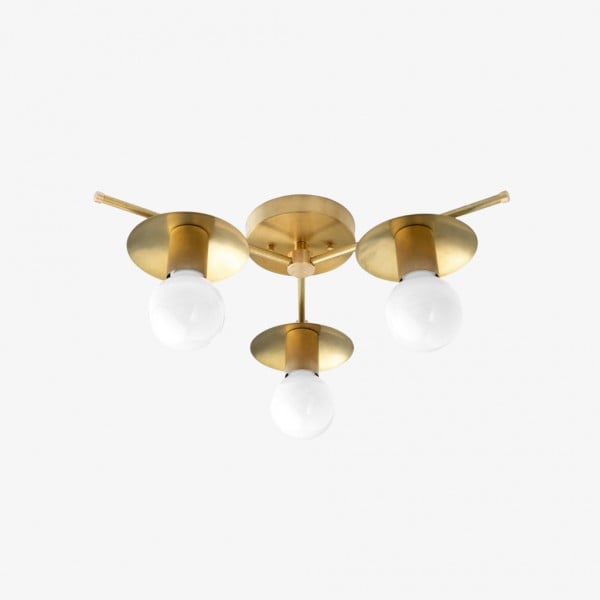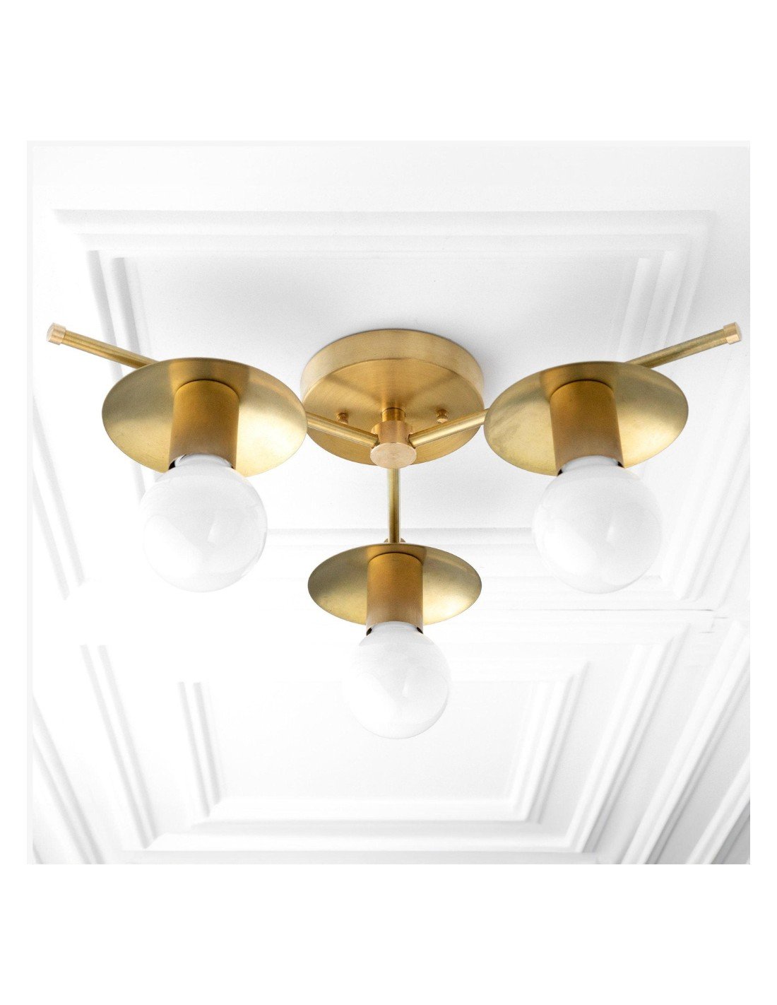 Where industrial raw meets Deco refinement. This unique ceiling light features a robust unfinished brass build that evolves with time, paired with the elegant geometric flair of Art Deco design. The prominent 5-inch backsplashes add depth and architectural interest. Perfect for adding character to a loft, modern farmhouse, or any space that celebrates authentic, textured materials and statement lighting.