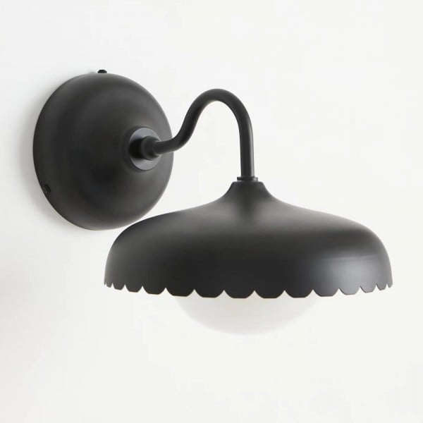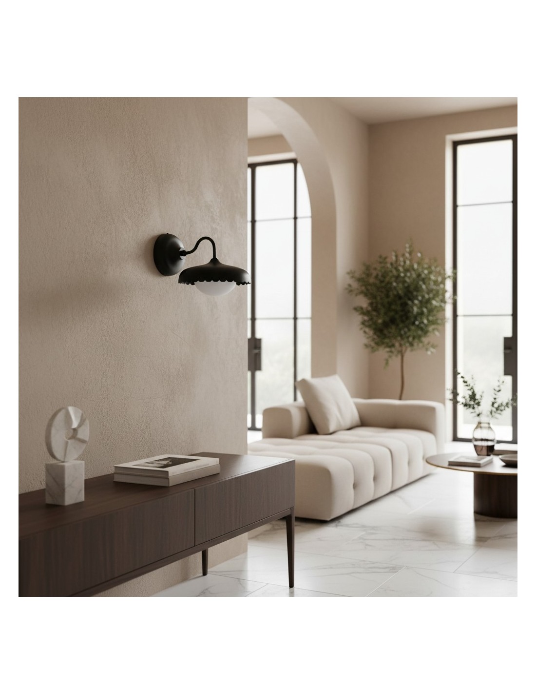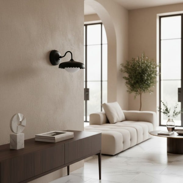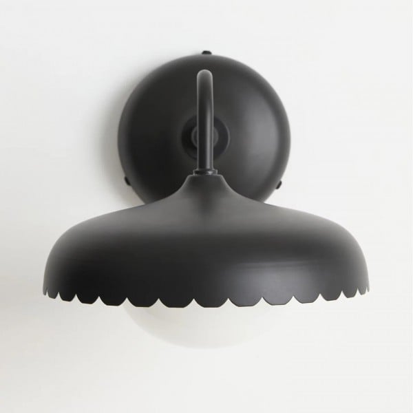 Bring timeless elegance to your outdoor space with this scallop edge wall sconce light. Perfect for porches, patios, or decks, its sleek metal frame and soft glow add charm and style. Use it as an outdoor wall light to create a warm, inviting atmosphere every evening.