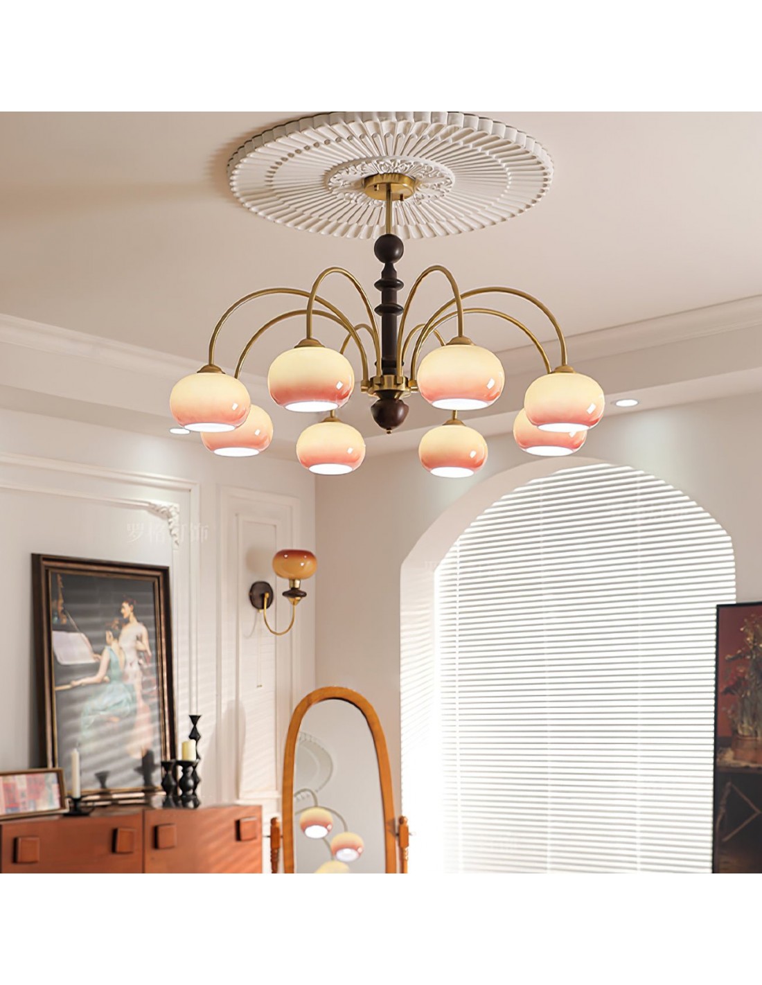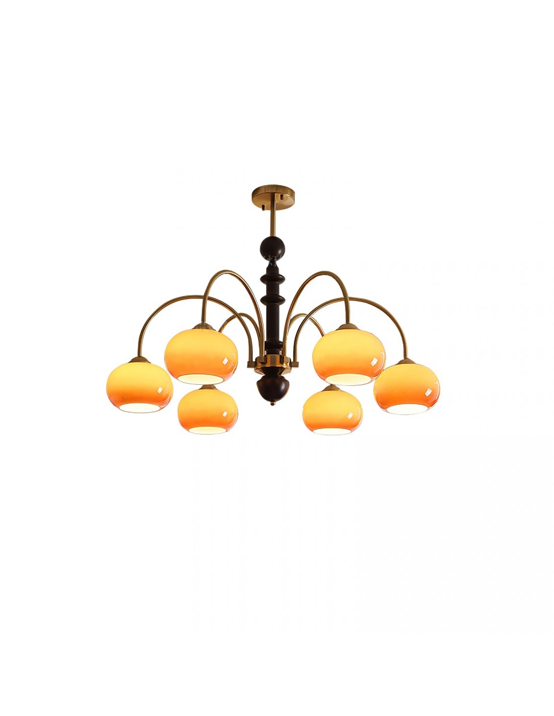 Inspired by the rich hues of ripe persimmons, this chandelier features gracefully arched arms and warm glass shades. It brings a touch of classic elegance and a cozy glow to any space, enhancing your home's inviting atmosphere.