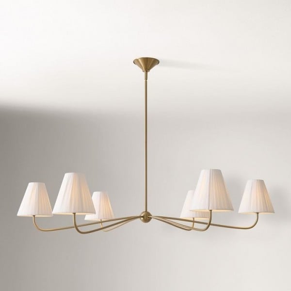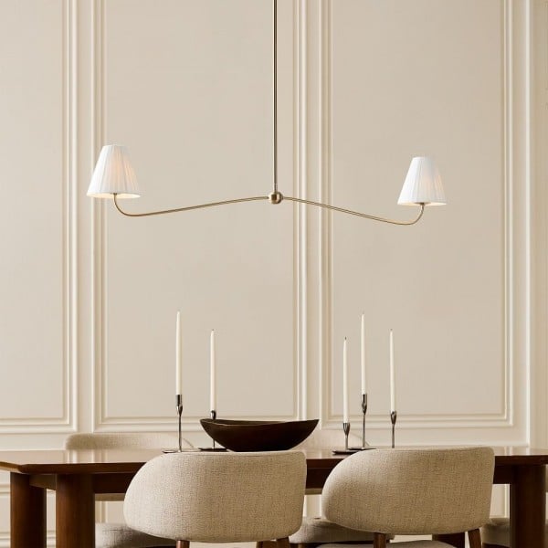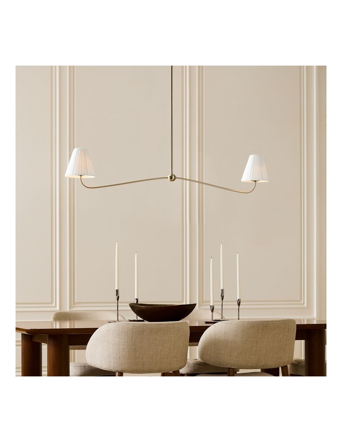 Elevate your space with the Linear Chandelier , featuring a champagne bronze metal body and pleated or plain linen shades. Perfect for dining rooms, living rooms, bedrooms, or hallways. Adjustable hanging height and contract-grade quality make it ideal for residential or commercial use.