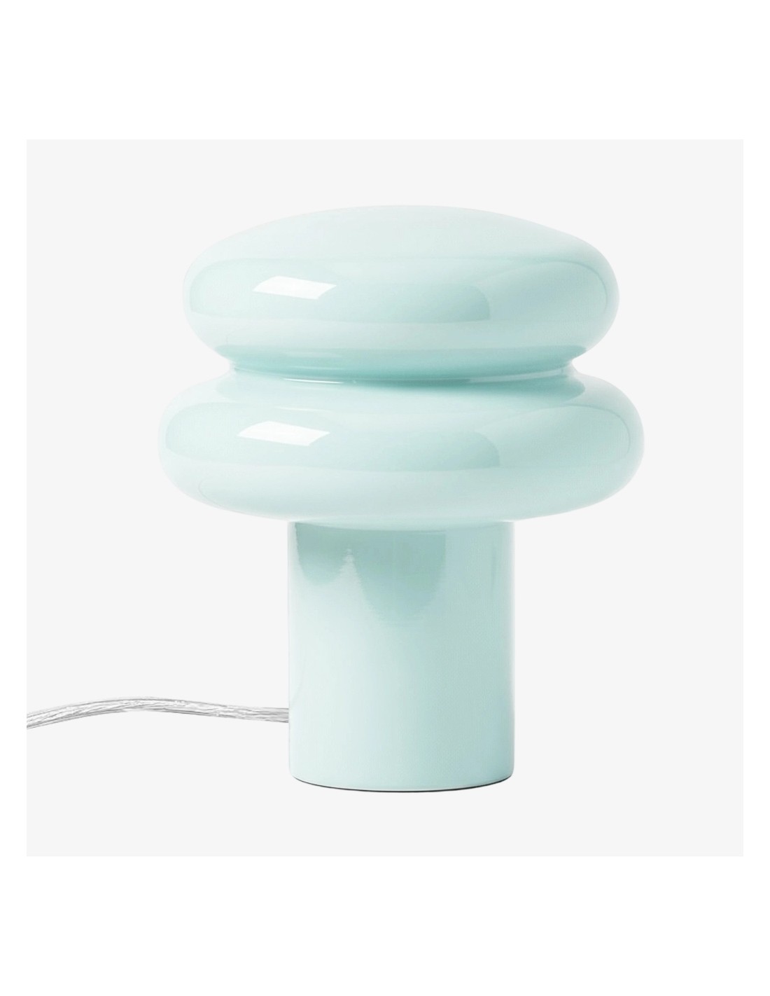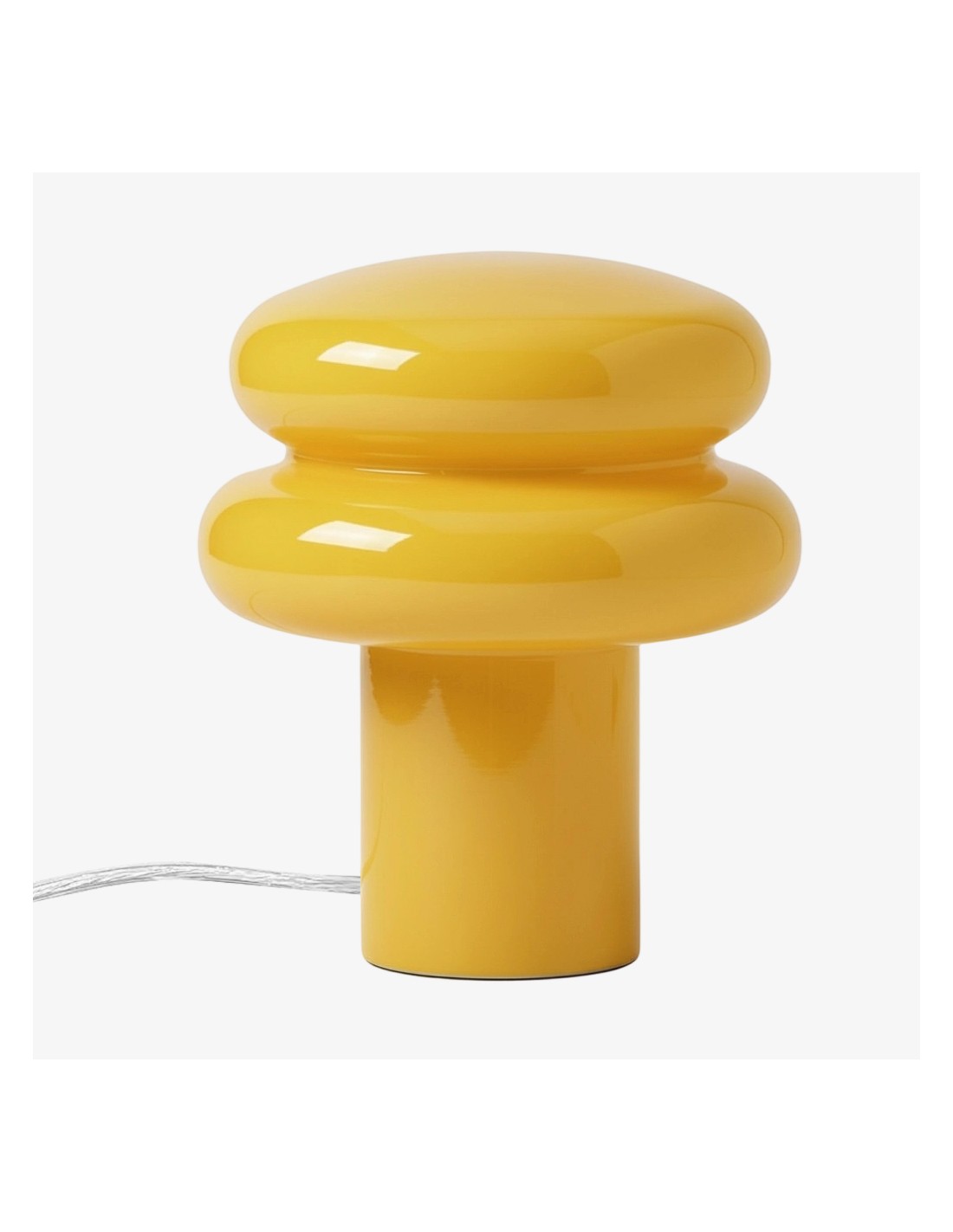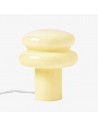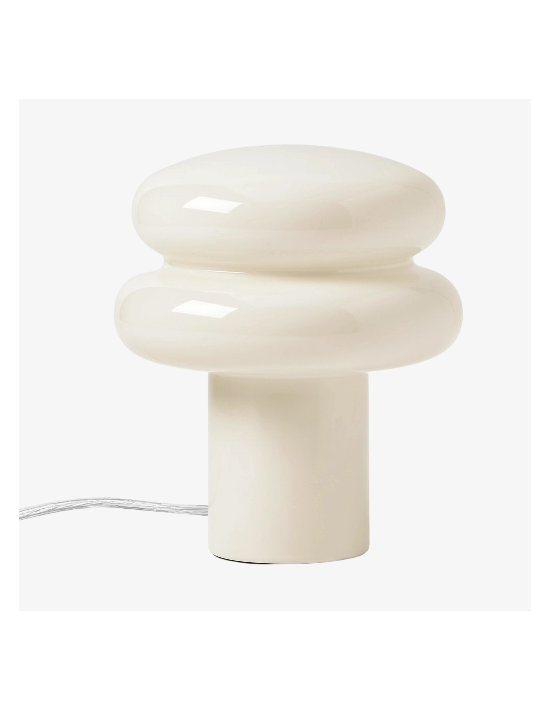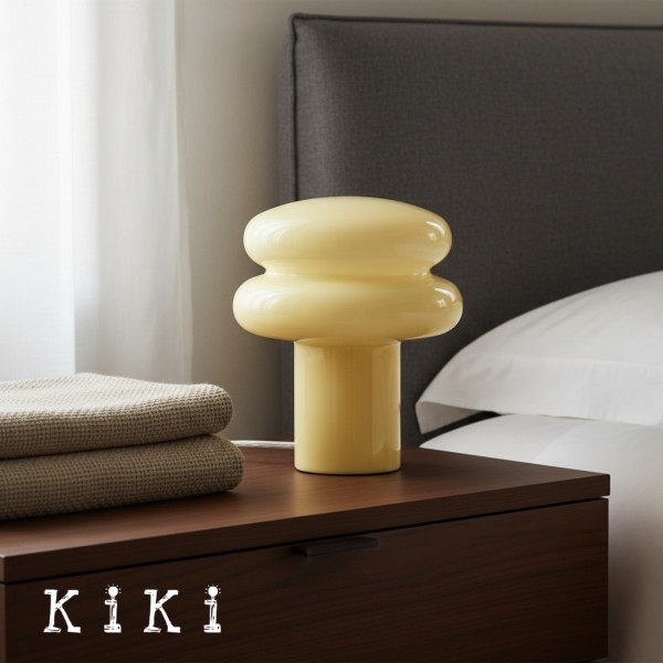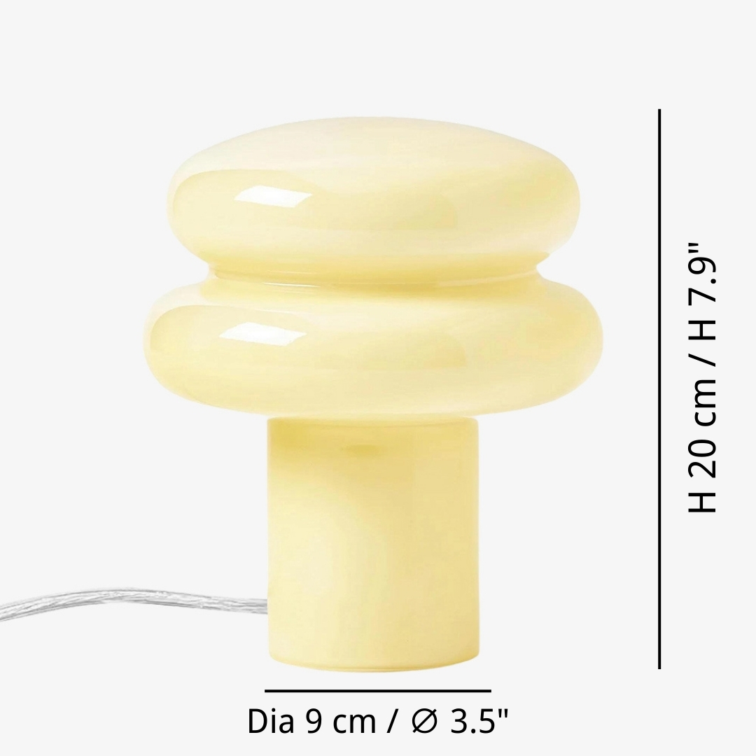 This table lamp features sleek opaline glass with a soft yellow or pink shade, emitting a warm and inviting glow—perfect for creating a relaxing atmosphere. Its compact mushroom shape is both modern and classic, blending seamlessly into any interior. The fabric-wrapped cord adds a touch of sophistication while ensuring safety.