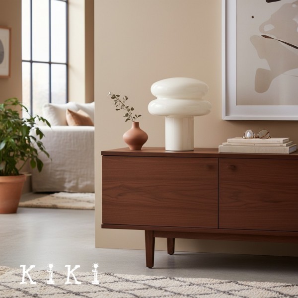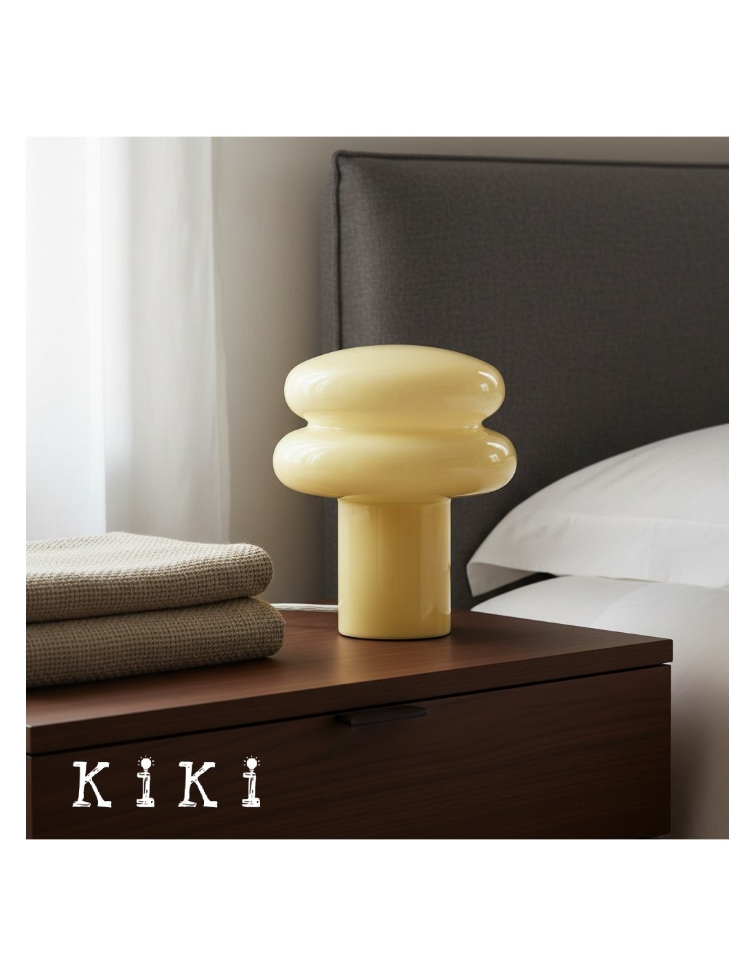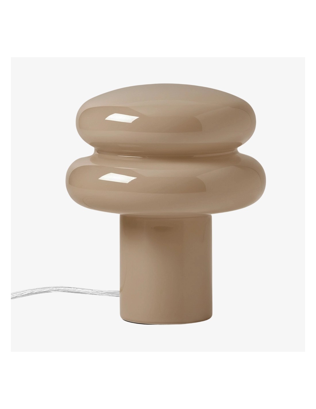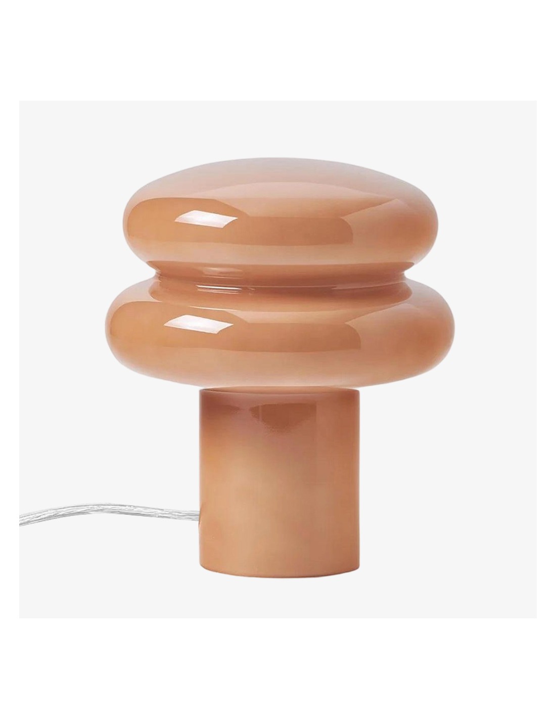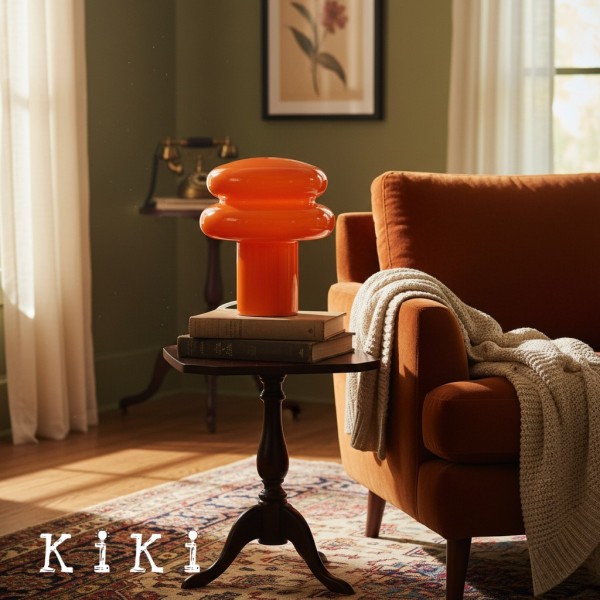 This table lamp features sleek opaline glass with a soft yellow or pink shade, emitting a warm and inviting glow—perfect for creating a relaxing atmosphere. Its compact mushroom shape is both modern and classic, blending seamlessly into any interior. The fabric-wrapped cord adds a touch of sophistication while ensuring safety.