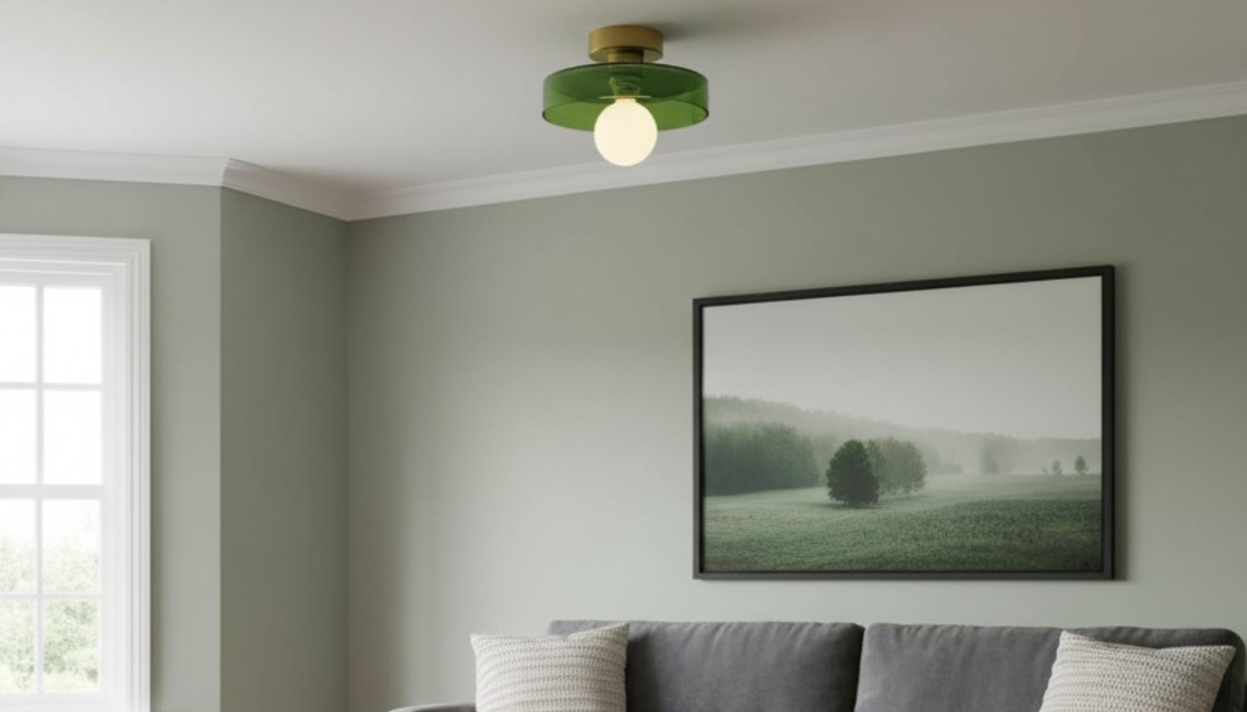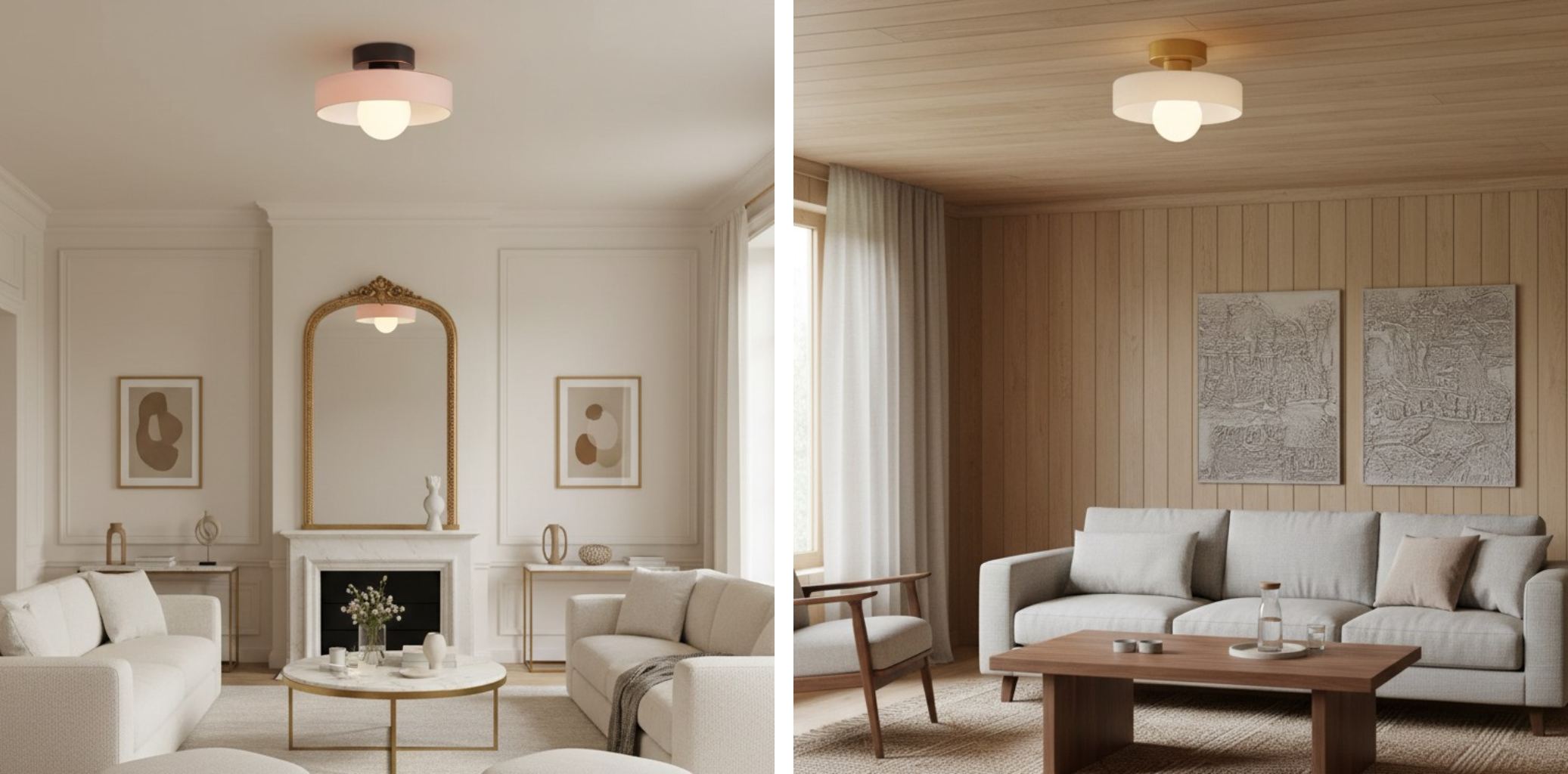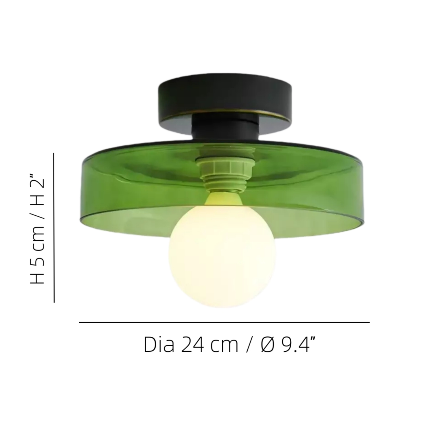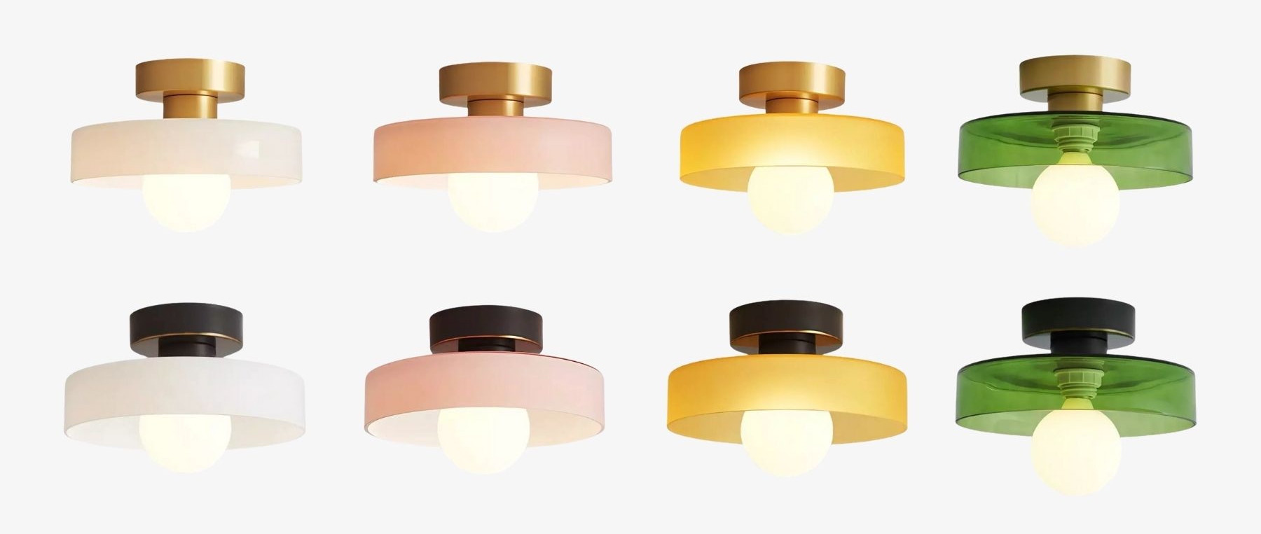 Featuring a slim disc canopy paired with a rounded glass orb, this flush-mount ceiling light brings a playful yet refined accent to modern, Nordic, and eclectic interiors. The softly diffused glow creates comfortable ambient lighting for bedrooms, hallways, and living areas.