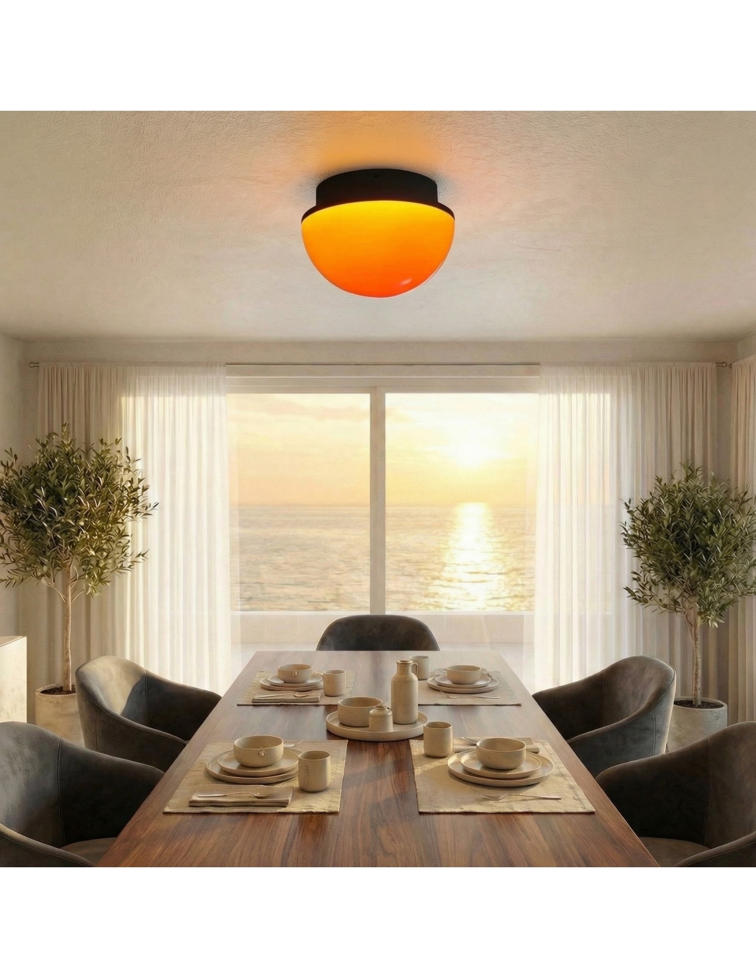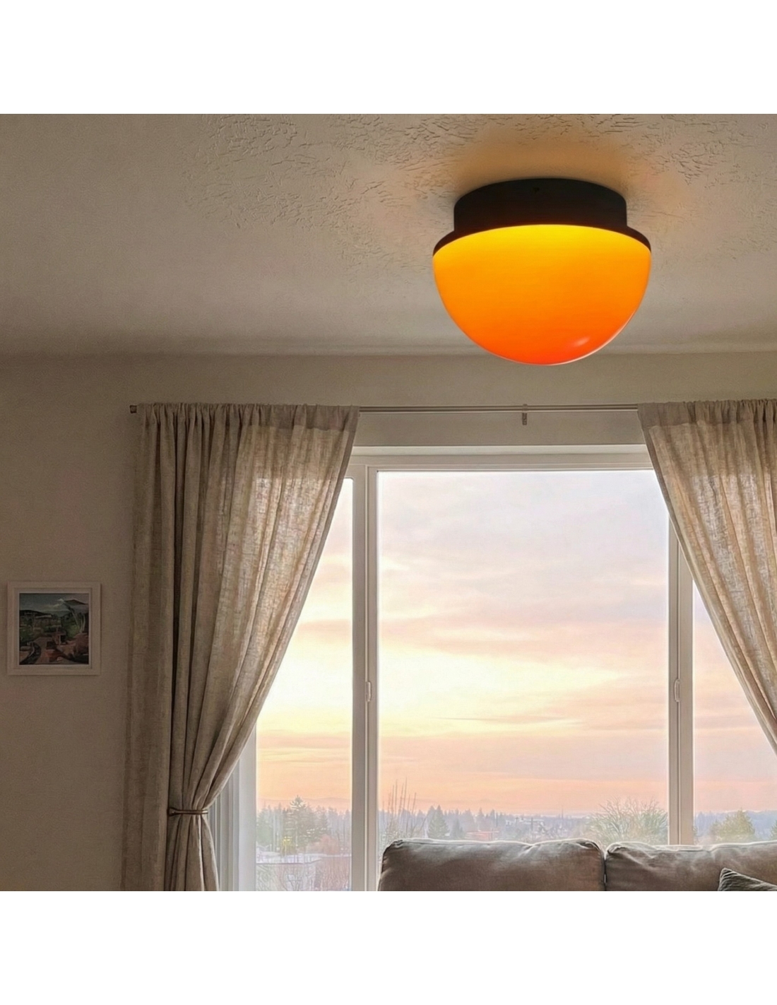 Elevate your space with this modern flush-mount ceiling light that radiates a soft, sunset-inspired glow. Crafted with sleek acrylic and integrated LEDs, its smooth dome silhouette adds ambient warmth and contemporary flair to living rooms, bedrooms, hallways, offices, and more.