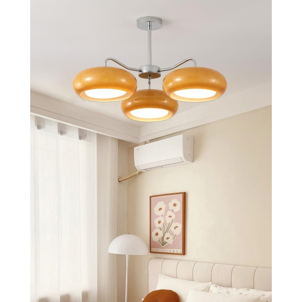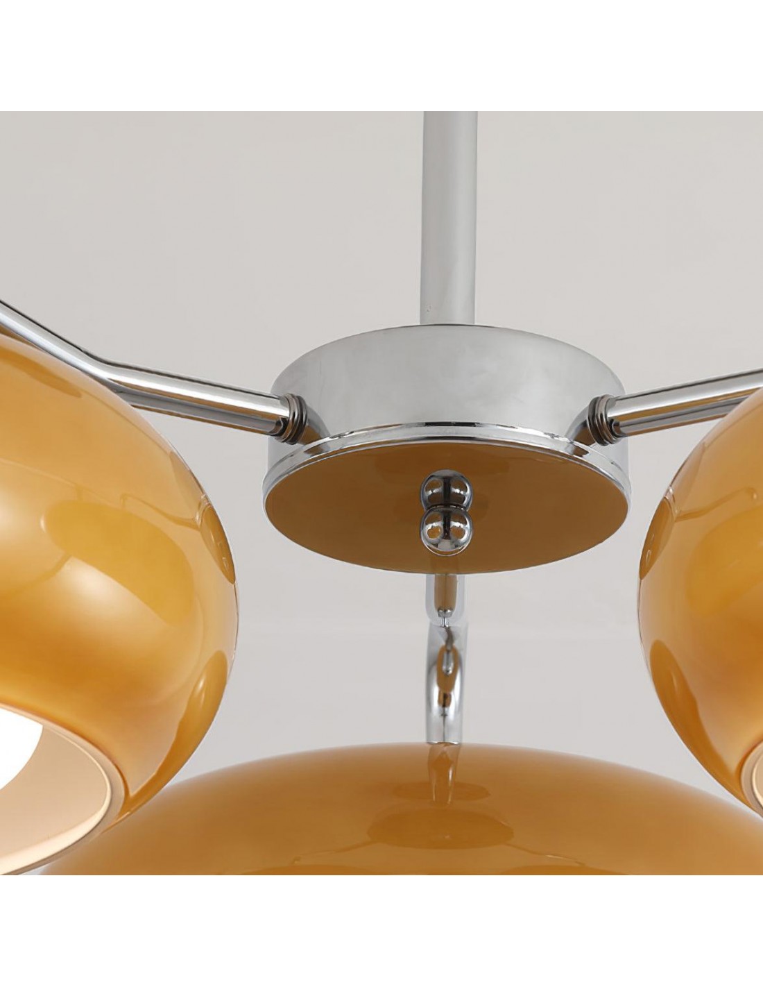 Make a statement with the classic 1960s style of the ceiling light. This elegant chrome chandelier features a geometric structure, pure and simple design, and three glass bulbs on a chromed frame, providing beautiful, warm lighting, Perfect for any modern décor.