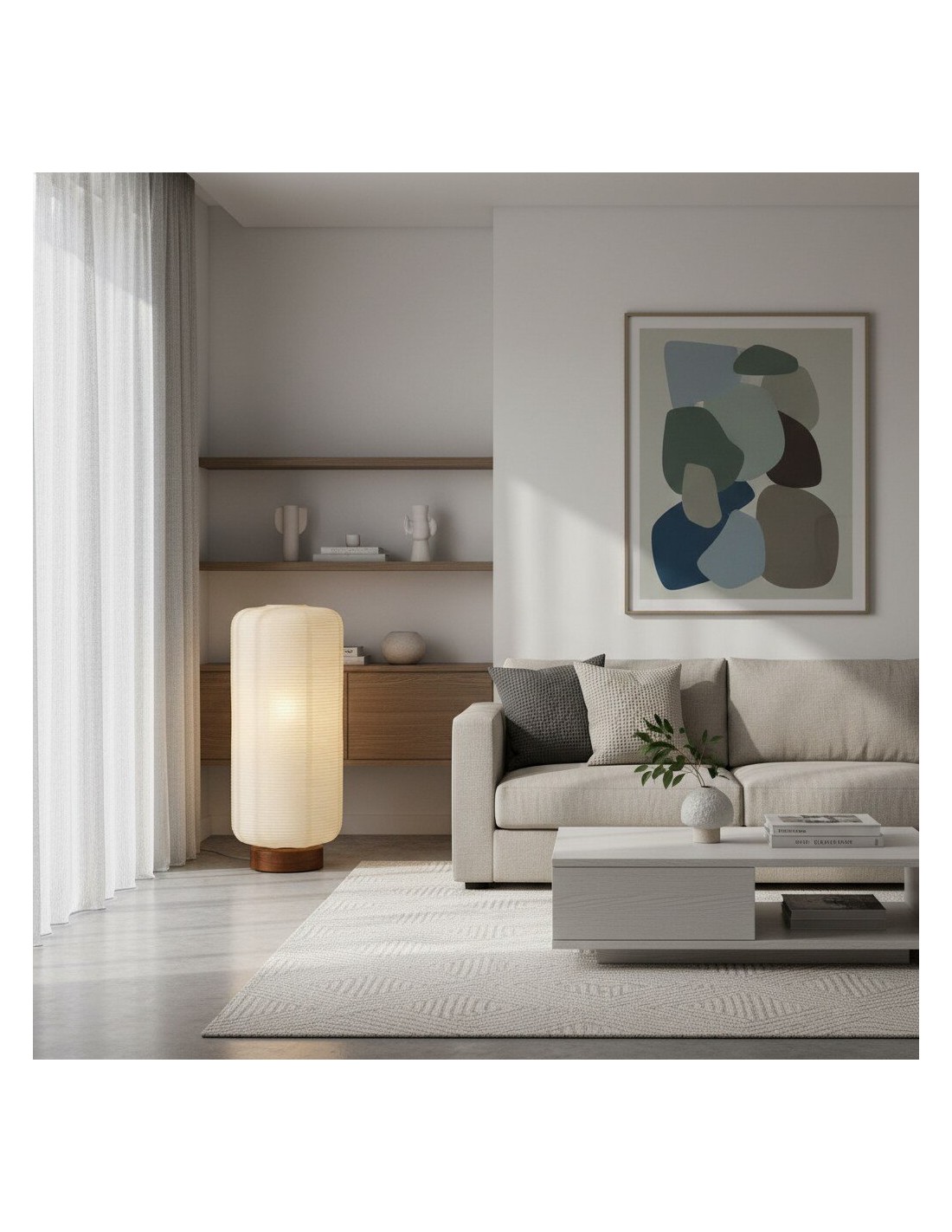 This exquisite floor lamp is designed to bring understated elegance and soft light to any space. It features a simple solid wood base and a soft paper lampshade, achieving a perfect balance between natural textures and modern minimalism.