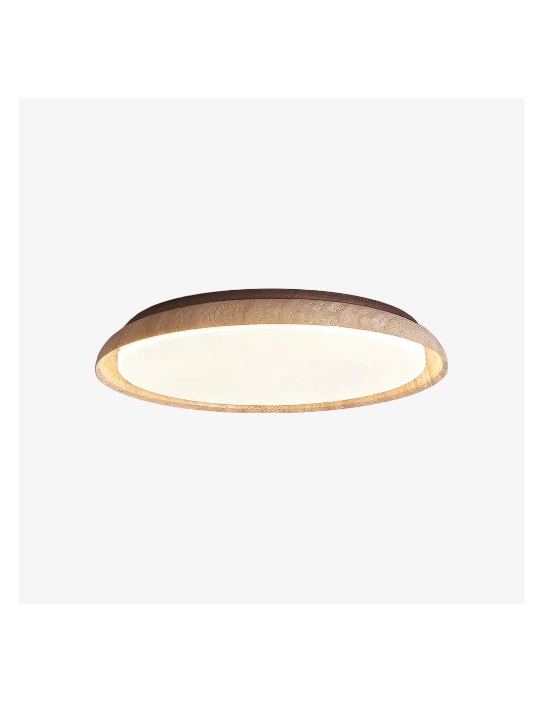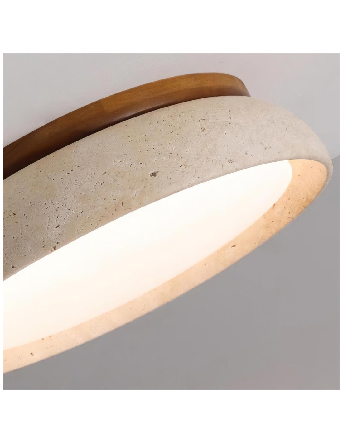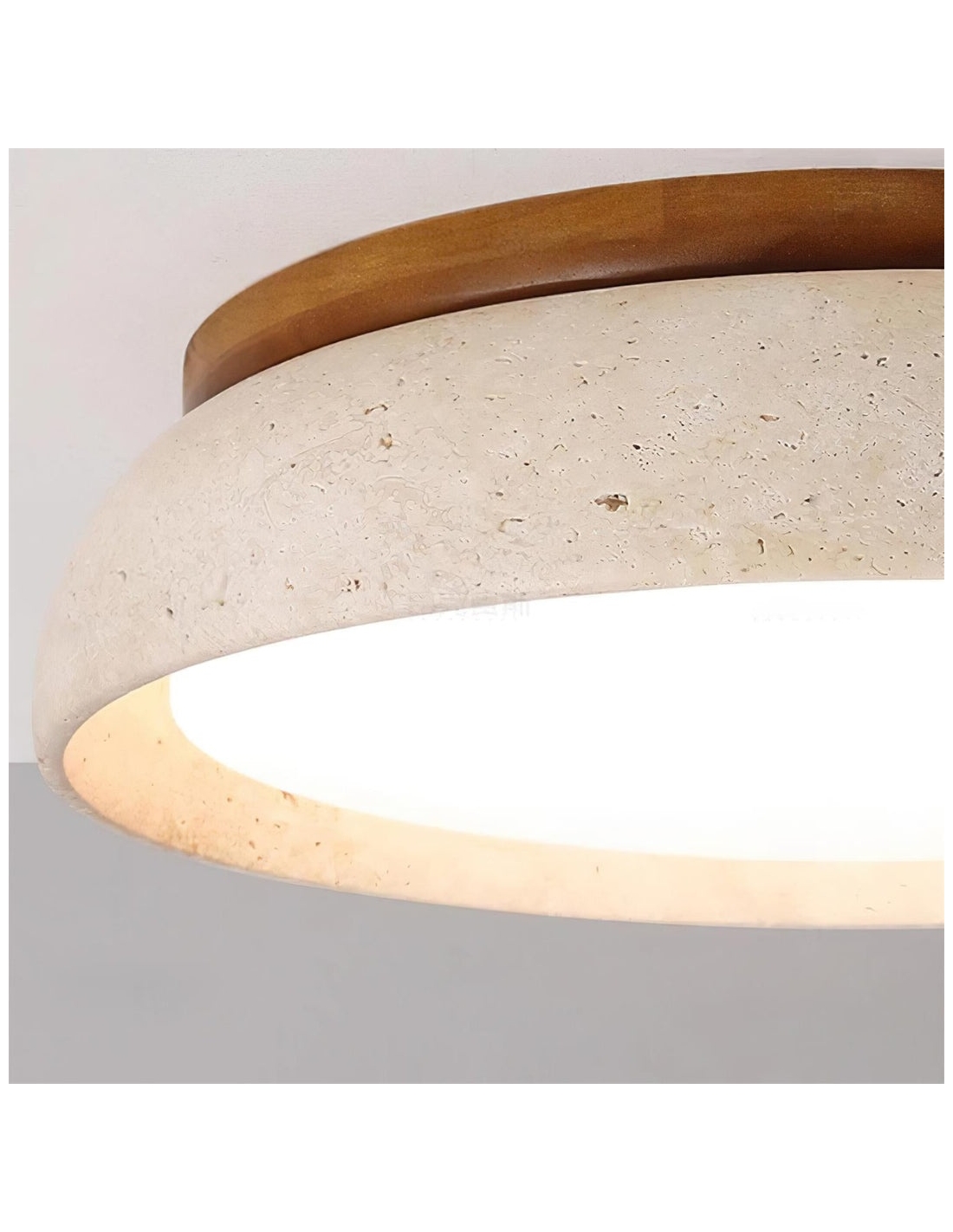The Torvella Travertine Ceiling Light features a clean circular silhouette with a sculpted disc on a wood base, adding subtle elegance. This flush mount provides warm, diffused light for living rooms, bedrooms, hallways, or dining areas.