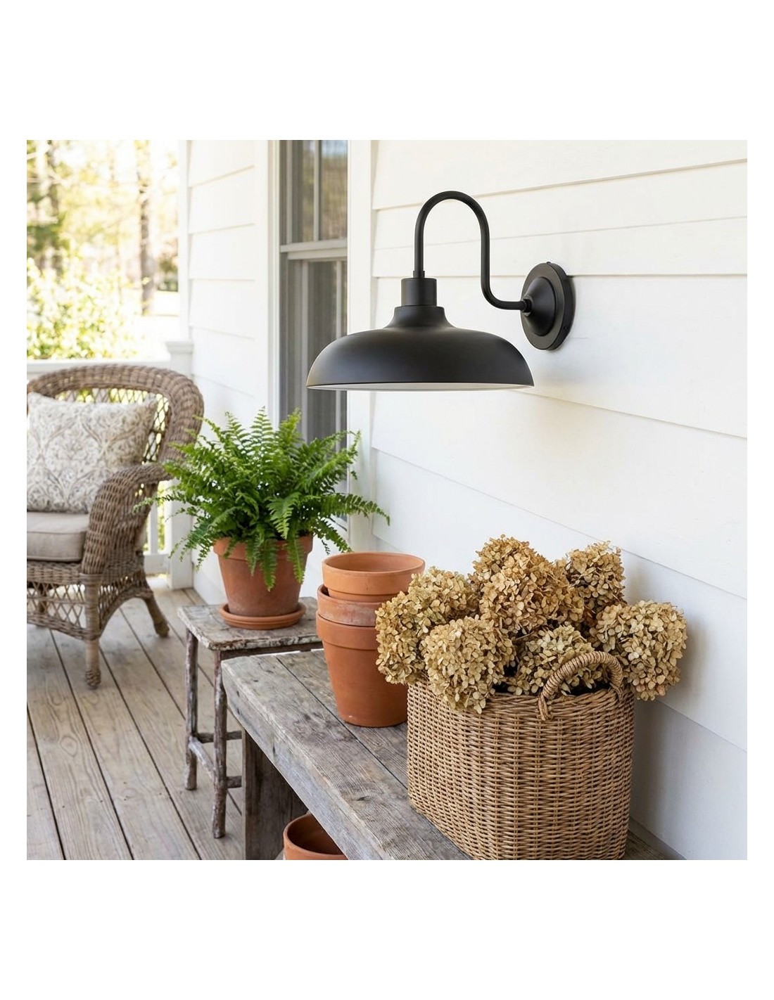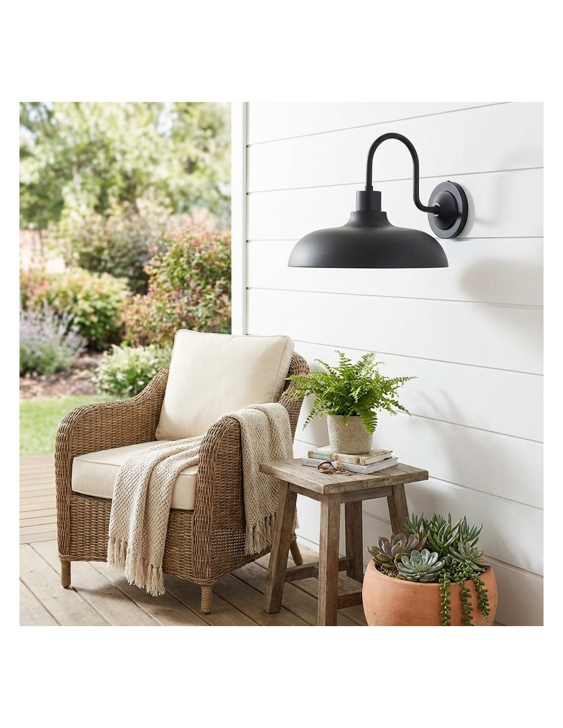 The Velara Industrial Dome Outdoor Wall Sconce features a classic curved arm and wide dome shade inspired by vintage factory lighting, casting soft, even illumination. Crafted from durable metal with weather‑resistant build, it enhances porches, patios, entryways, and garage walls.