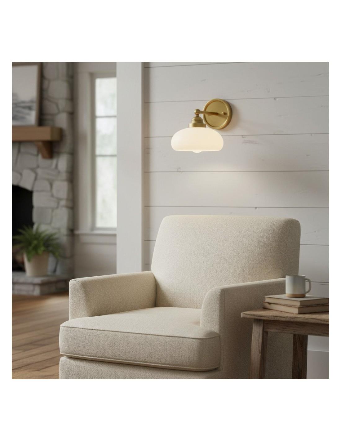 Elevate your interior with the VeloraVintage Industrial Wall Sconce, featuring a milk white glass shade and sturdy metal frame that blends retro charm with modern utility.This wall-mounted light casts a soft ambient glow that enhances bedrooms, hallways, living rooms, bathrooms or entryways with timeless style.