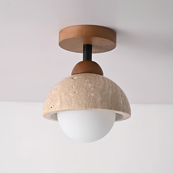 Elevate your space with the Travertine Ceiling Lamp, where timeless material meets contemporary design. Crafted from exquisite travertine stone, this lamp features a naturally porous texture, enriched with unique speckles that add a tactile dimension to its visual appeal. As light filters through the frosted diffuser, it casts a warm, inviting glow, highlighting the unique patterns of the travertine and creating a serene ambiance.