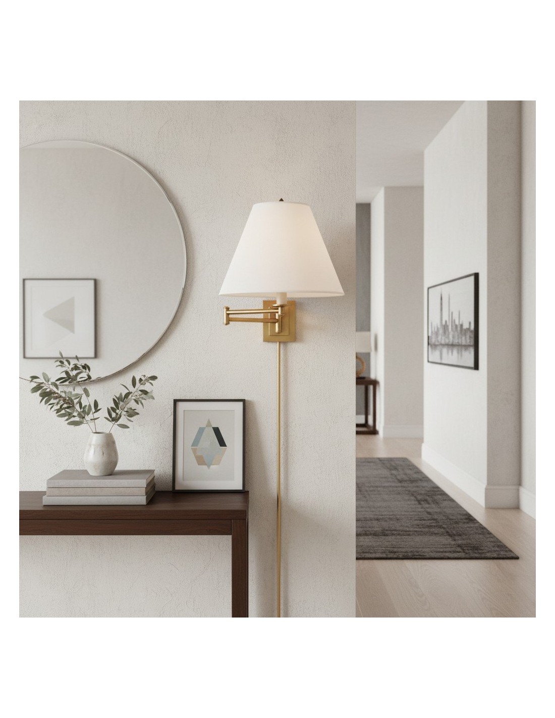 La lámpara de pared Arcuma con brazo giratorio cuenta con un brazo metálico ajustable y una articulación giratoria suave, que proporciona una iluminación omnidireccional de 360° y una iluminación localizada precisa. Ideal para mesitas de noche, rincones de lectura y otros espacios interiores.