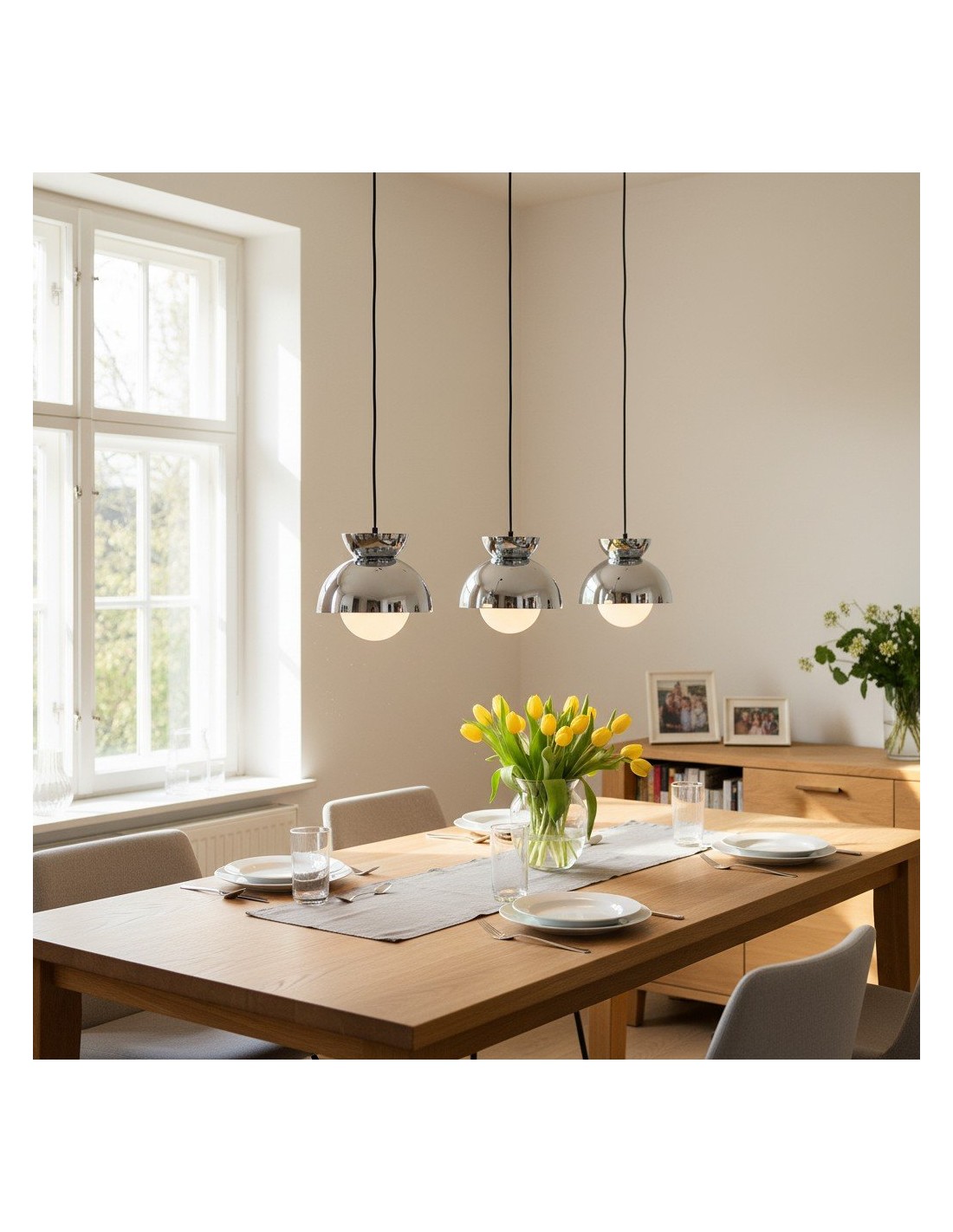 Esta lámpara colgante presenta una refinada silueta multicúpula que aporta una presencia escultural y una suave iluminación ambiental a cualquier espacio. Su forma limpia y moderna se adapta a la perfección a diversos interiores, lo que la hace ideal para comedores, dormitorios, pasillos o acogedores rincones de lectura.