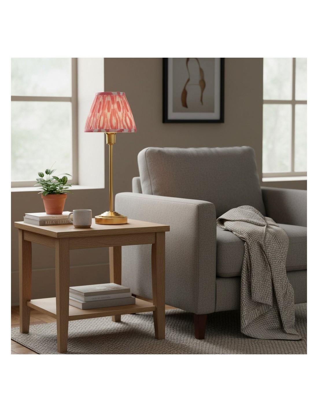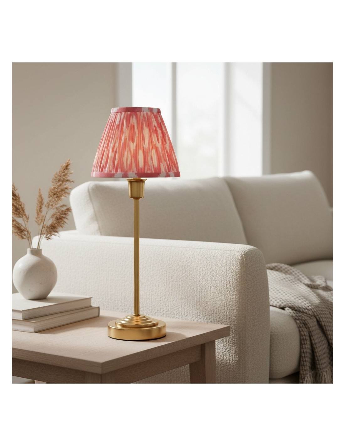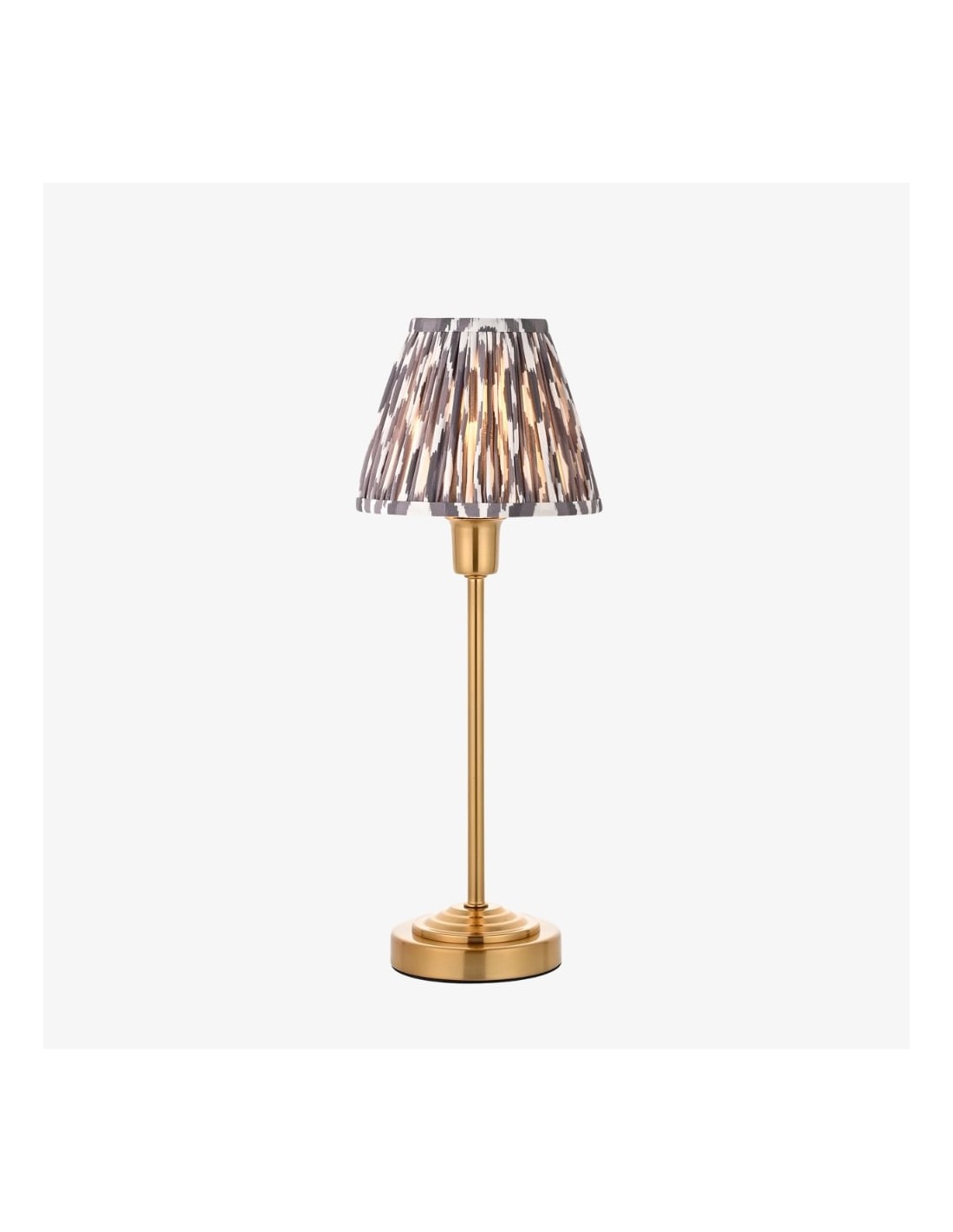 La lámpara de mesa Bronzuno combina una esbelta base metálica con una pantalla de tela a medida de 16 cm para una iluminación refinada y texturizada. Disponible en múltiples acabados metálicos y colores de pantalla, combina elementos contemporáneos y bohemios para ofrecer una iluminación cálida y ambiental, ideal para mesitas de noche, salones, pasillos y despachos en casa.