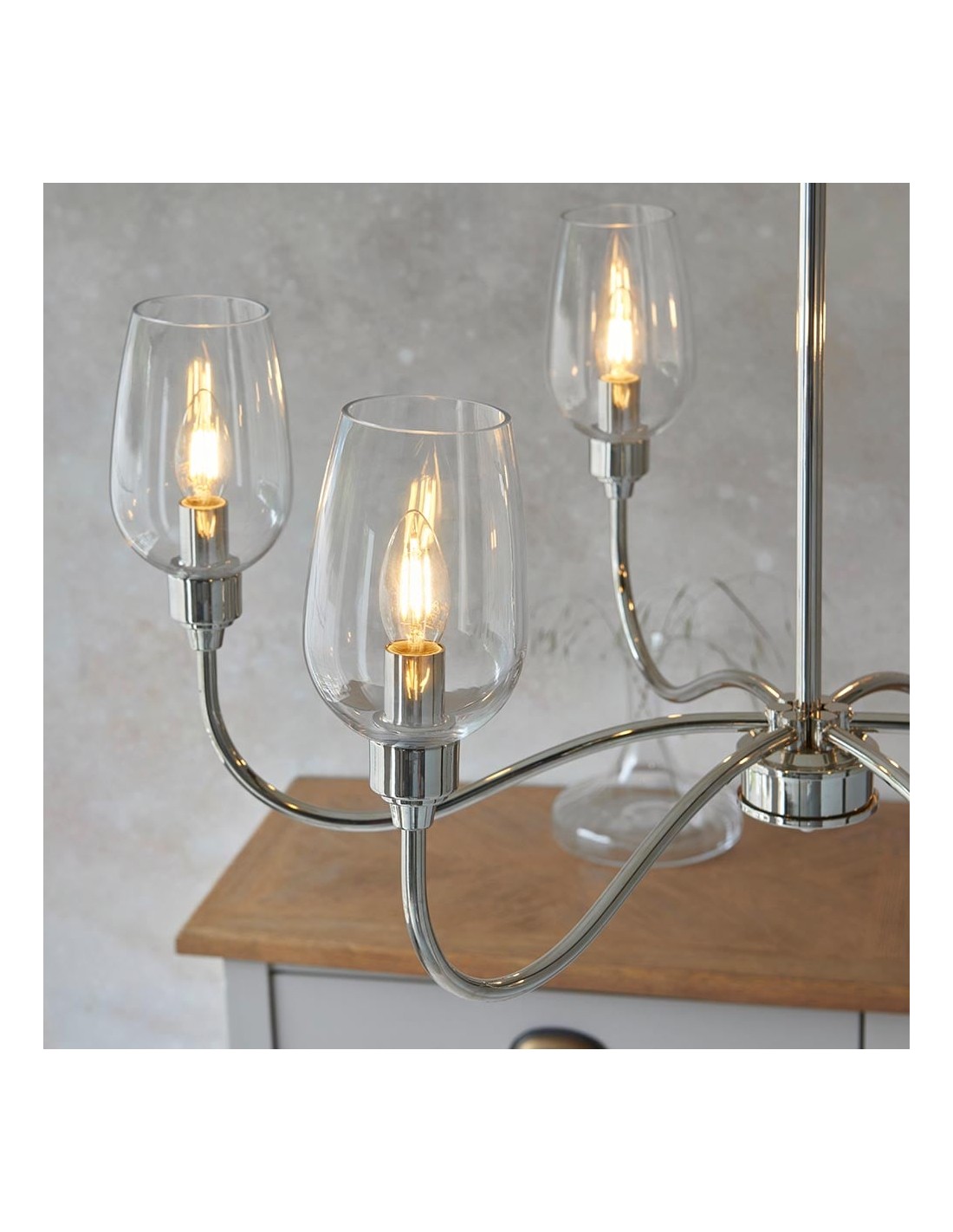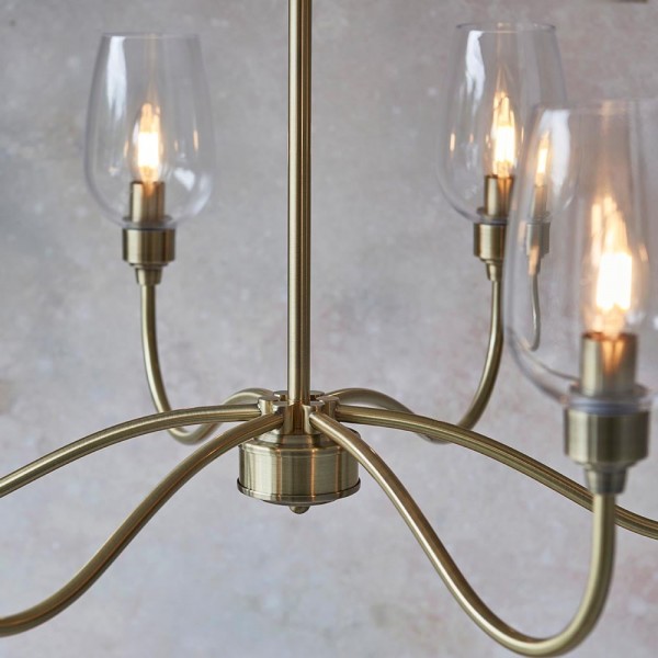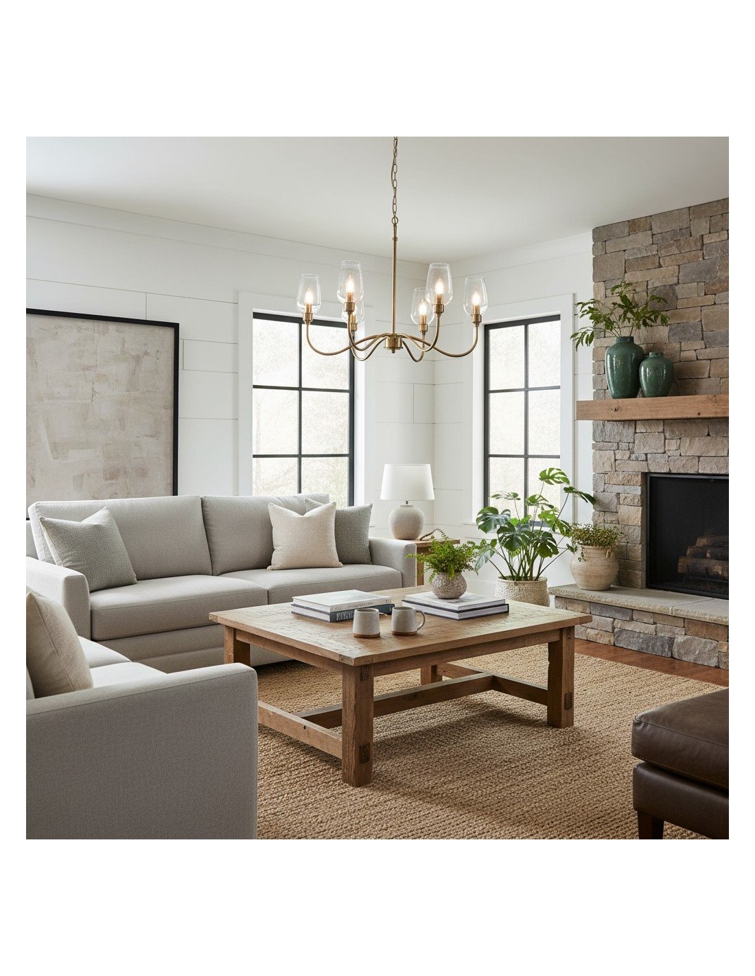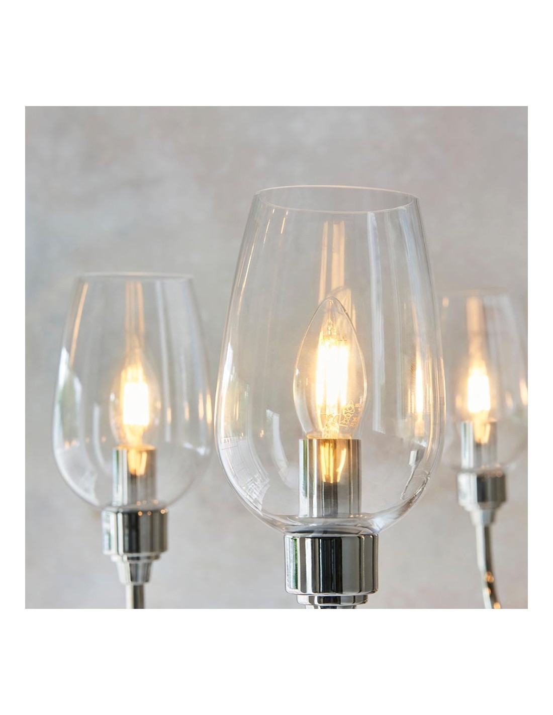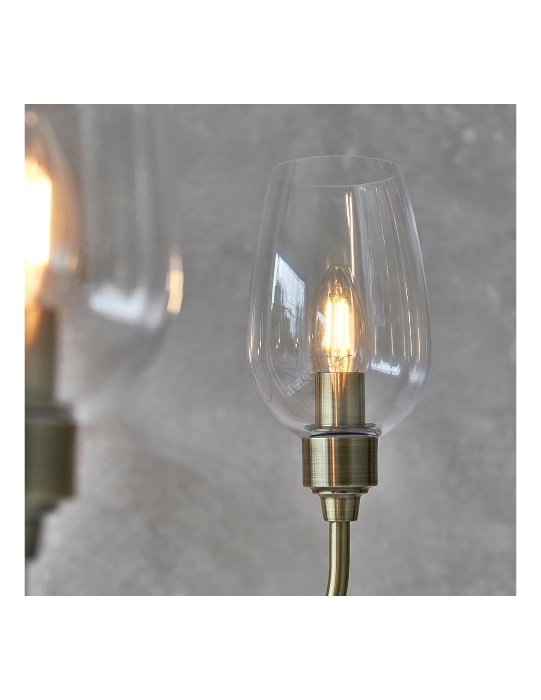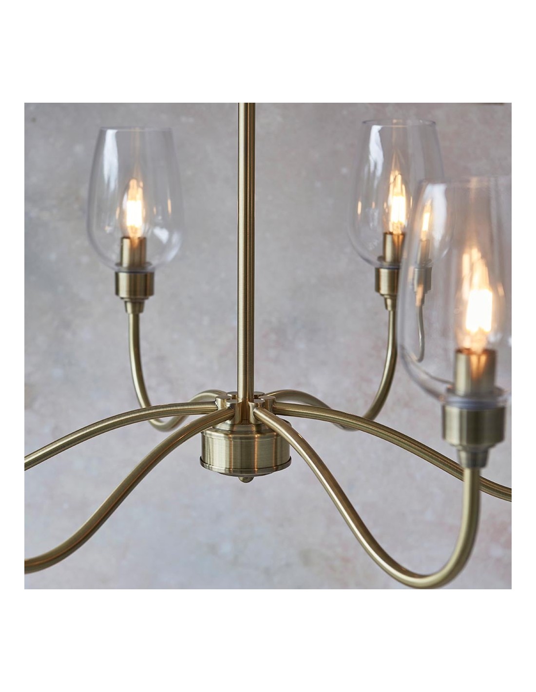 Realza tu espacio con esta impresionante lámpara colgante de 6 luces que combina la elegancia atemporal del Art Déco con la funcionalidad moderna. Con pantallas de vidrio soplado transparente y un marco de metal finamente chapado, esta lámpara ofrece un equilibrio visual refinado y una sensación de lujo.