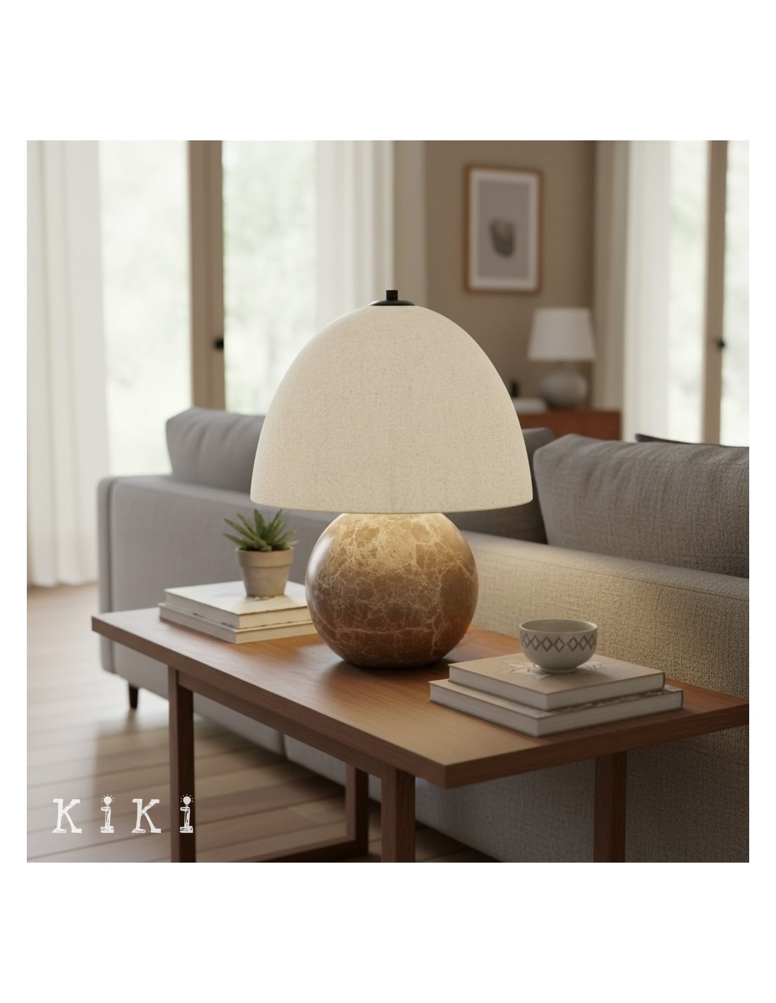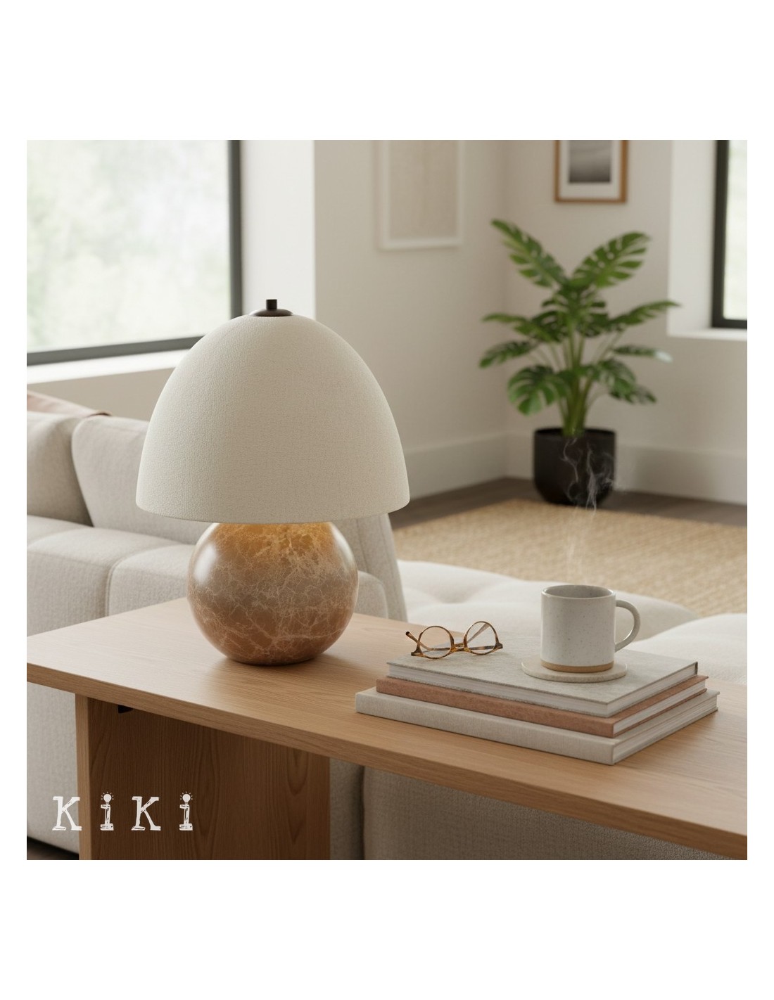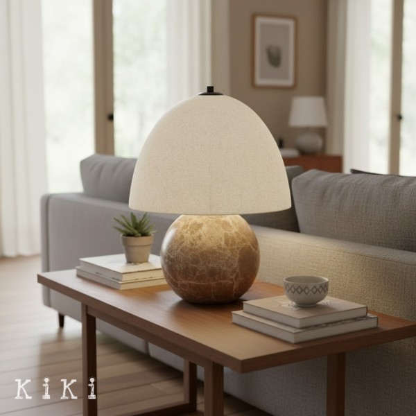 La lámpara de mesa es una impactante pieza central que fusiona magistralmente una geometría audaz con texturas relajantes. Esta luminaria destaca por su base esférica escultural, una forma artística que proporciona una estabilidad visual y física excepcional a su espacio.