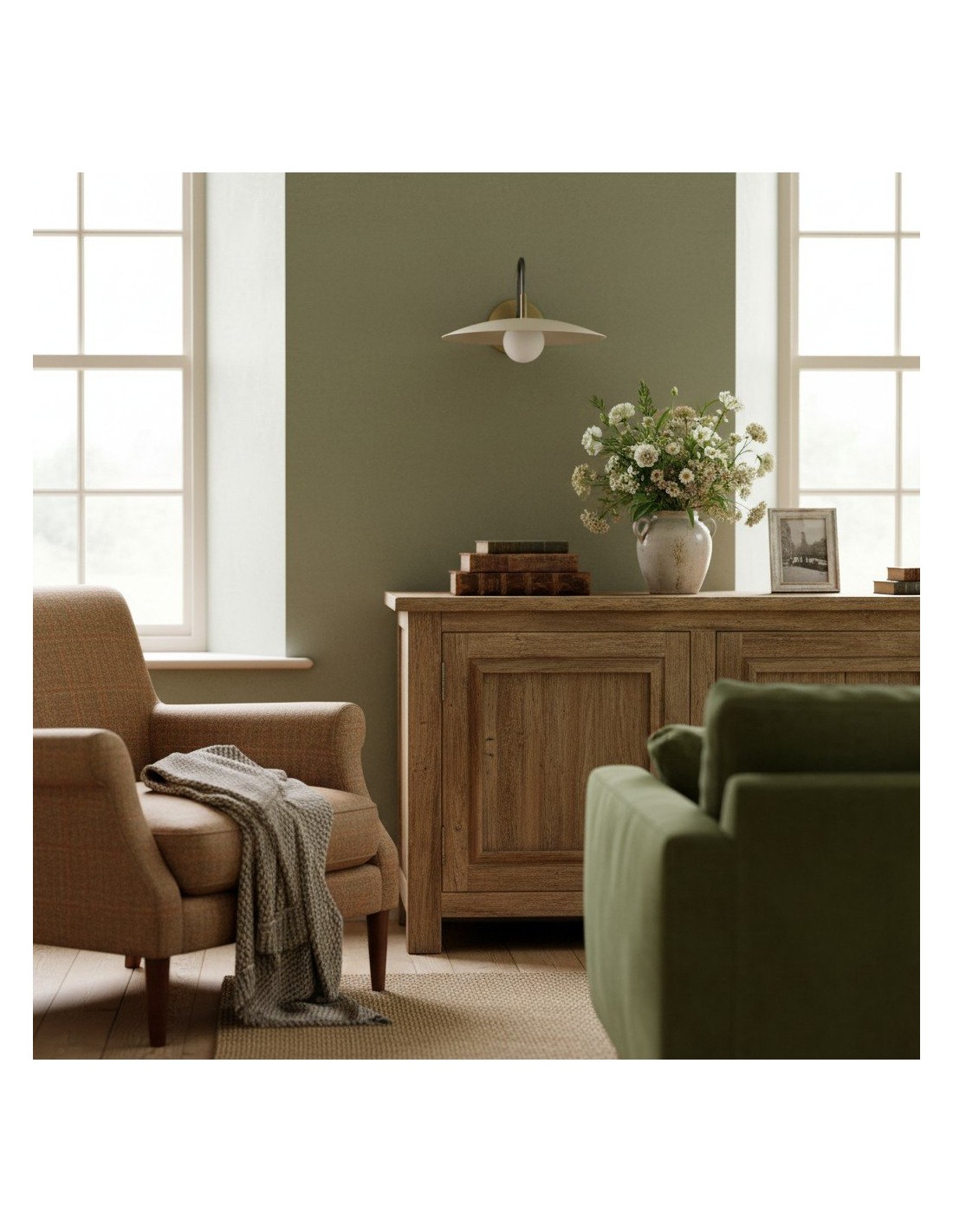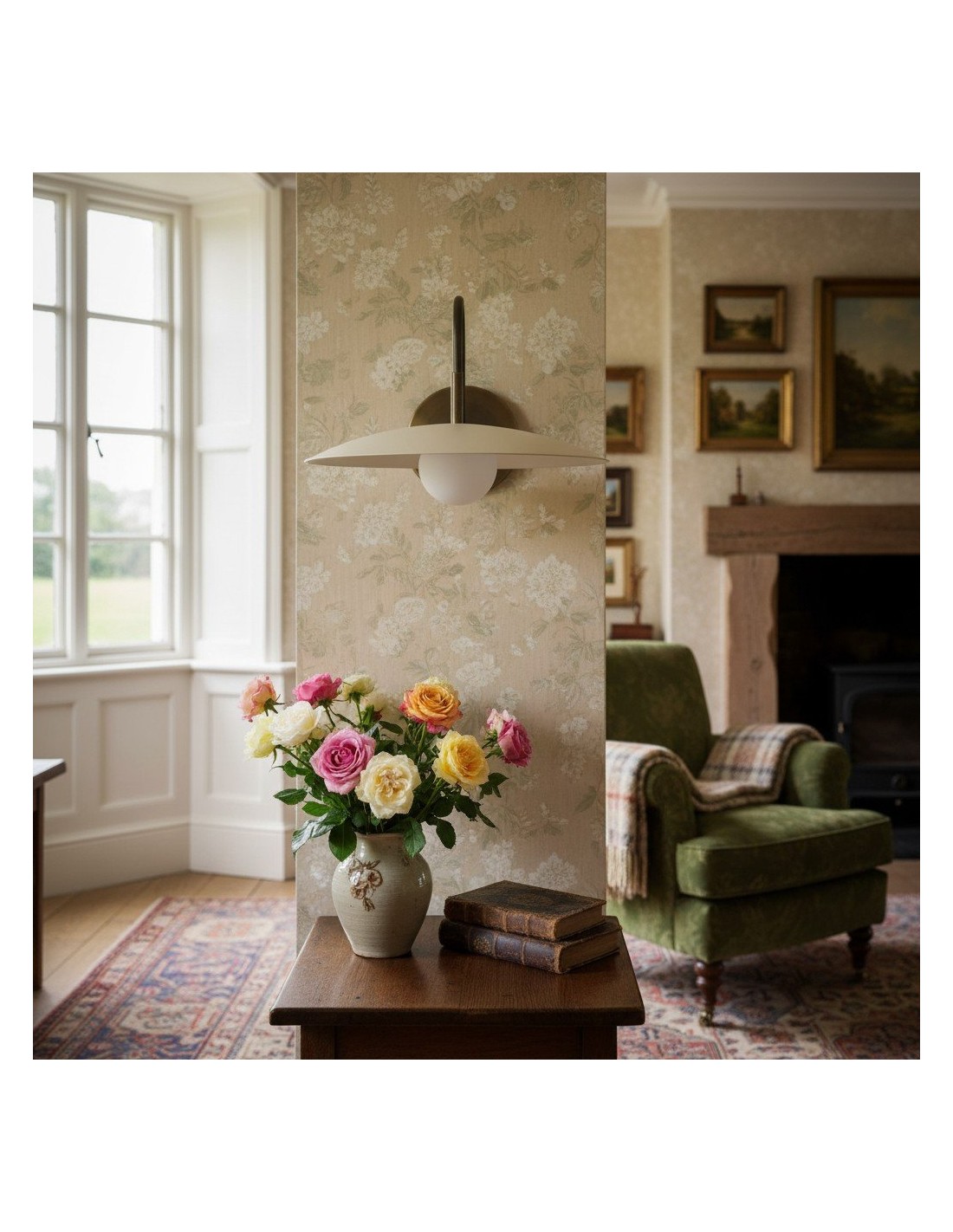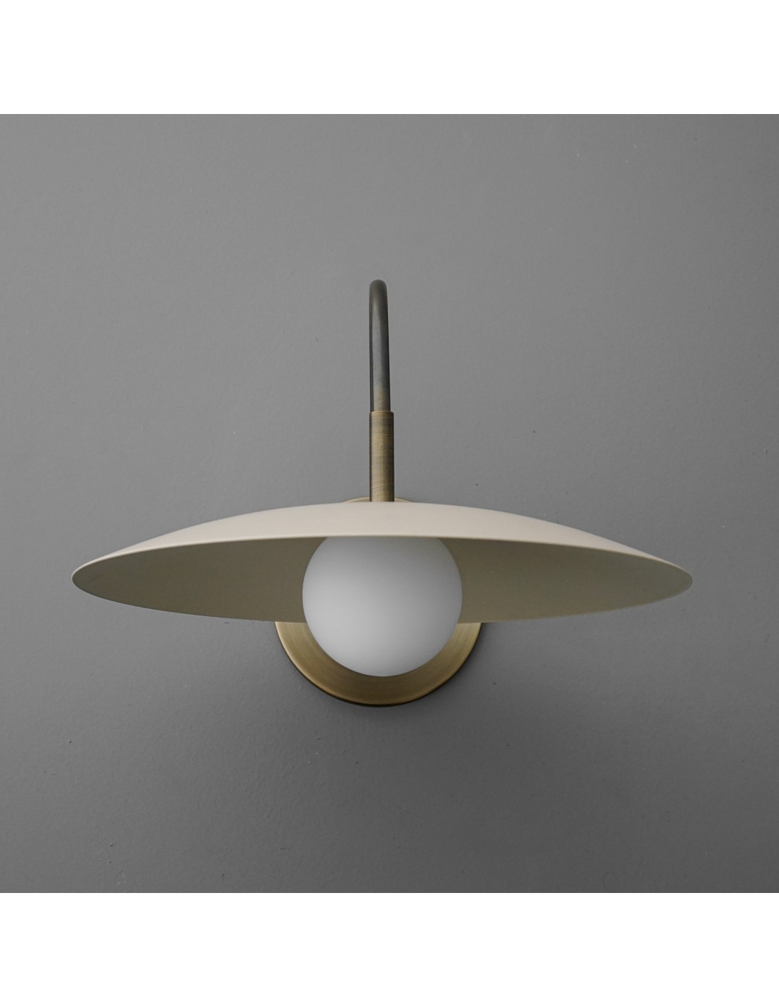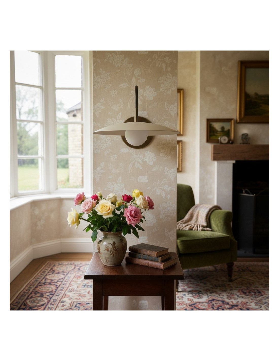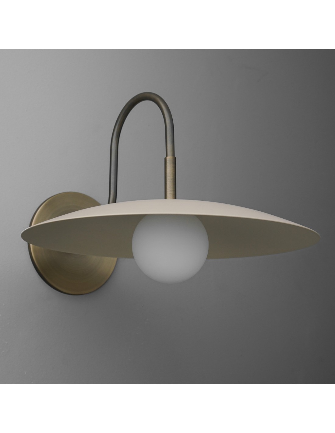 Realza tus paredes con este aplique escultural que combina minimalismo moderno con un diseño elegante. Un esbelto brazo de latón antiguo se extiende desde una placa trasera redonda para sostener un amplio disco de metal color crema mate. El globo esmerilado emite una suave luz ambiental, perfecta para flanquear espejos, iluminar pasillos o crear cálidos detalles en la mesita de noche. Transforma cualquier espacio en un refugio refinado.