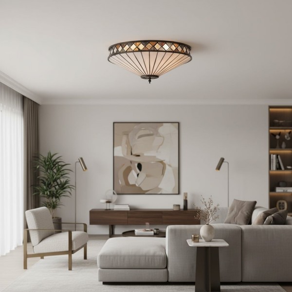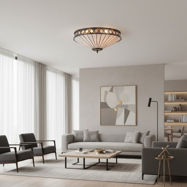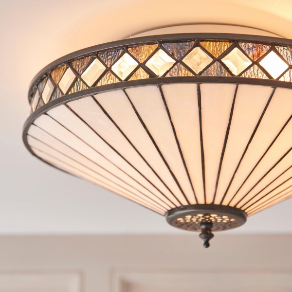 Lámpara de techo Fargo Tiffany con detalles artísticos de cristal para sala de estar KL1579