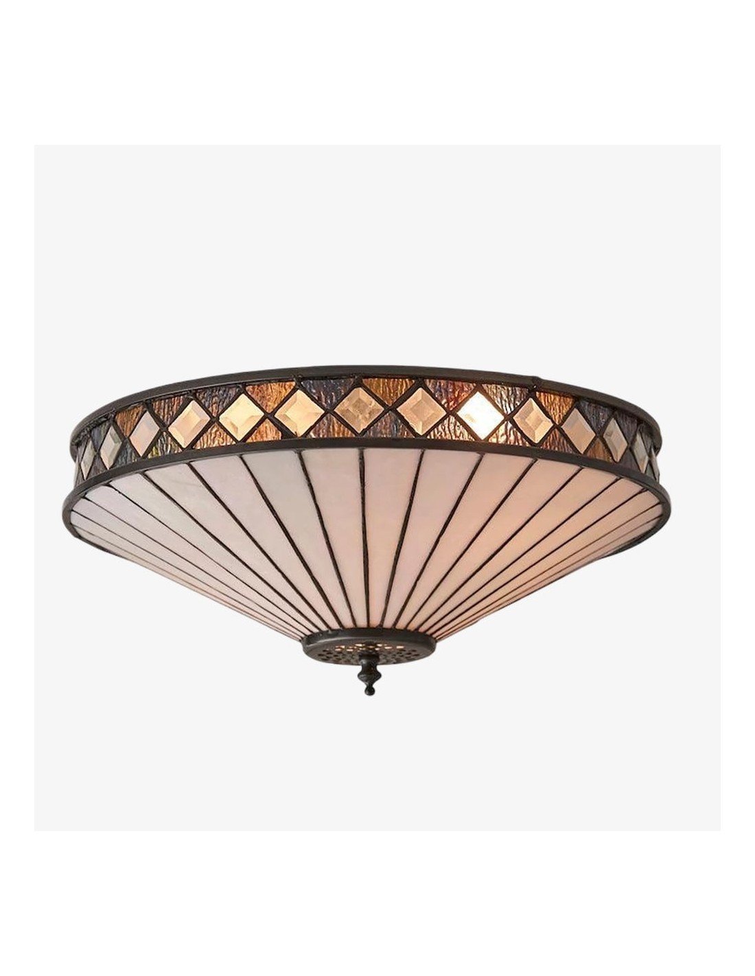 Lámpara de techo Fargo Tiffany con detalles artísticos de cristal para sala de estar KL1579