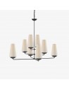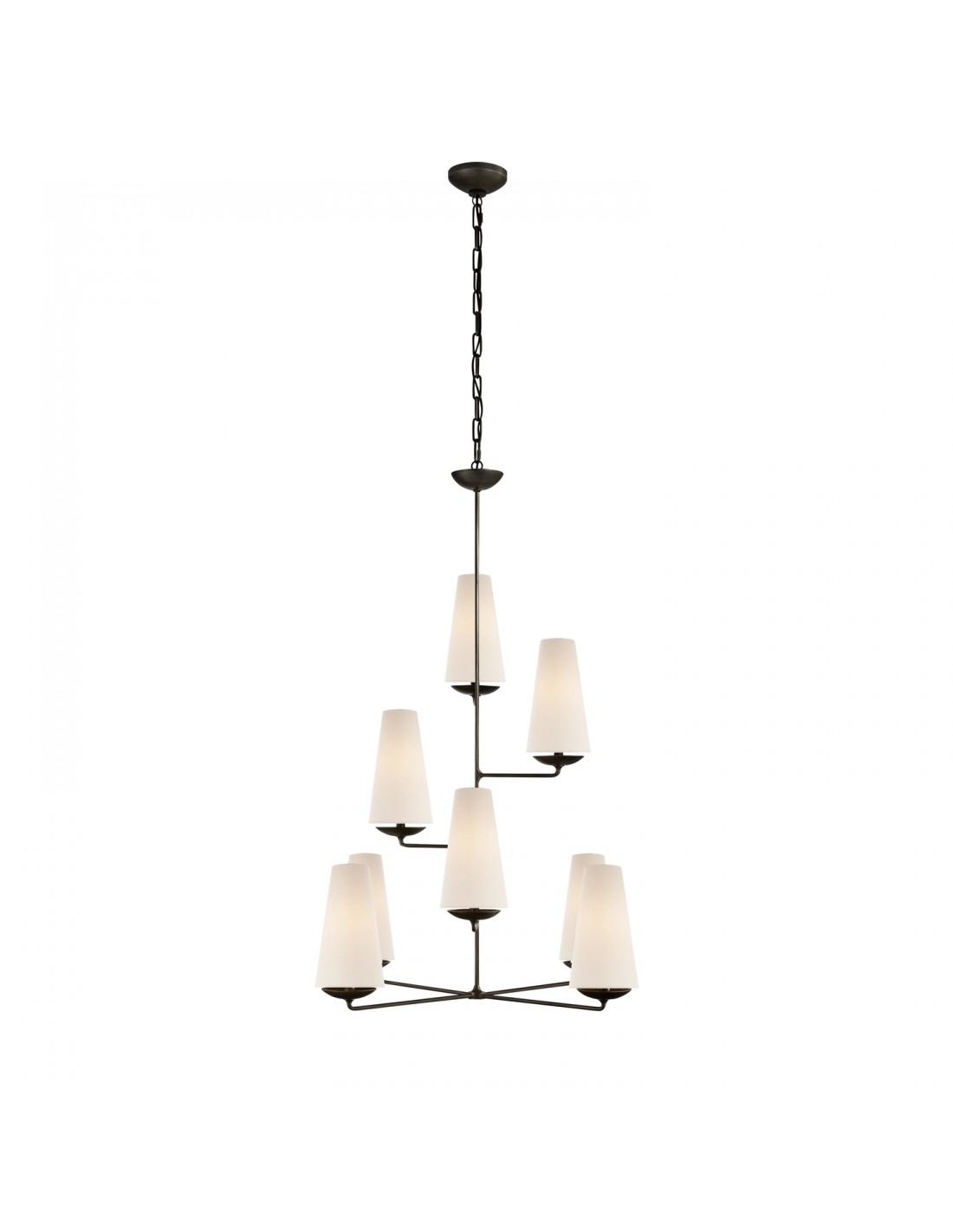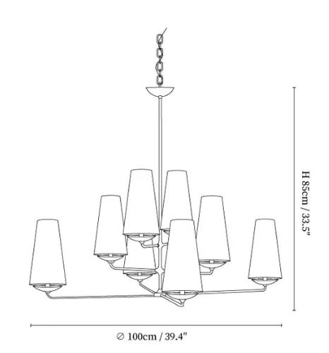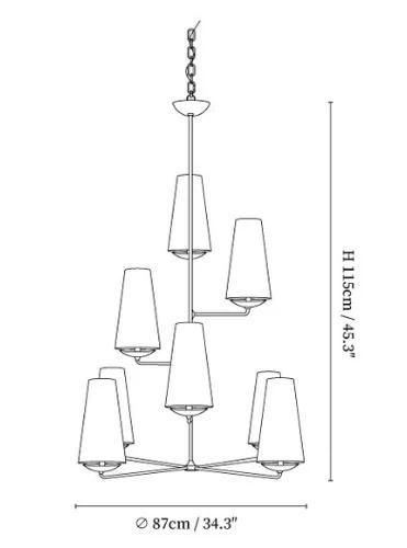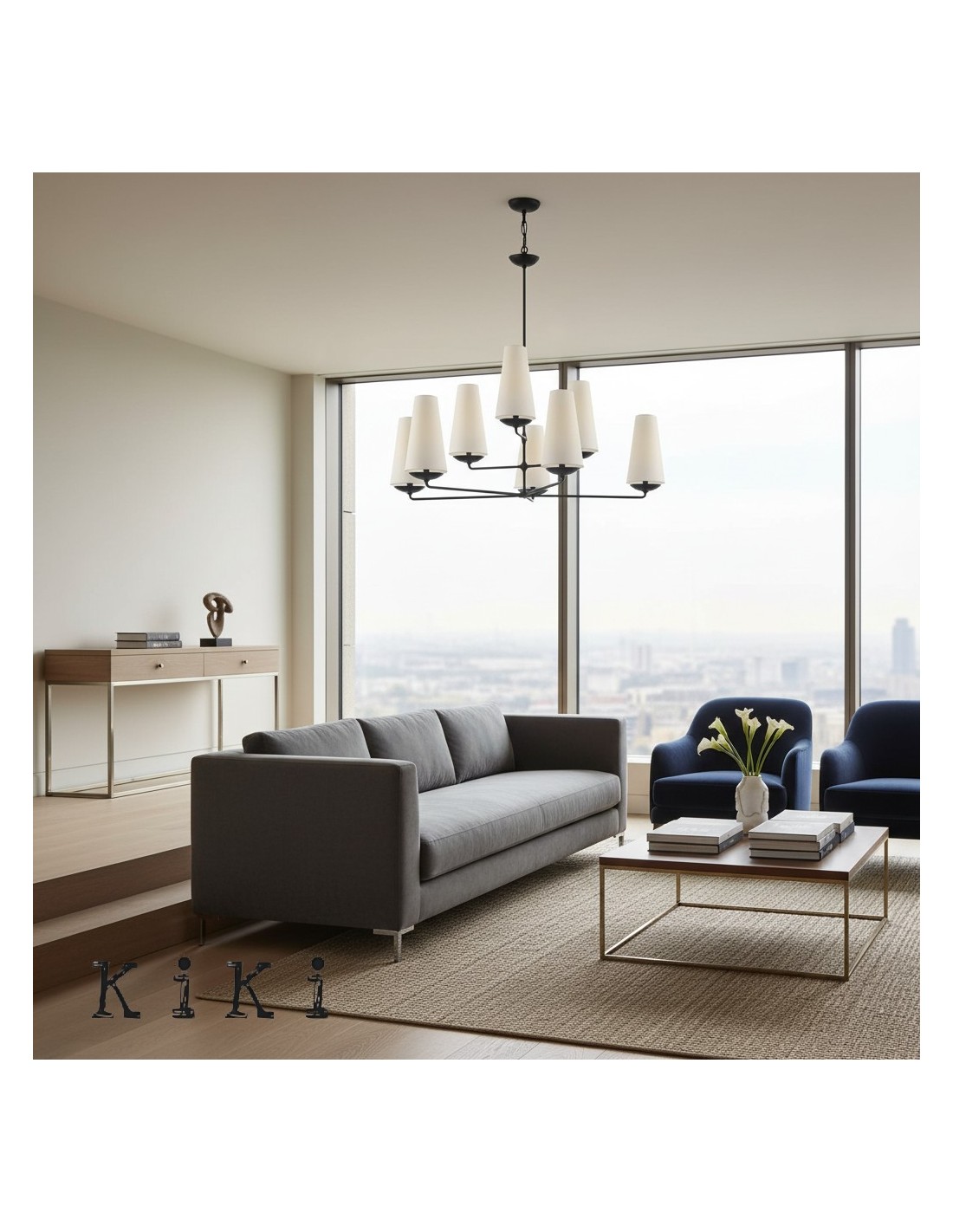 La lámpara de araña vertical de metal personifica la precisión arquitectónica y la modernidad refinada. Diseñada con una llamativa disposición de varillas verticales y horizontales, crea una sensación de equilibrio y simetría que transforma cualquier interior en una muestra de diseño exquisito. Cada cabezal de luz está posicionado para distribuir la iluminación de manera uniforme, aportando profundidad y sofisticación a amplios salones, comedores o vestíbulos con techos altos.