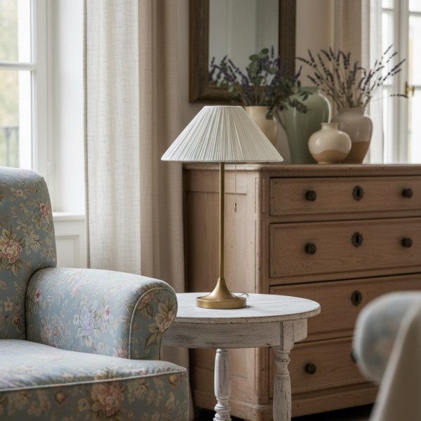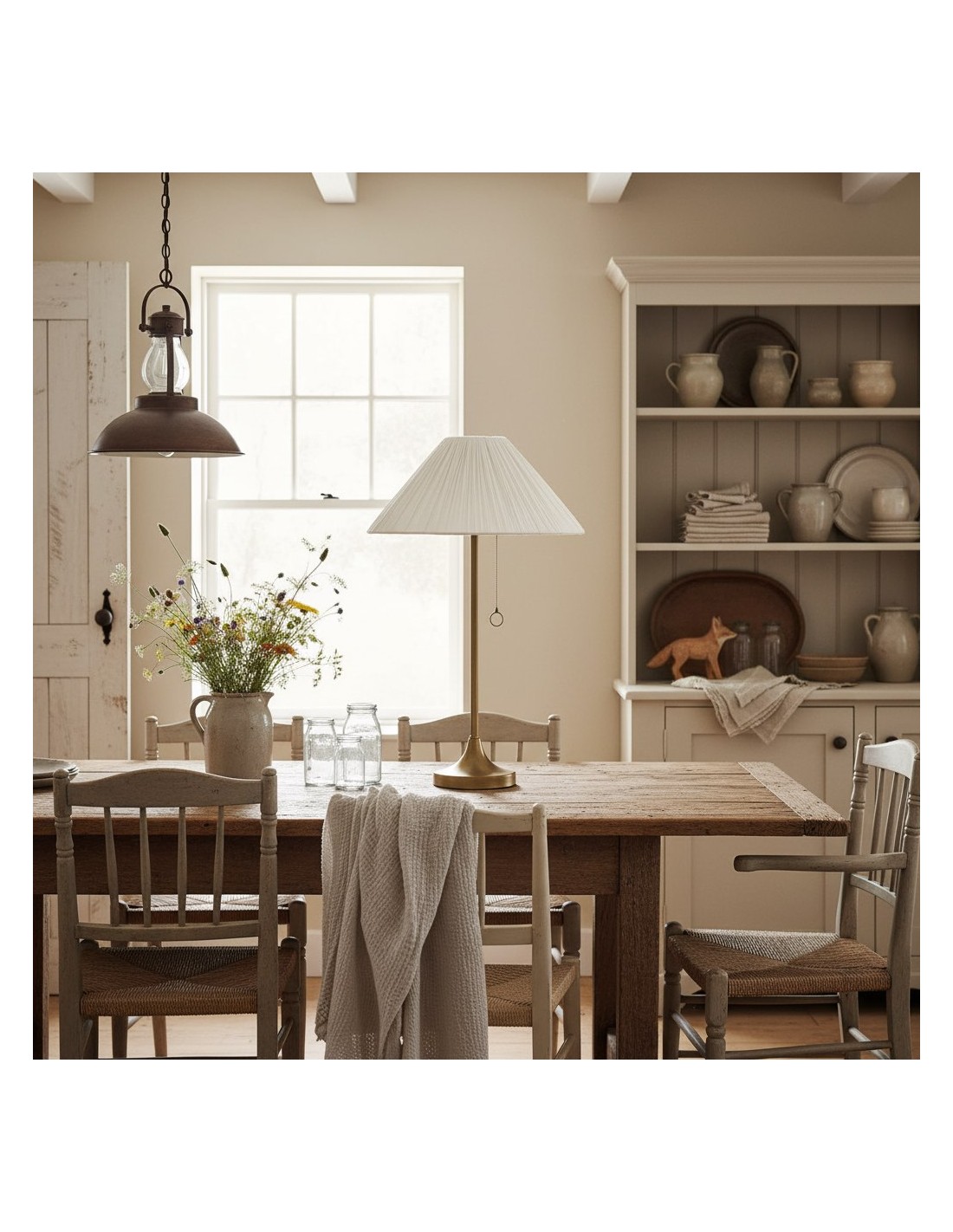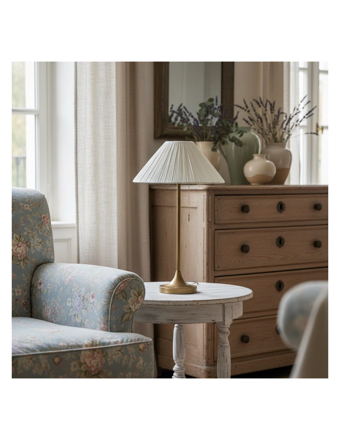 Esta lámpara de mesa festoneada aporta un refinamiento escultural y una iluminación suave a tu espacio. Su pantalla de lino texturizado se extiende en cascada en suaves pliegues festoneados y reposa sobre una elegante base de metal con acabados como latón envejecido, negro mate o níquel cepillado. Ideal como lámpara de noche, consola decorativa para la sala de estar o lámpara de trabajo en la oficina.