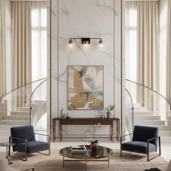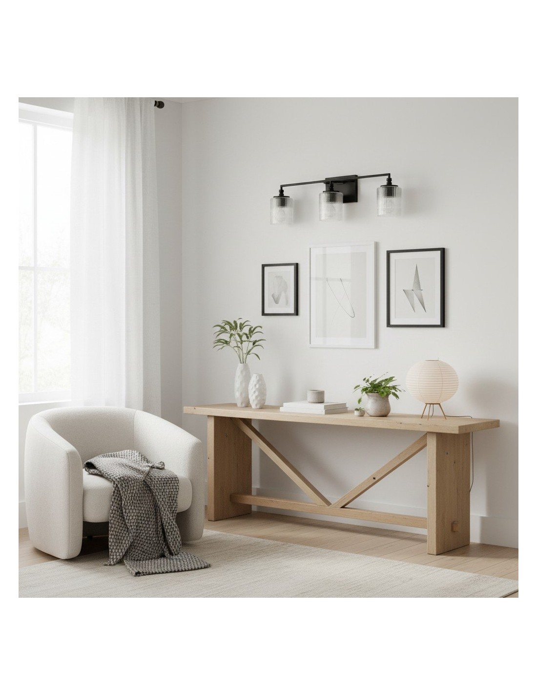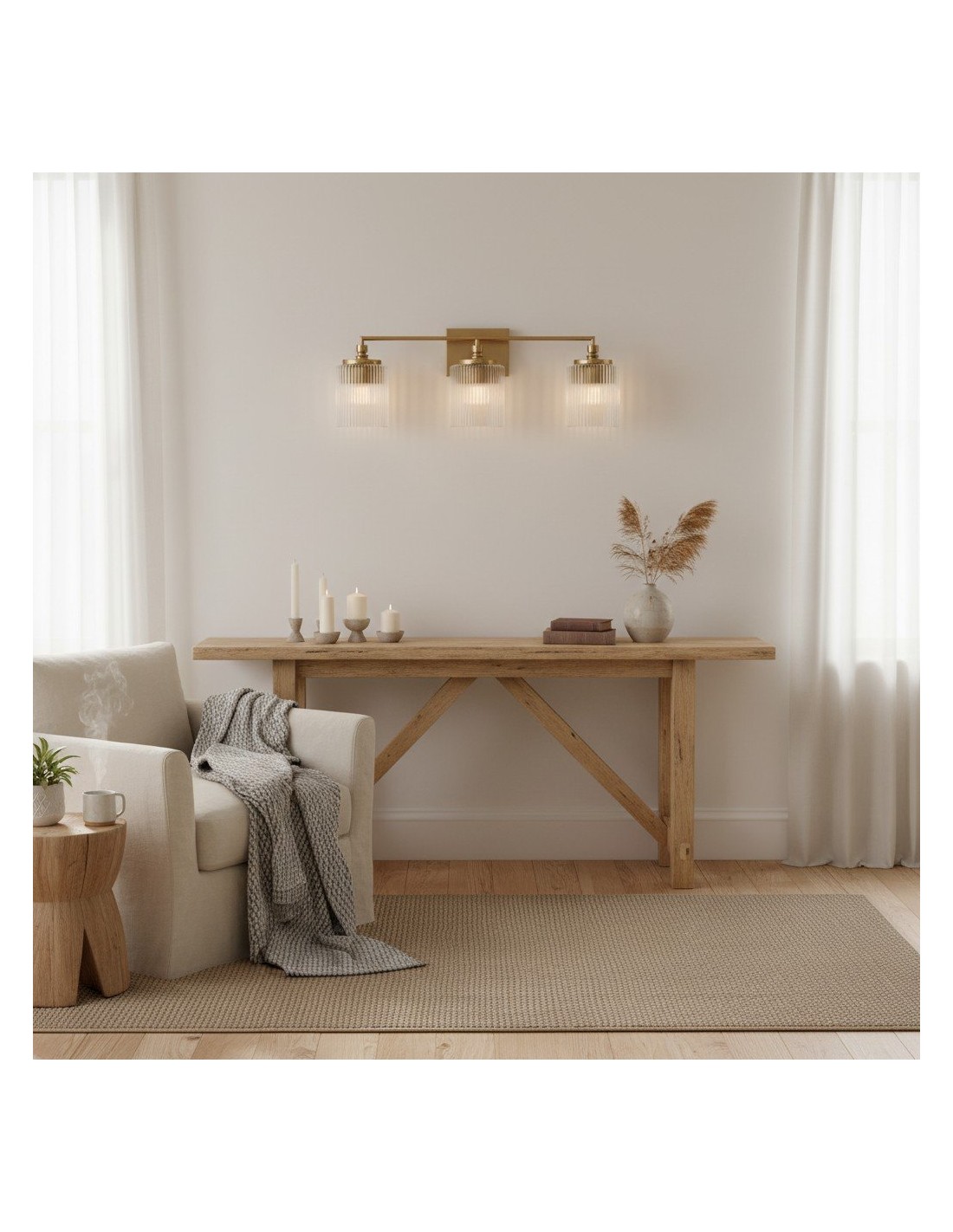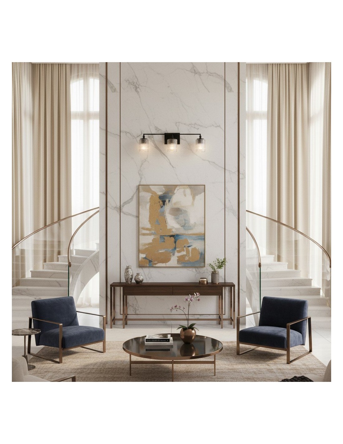 Realza tu espacio con la lámpara de tocador regulable de 3 luces. Su elegante marco de metal y sus elegantes pantallas de cristal crean una estética sofisticada y moderna, perfecta para una variedad de estilos de interior. La función regulable te permite ajustar la intensidad de la iluminación, lo que la hace ideal para baños, dormitorios o cualquier espacio que requiera una iluminación versátil y elegante. Su diseño limpio y minimalista complementa ambientes contemporáneos, aportando funcionalidad y belleza.