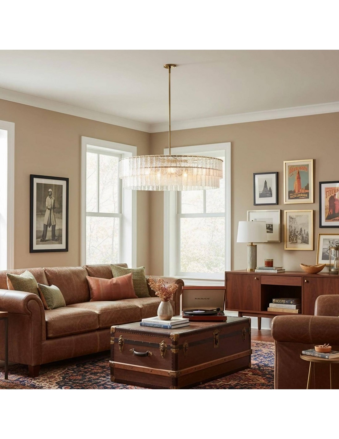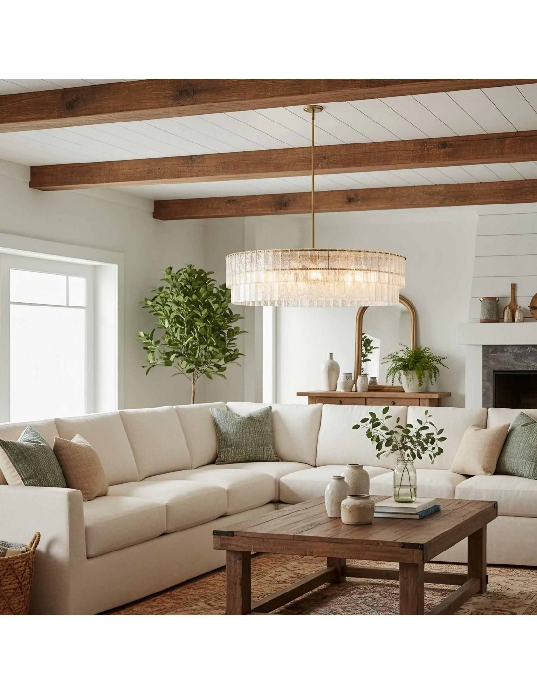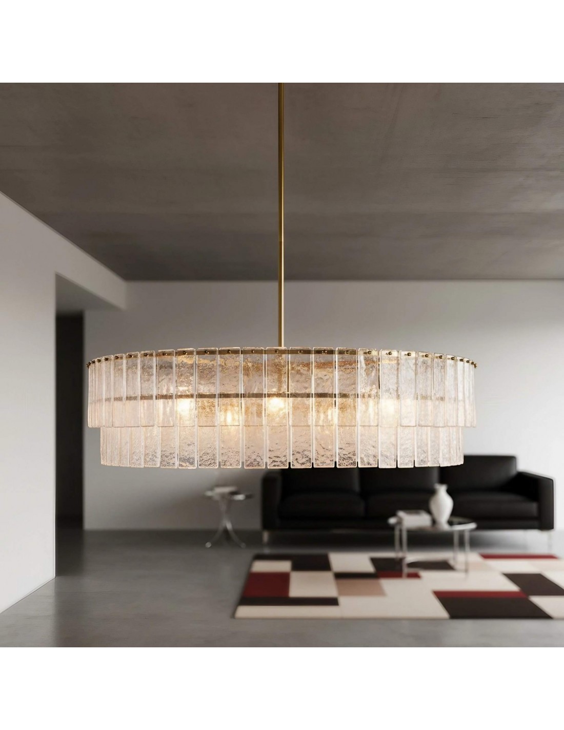 La lámpara de araña Lumvey exhibe lujo moderno con un toque Art Déco. Su diseño redondo y escalonado presenta prismas de vidrio fundidos individualmente que refractan la luz con un efecto brillante similar al agua. Con un refinado marco de metal, crea una impactante declaración en entradas, comedores y salas de estar.