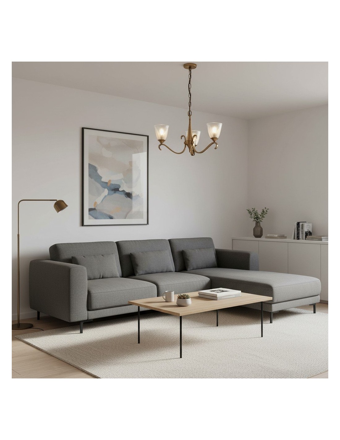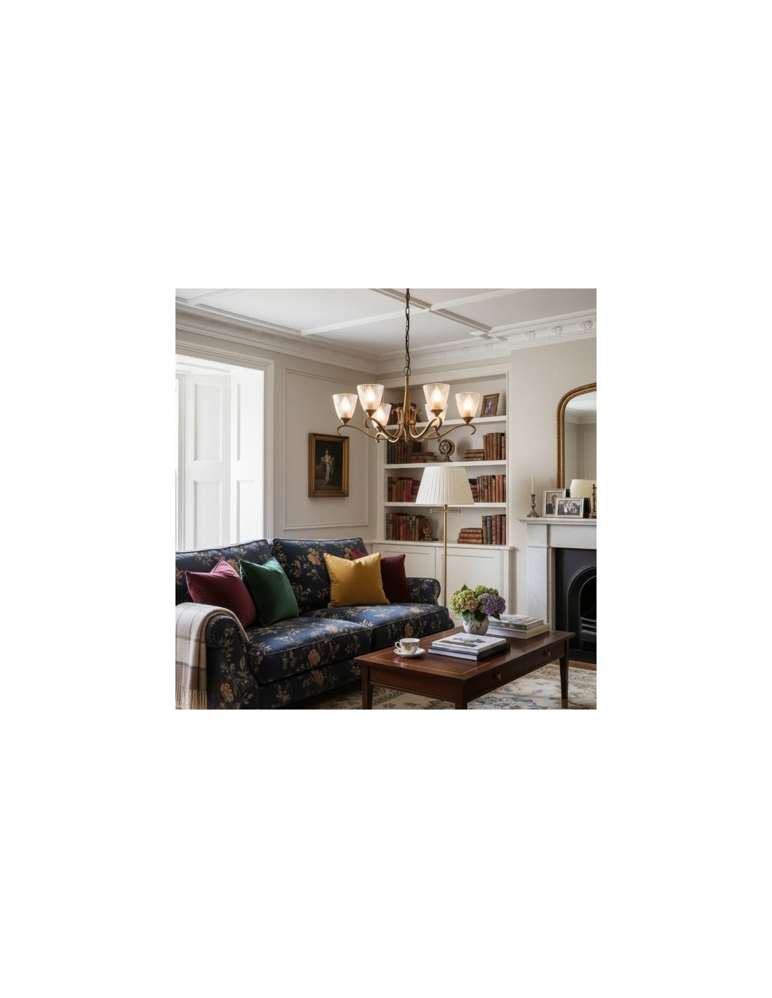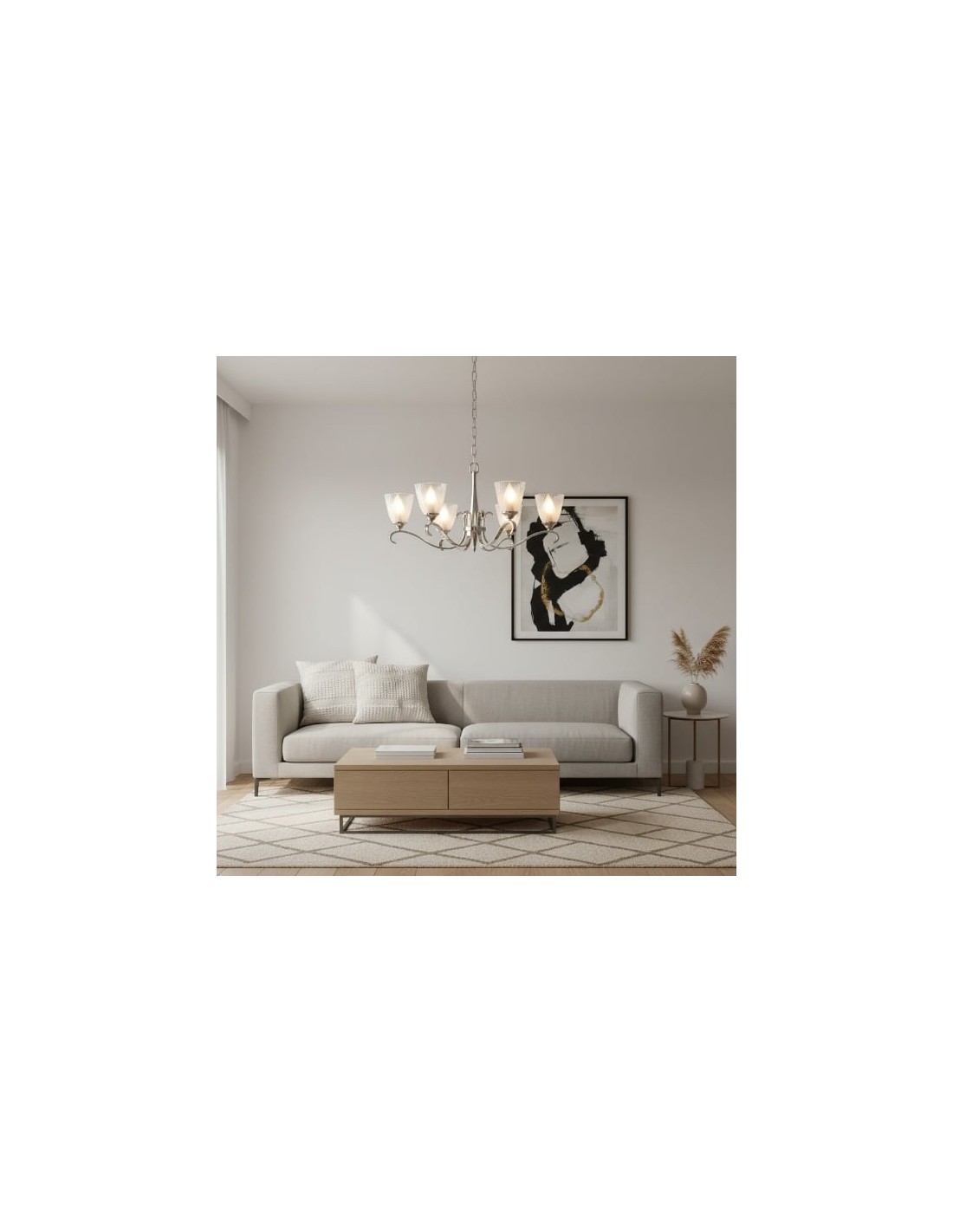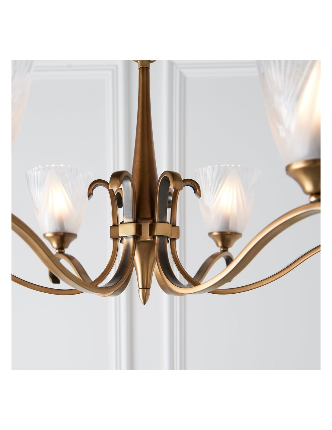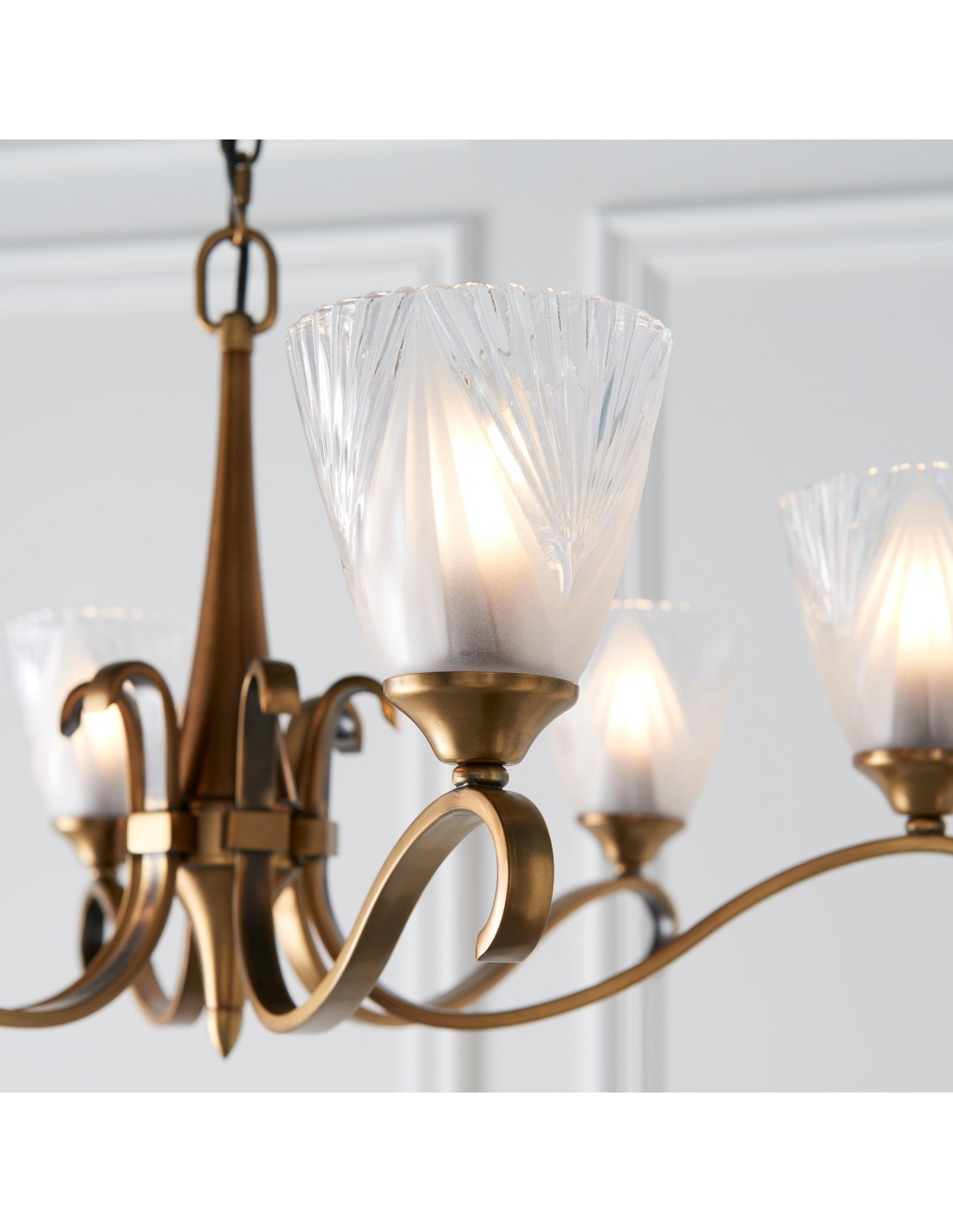 Con su acabado en latón y detalles de cristal, la lámpara de araña Lunetal realza cualquier espacio. Esta versátil pieza se adapta tanto a decoraciones tradicionales como contemporáneas, tanto en salas de estar como en comedores.