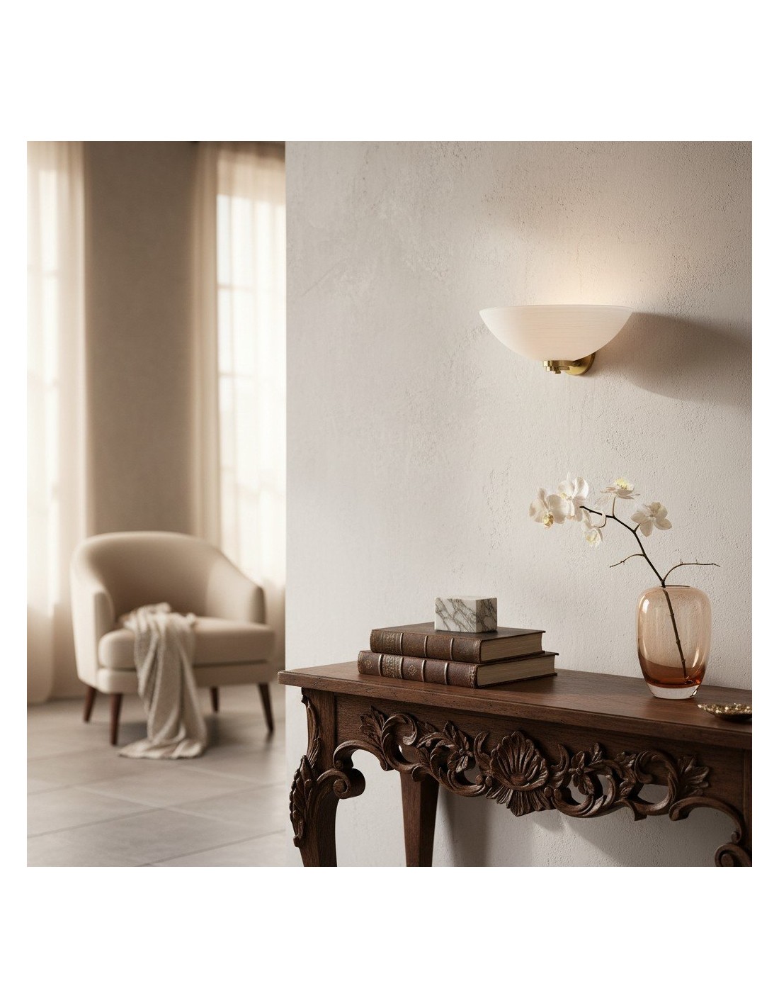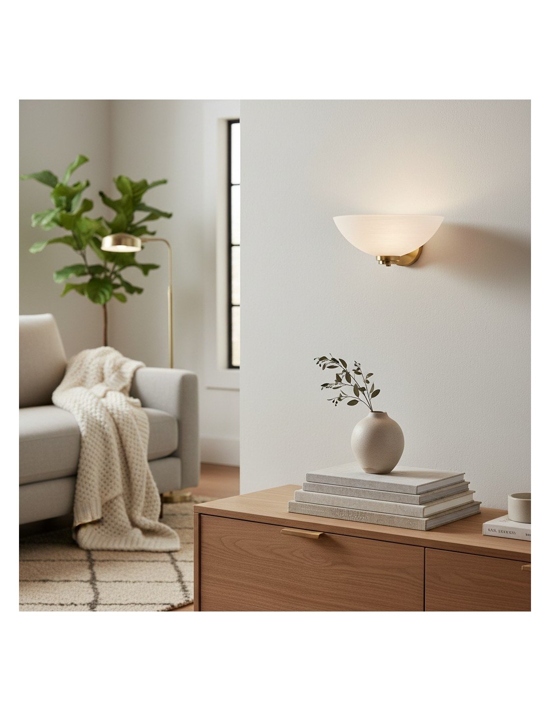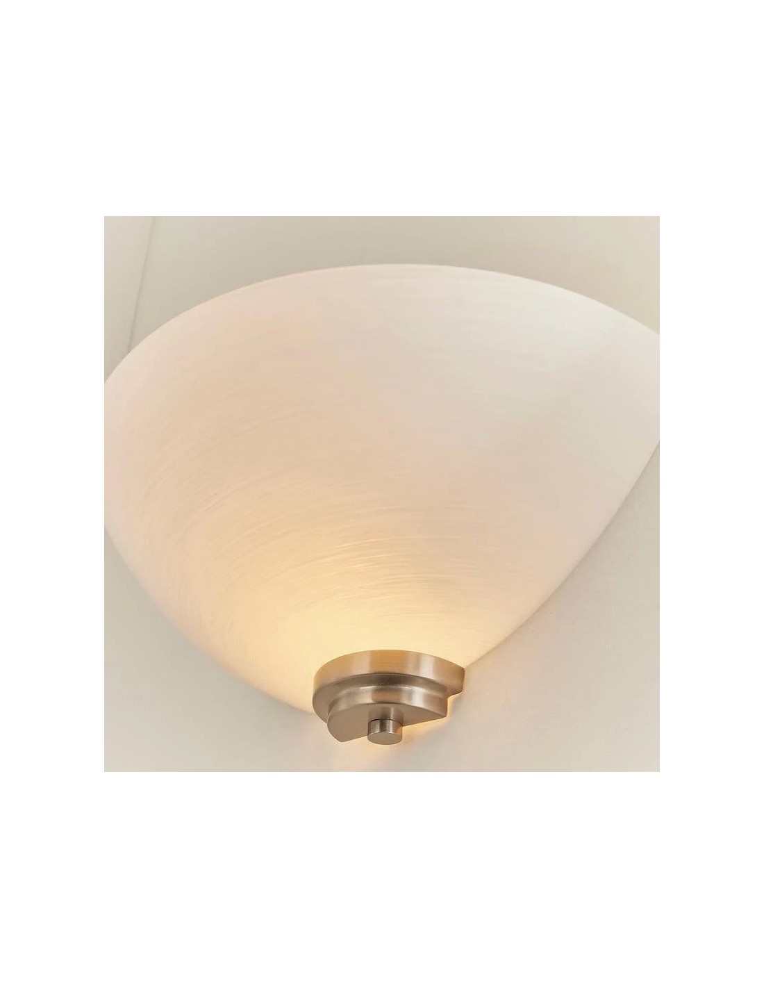 La lámpara de pared Lunetal presenta una silueta de inspiración Art Déco con una pantalla vidriada suavemente acanalada y una elegante placa trasera. Diseñada para proyectar luz ambiental ascendente, es ideal para salas de estar, pasillos, dormitorios y comedores.