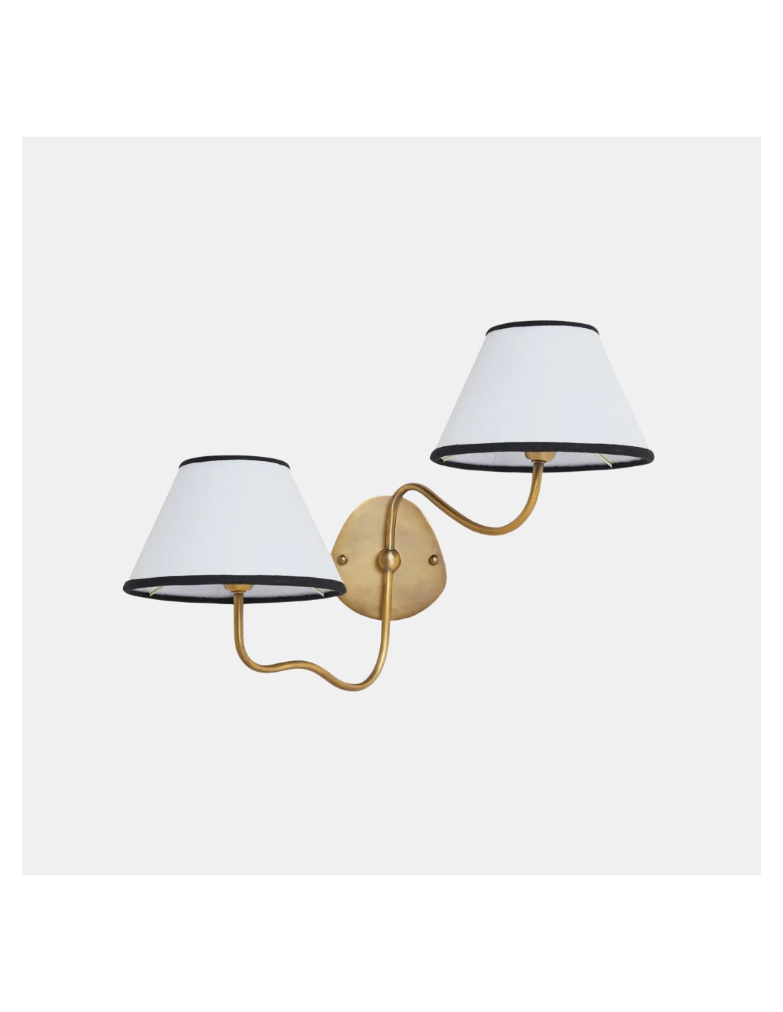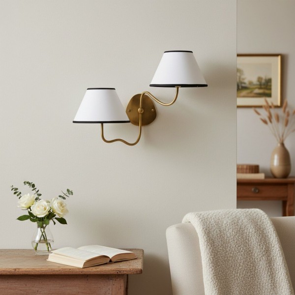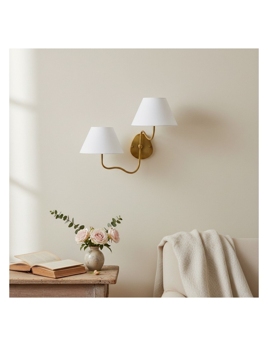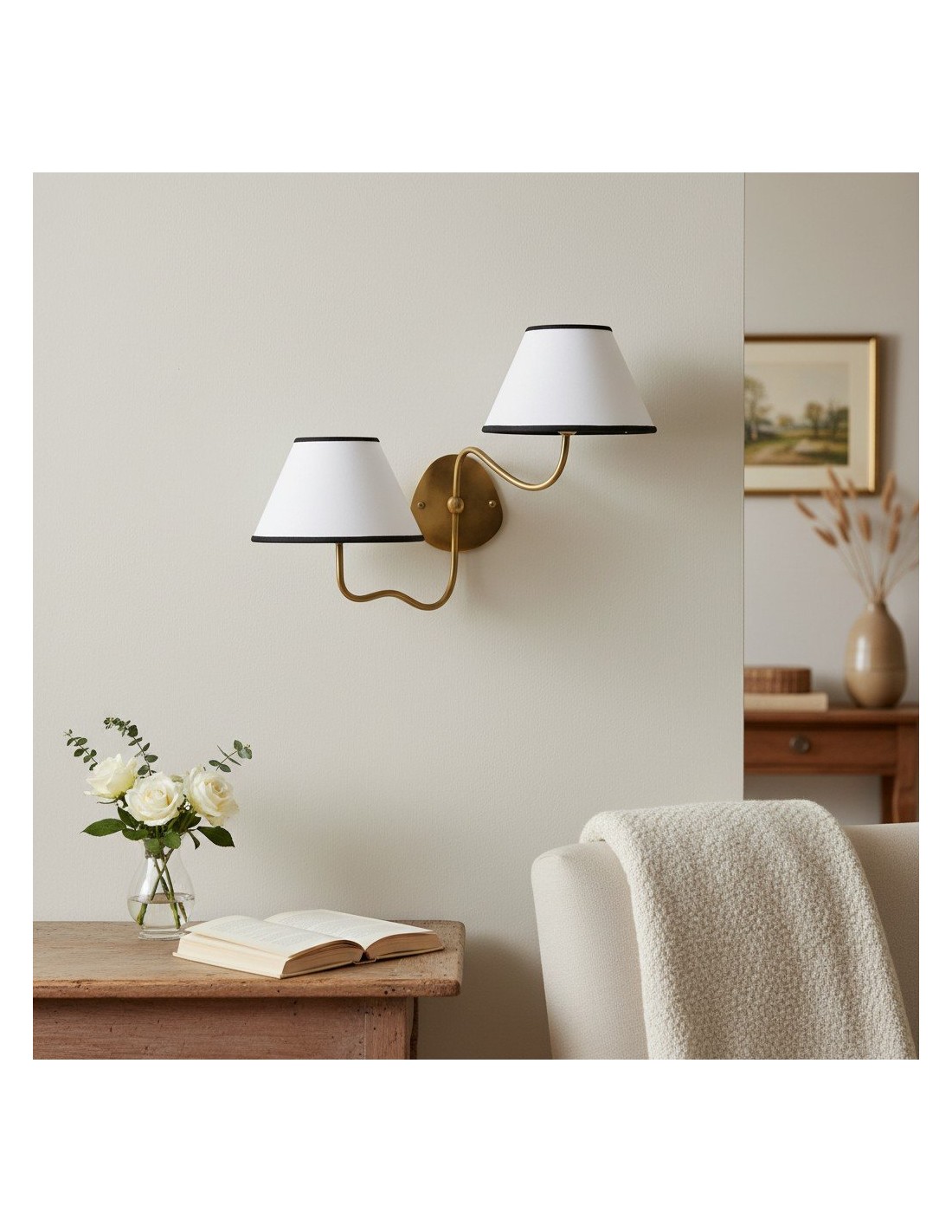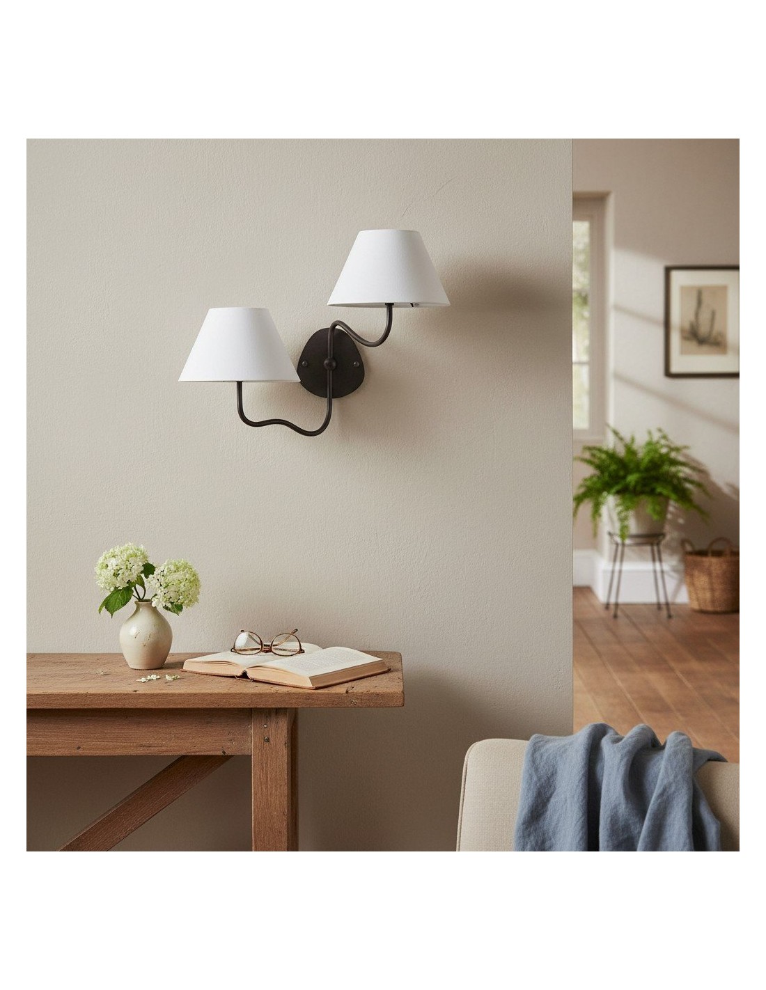 Esta moderna lámpara de pared de tela presenta un elegante diseño de doble brazo con una refinada pantalla de lino. Perfecta como lámpara de pared con pantalla de tela en dormitorios o pasillos, también funciona a la perfección como aplique doble para salas de estar. Combinando elegancia y funcionalidad, crea una luz suave y acogedora que realza cualquier interior minimalista.