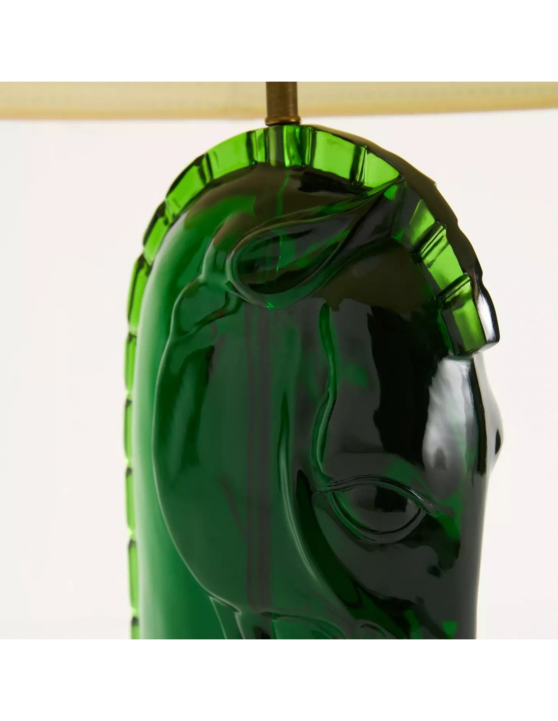 Esta escultural lámpara de mesa luce una base estilizada en forma de cabeza de caballo de resina translúcida que brilla cálidamente al encenderse. Con una pantalla de cartón teñida a mano, aporta un toque artístico y una iluminación suave a salones, dormitorios o espacios de trabajo, convirtiéndose en una pieza distintiva y llamativa.