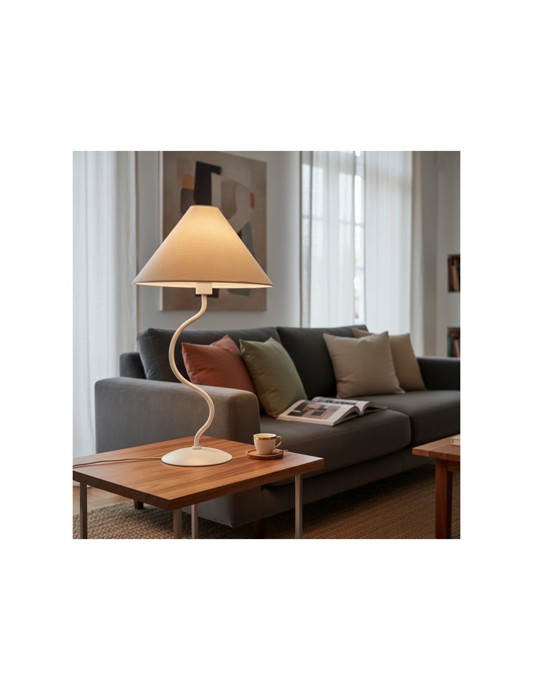Realza tu espacio con la escultural lámpara de mesa Rivlox, que fusiona el diseño moderno con el arte funcional. Su impactante forma angular crea un punto focal instantáneo en cualquier habitación, con líneas limpias y una silueta geométrica dinámica que capta la atención.