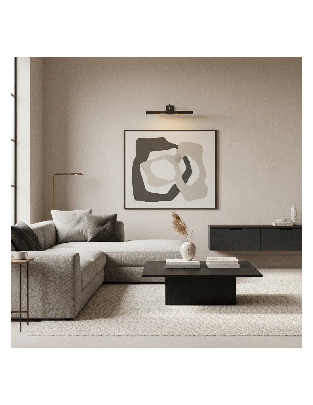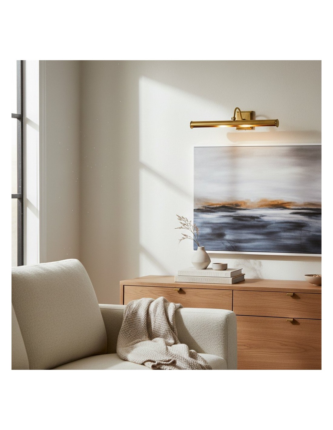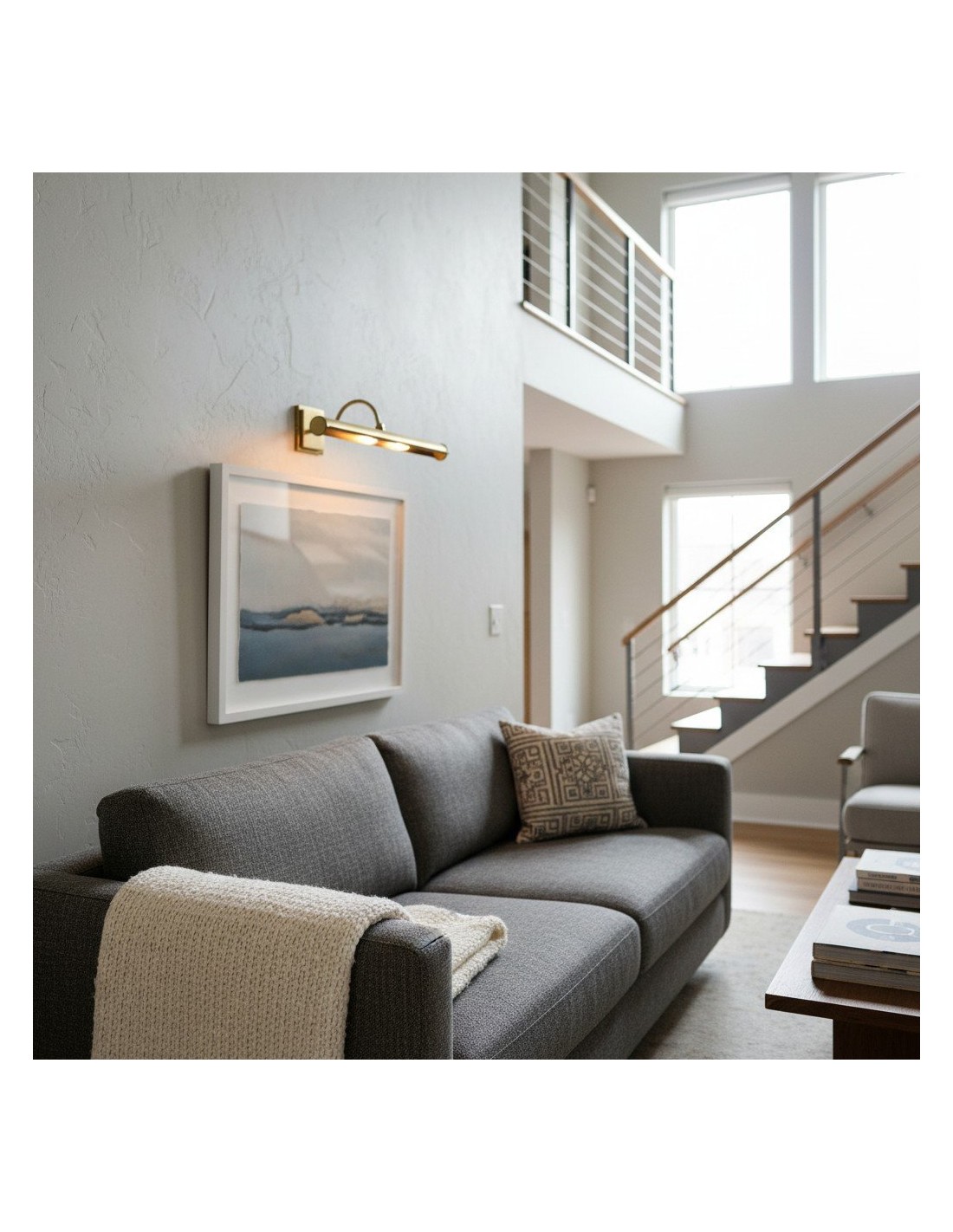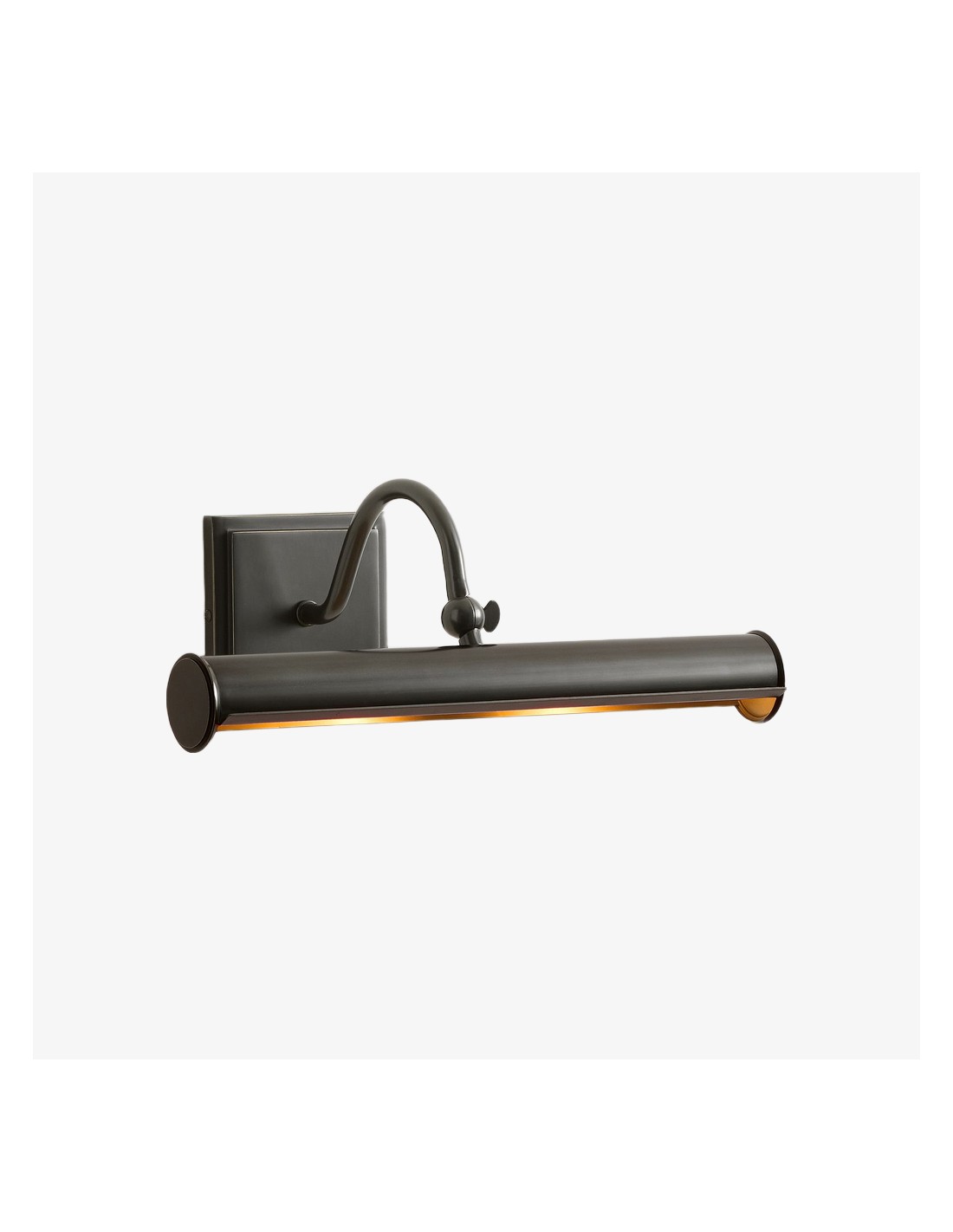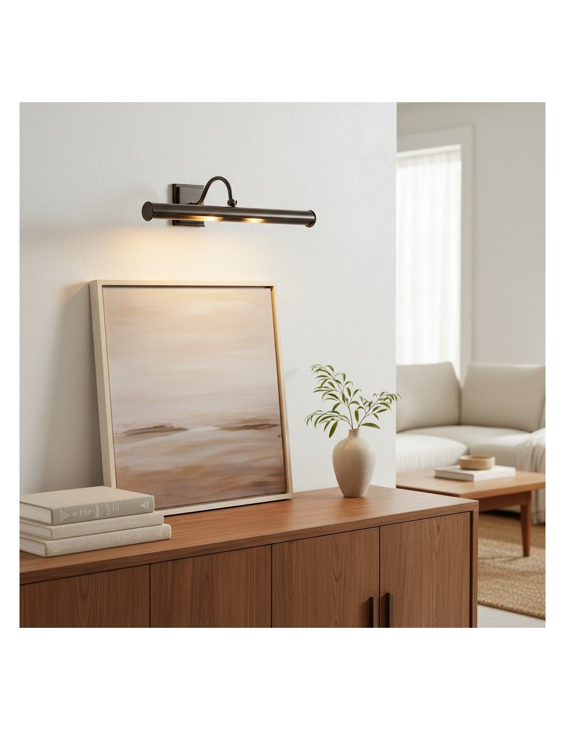 Lámpara de imágenes inspirada en galerías con cubierta direccional delgada y placa posterior limpia para resaltar obras de arte o espejos; estilo de transición, múltiples acabados.