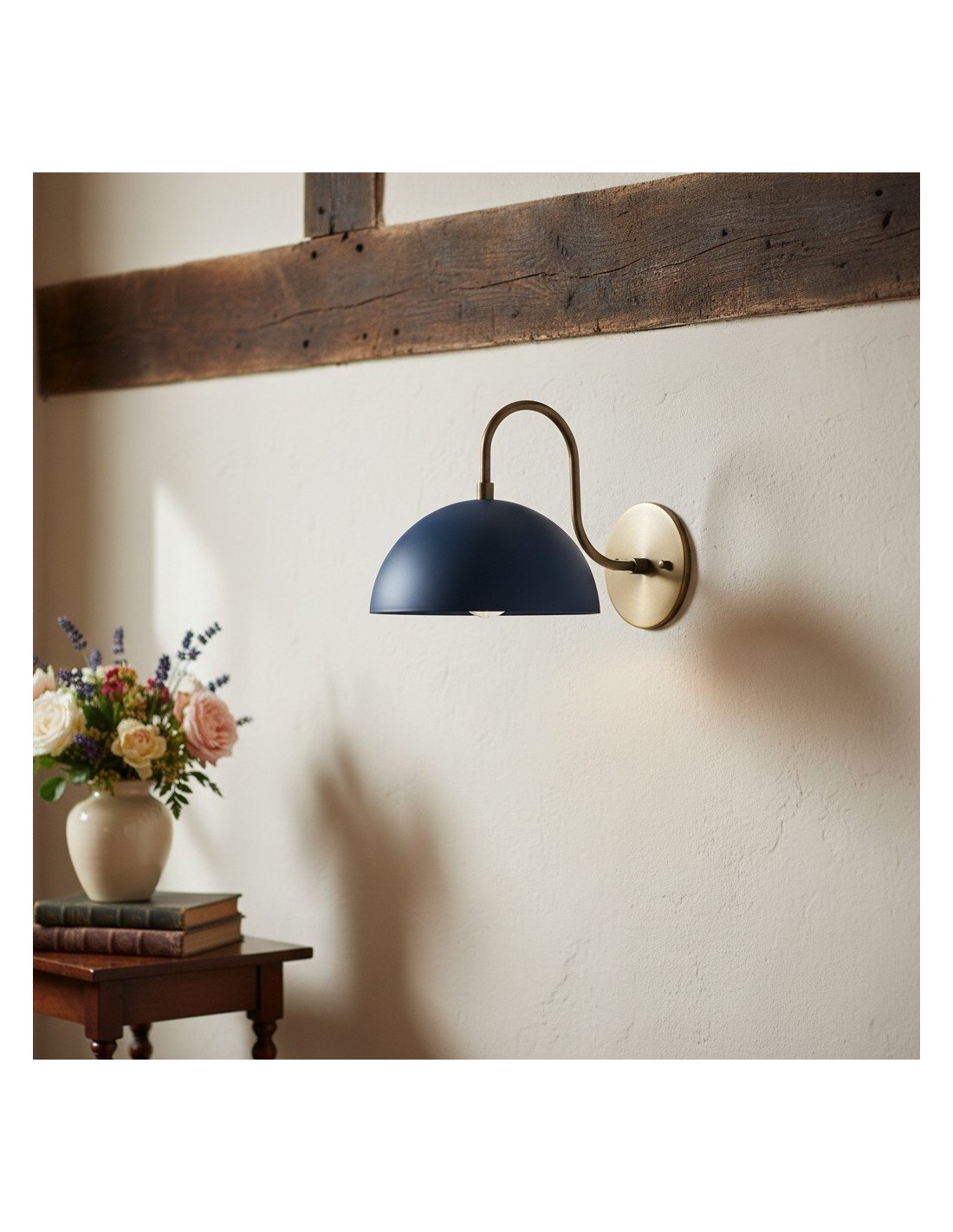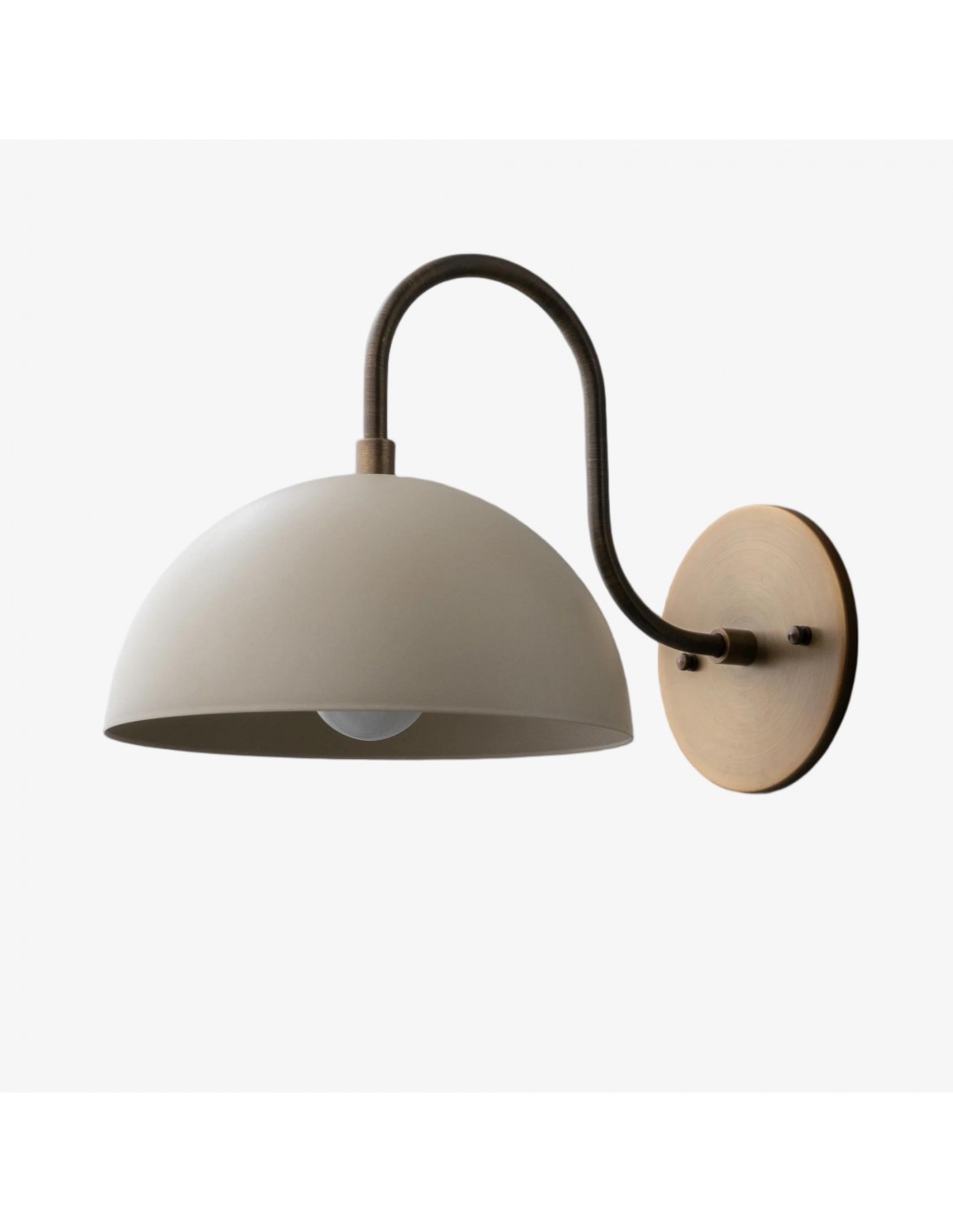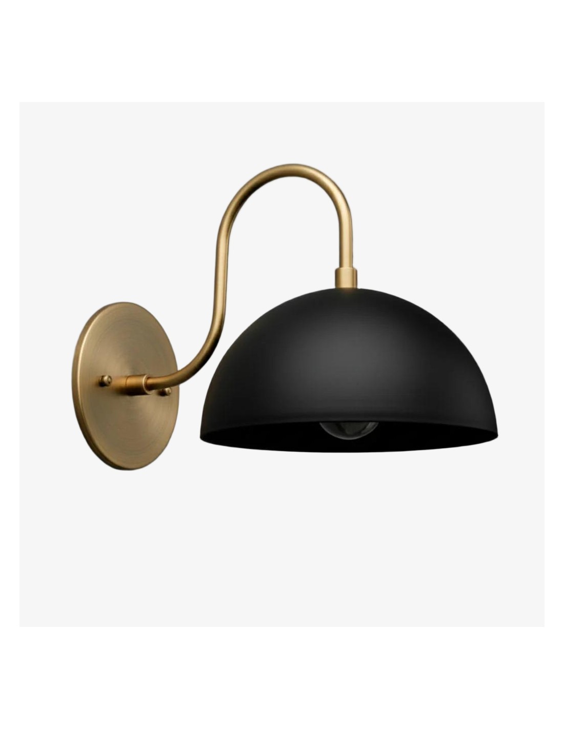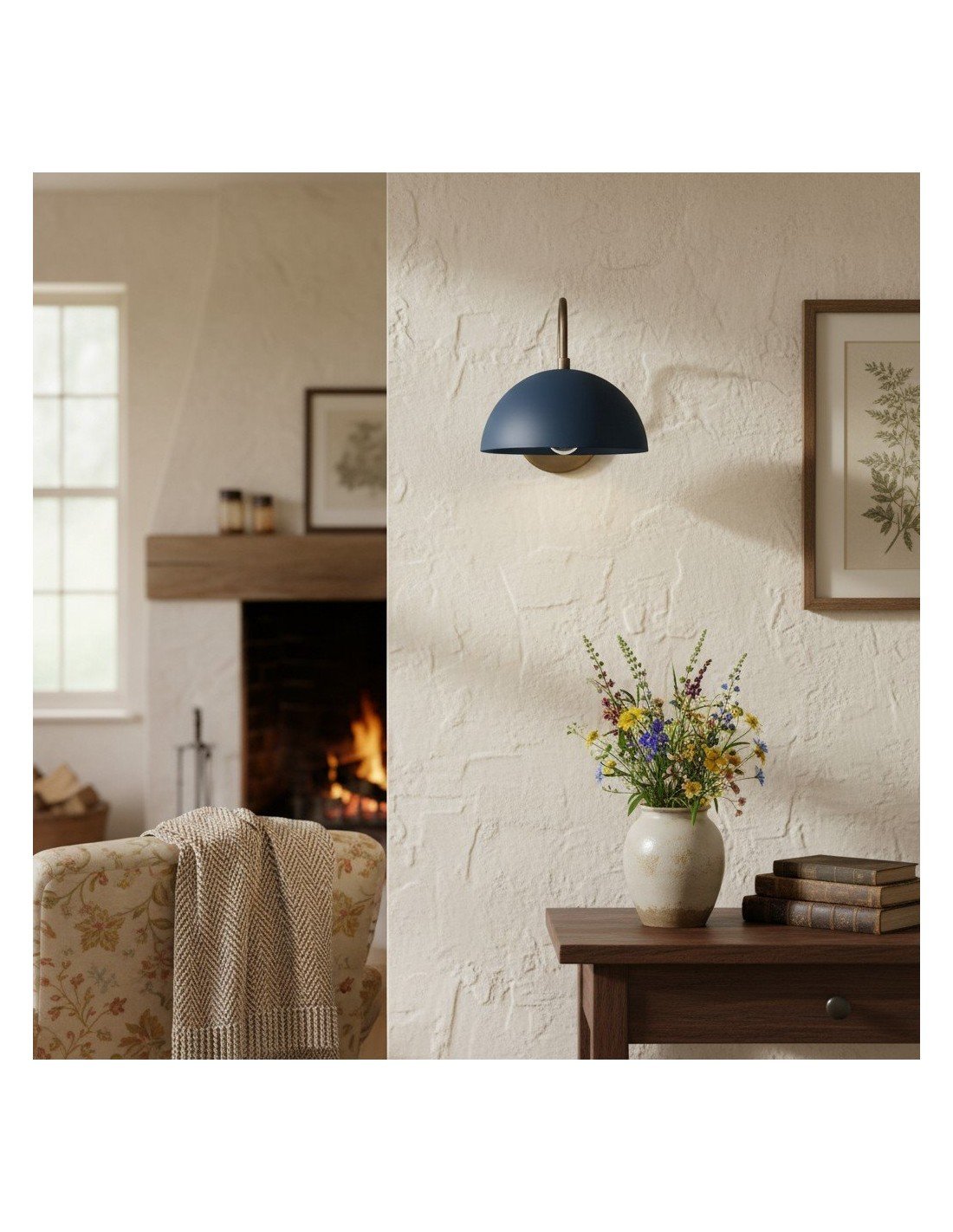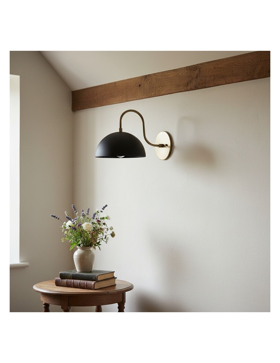 Aporta una elegancia discreta a tu decoración con este versátil aplique de pared. El brazo arqueado de latón sostiene una pantalla abovedada martillada que proyecta una luz sutil y concentrada hacia abajo. Ideal para superponer luces en pasillos, crear un ambiente acogedor junto a la cama o añadir profundidad a los espacios de estar. Una elegante mezcla de influencias modernas y vintage.