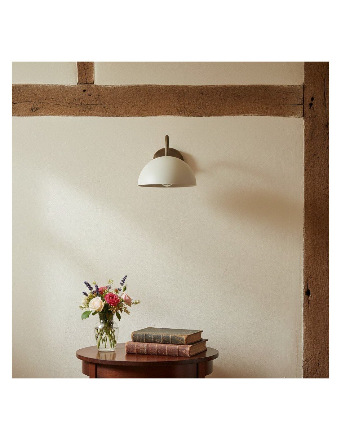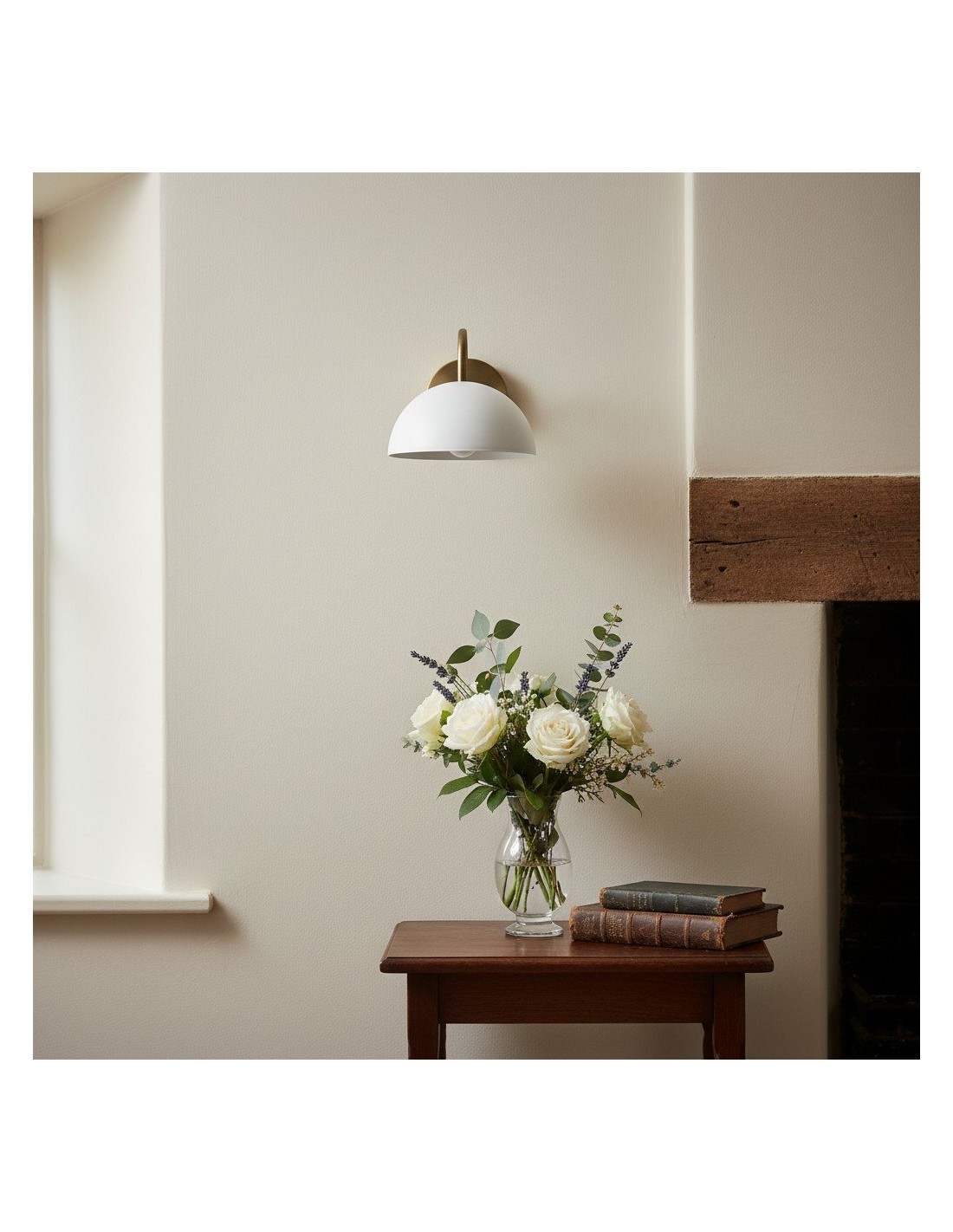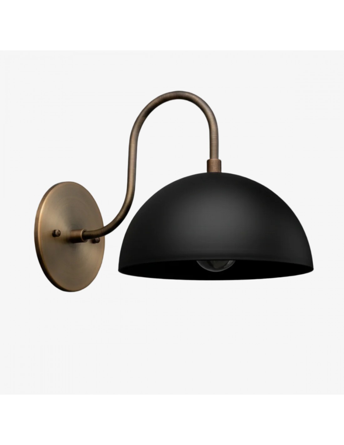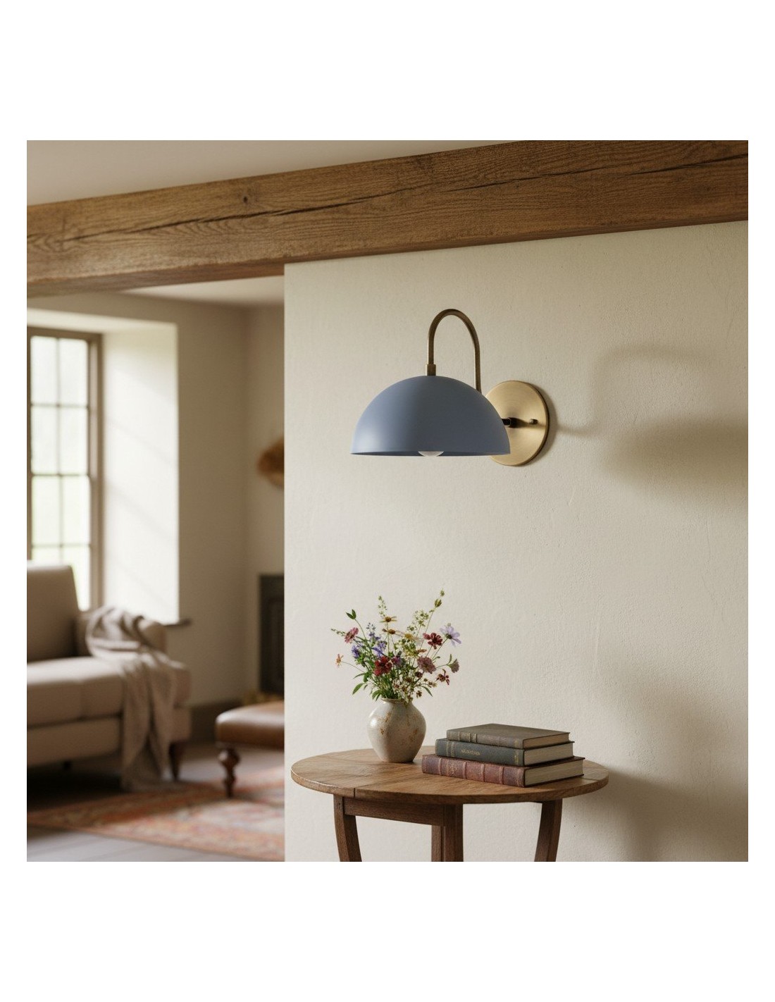 Aporta una elegancia discreta a tu decoración con este versátil aplique de pared. El brazo arqueado de latón sostiene una pantalla abovedada martillada que proyecta una luz sutil y concentrada hacia abajo. Ideal para superponer luces en pasillos, crear un ambiente acogedor junto a la cama o añadir profundidad a los espacios de estar. Una elegante mezcla de influencias modernas y vintage.